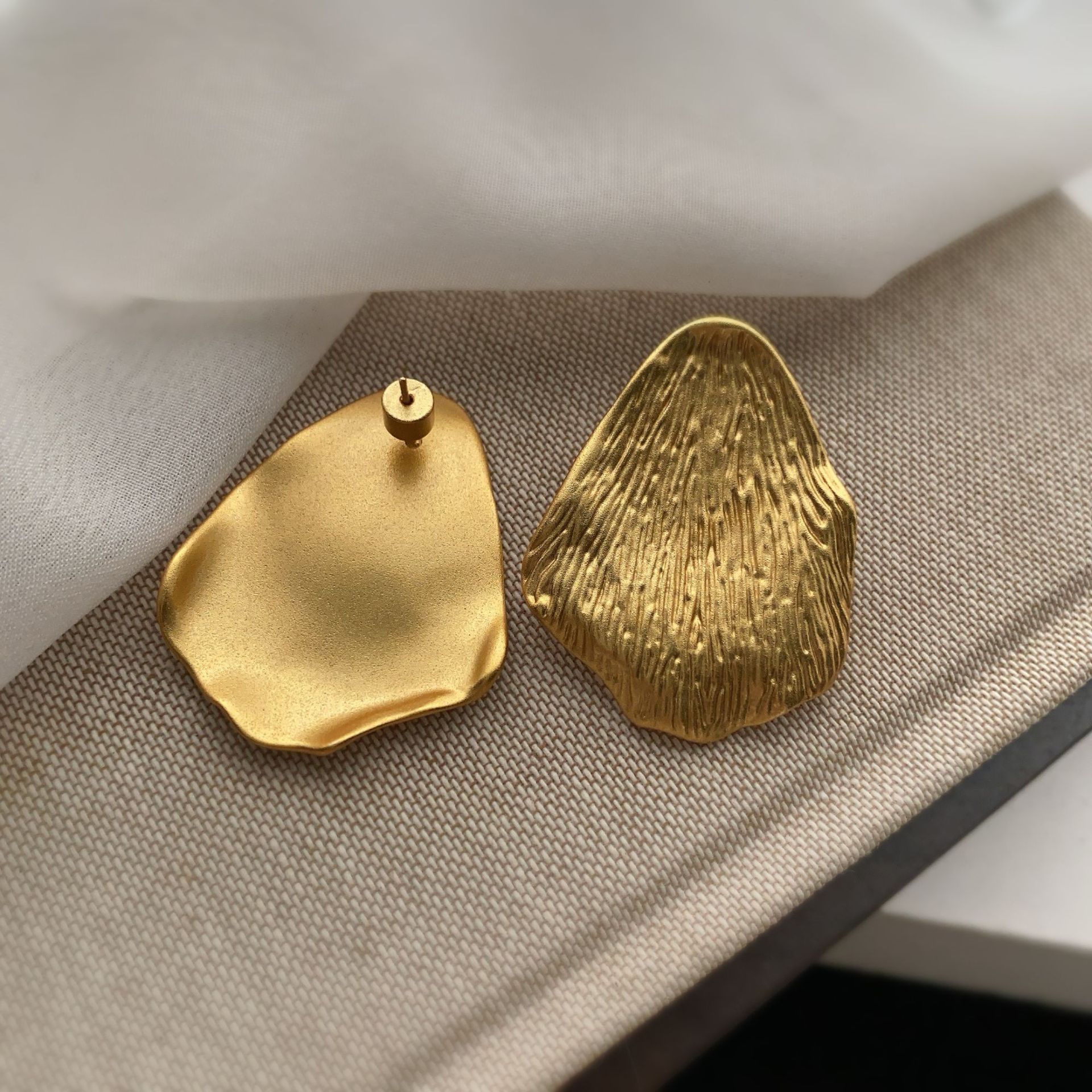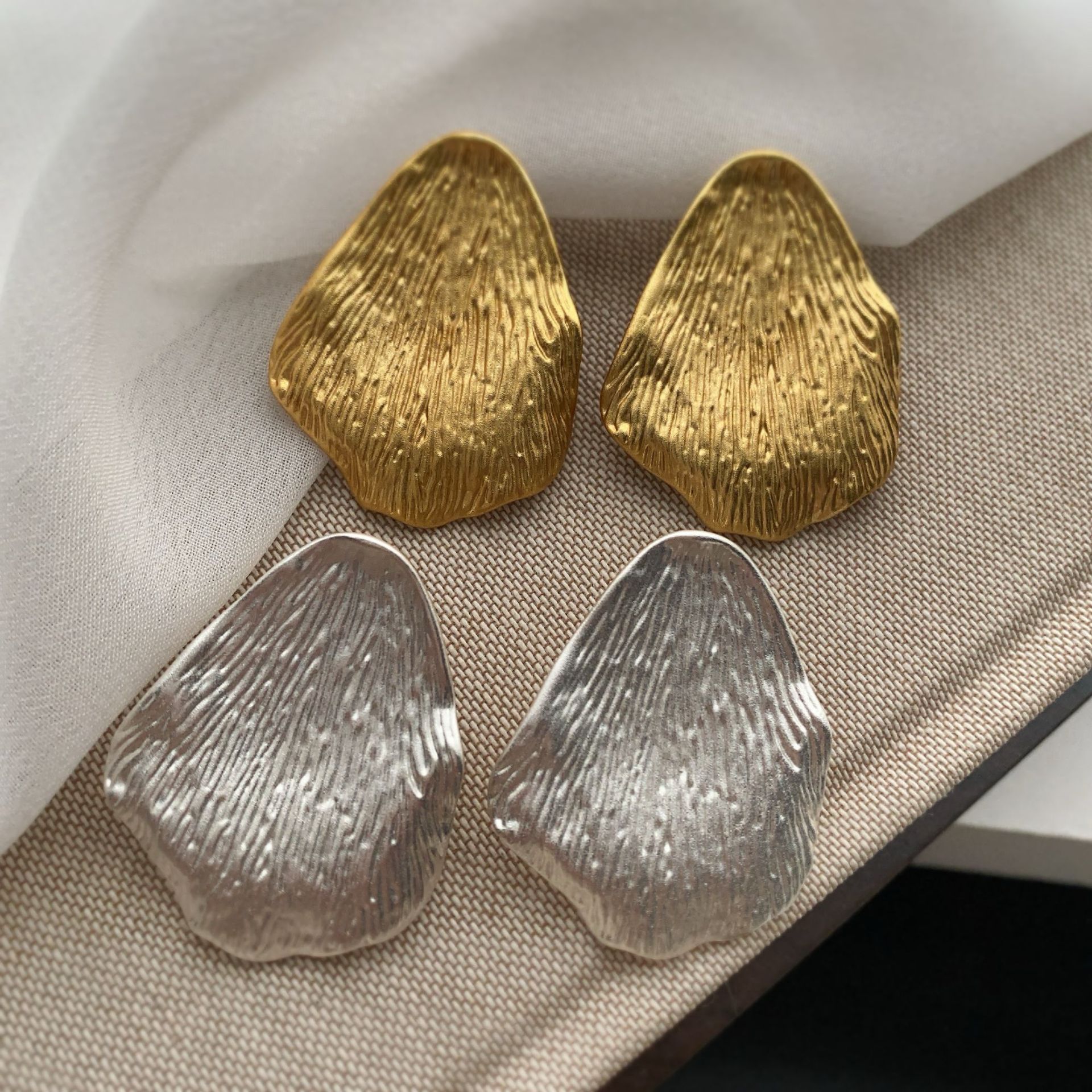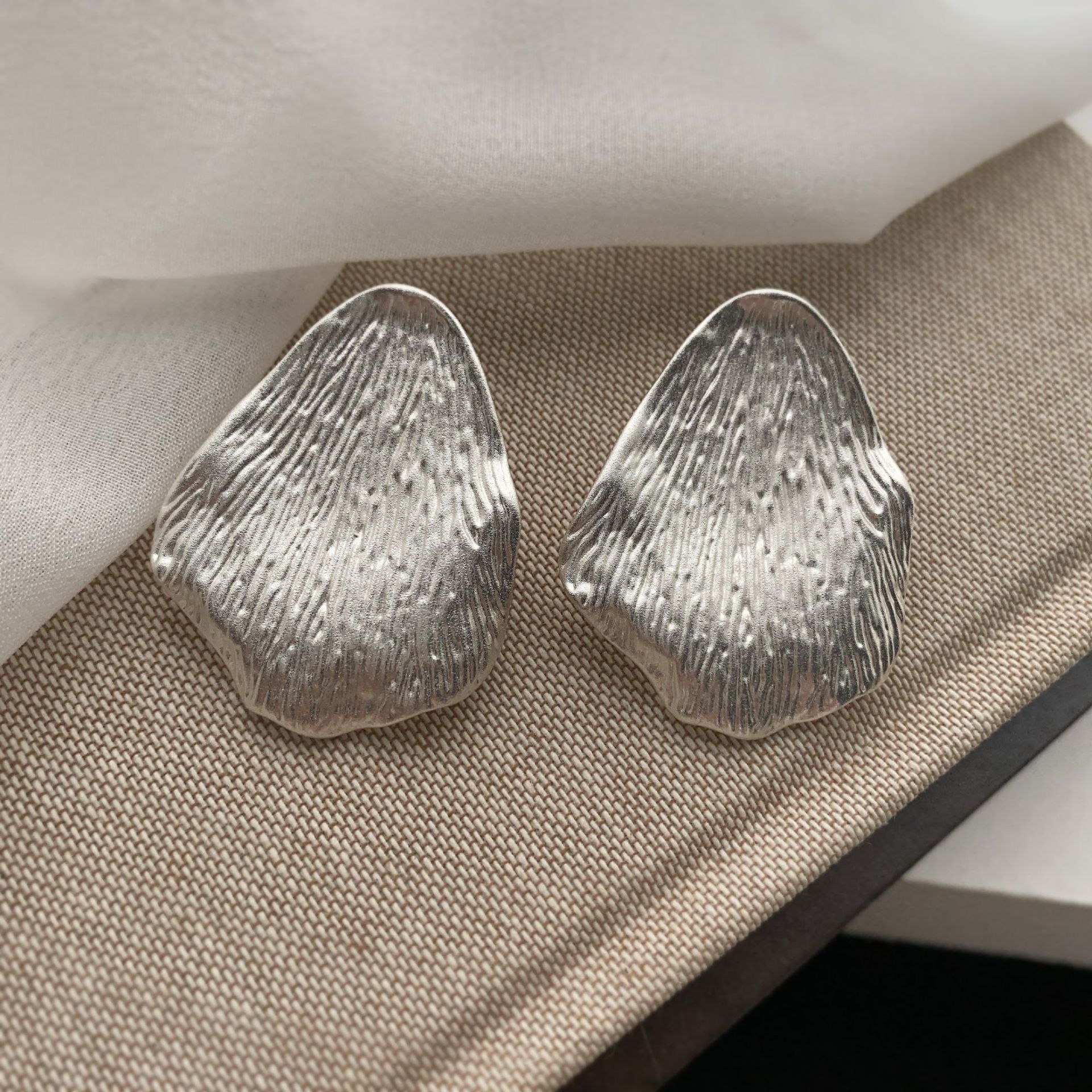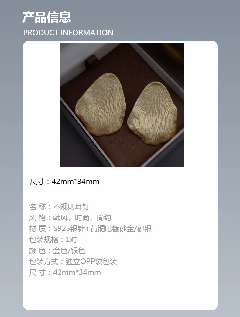 个性夸张秋冬百搭耳环不规则手工拉丝宽边简约精致小众气质耳钉女