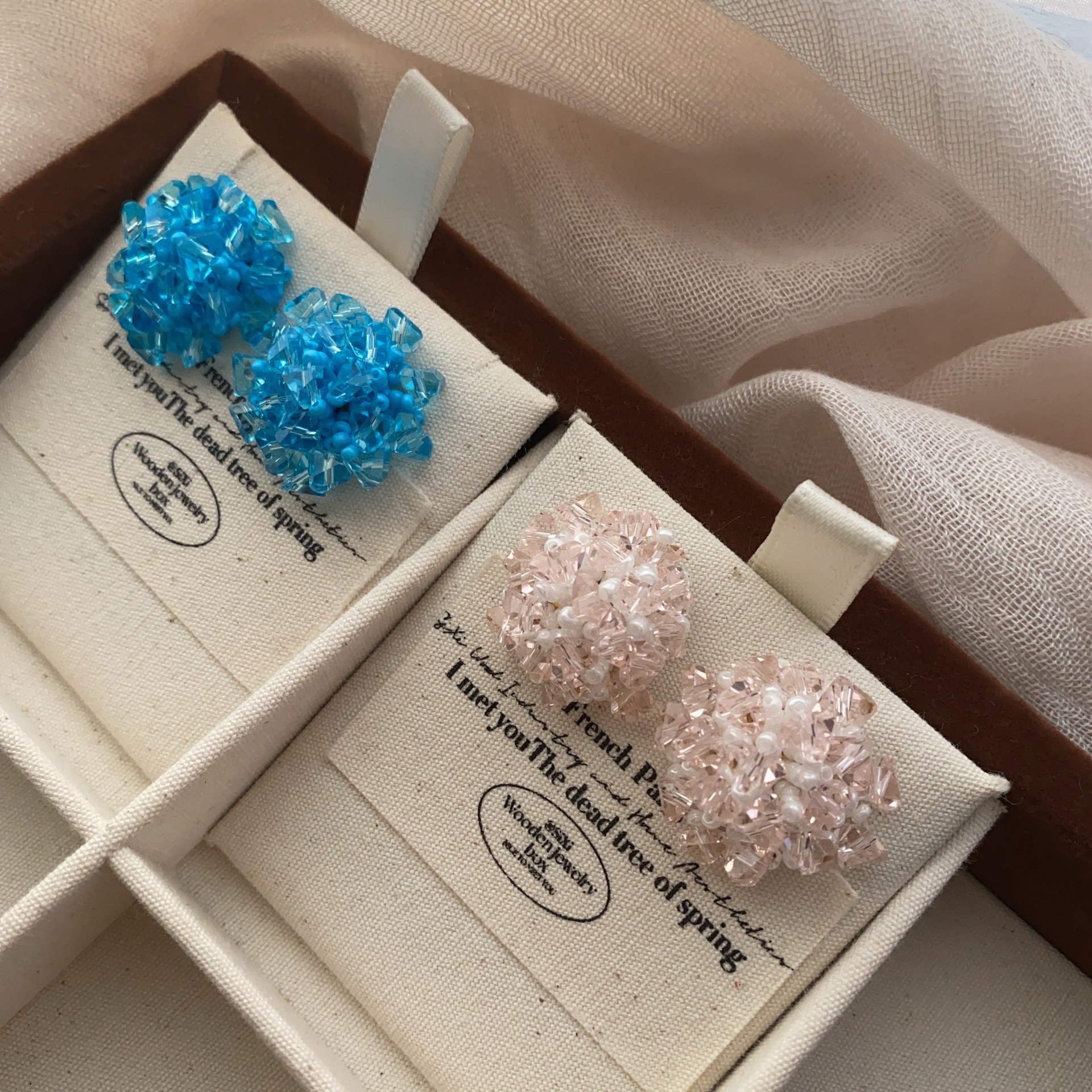 清新串珠圆耳钉显白度假风清冷编织简约设计感少女高级可爱树脂女