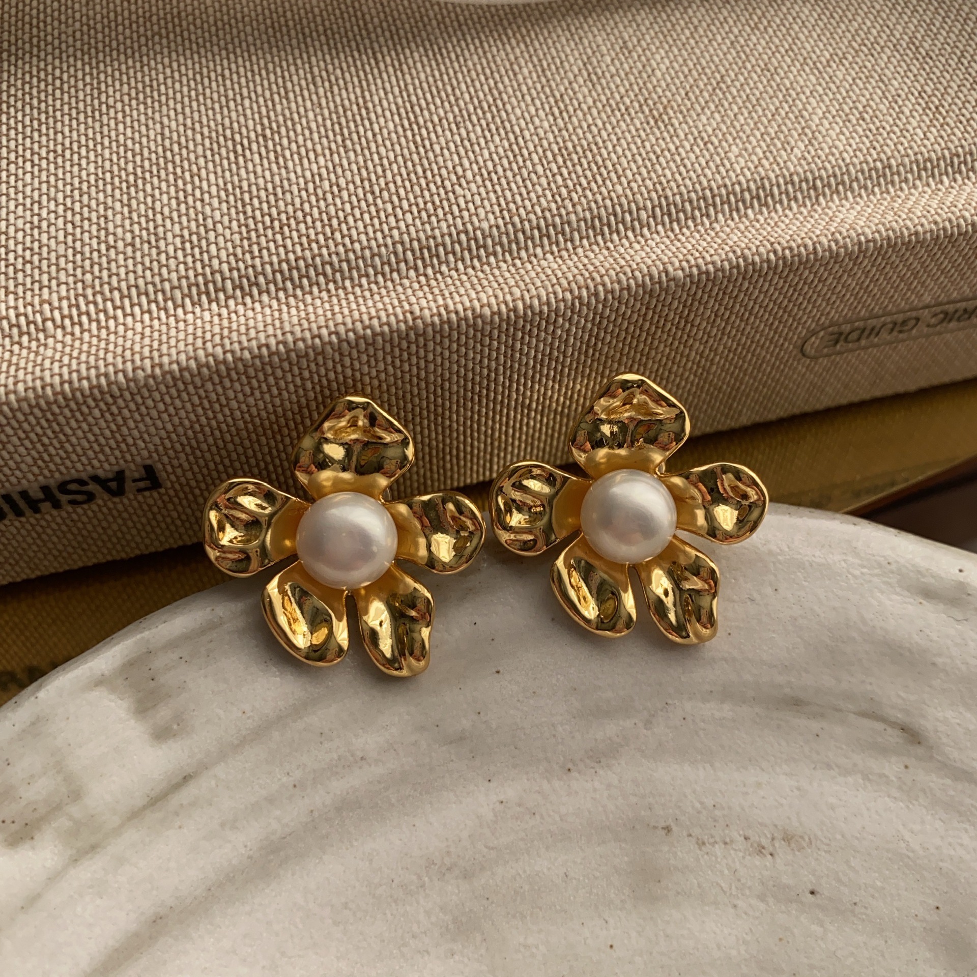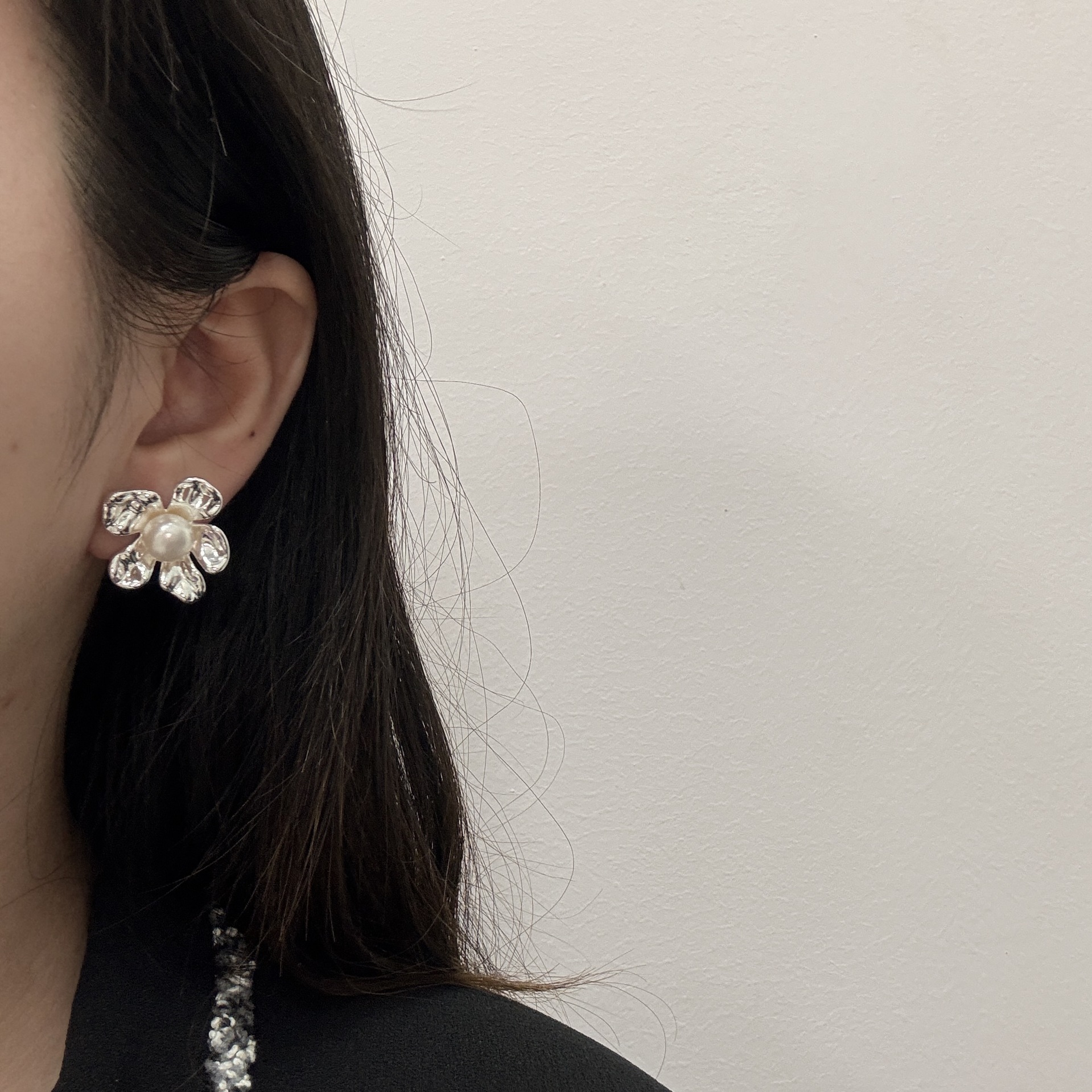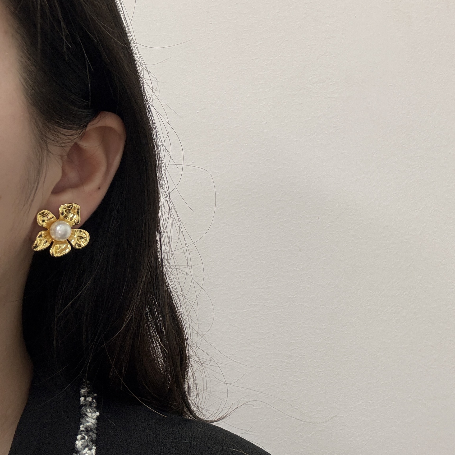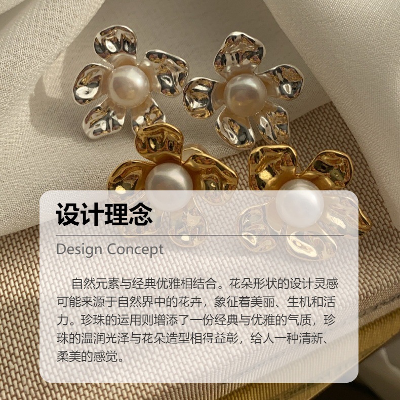 小众设计高级感复古纹理花朵珍珠耳钉简约气质百搭轻奢小众设计女