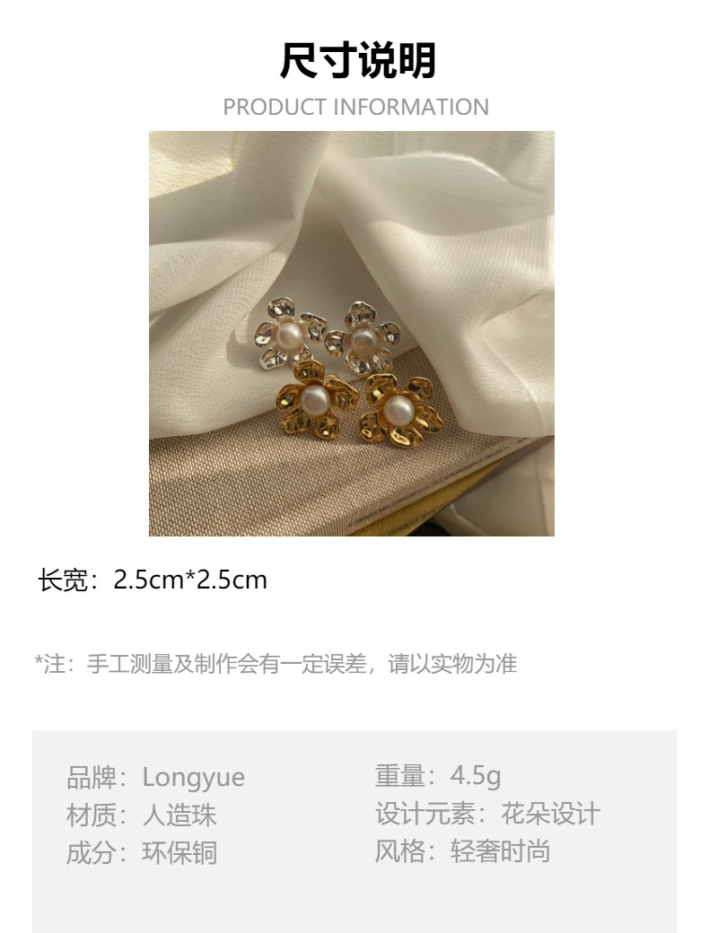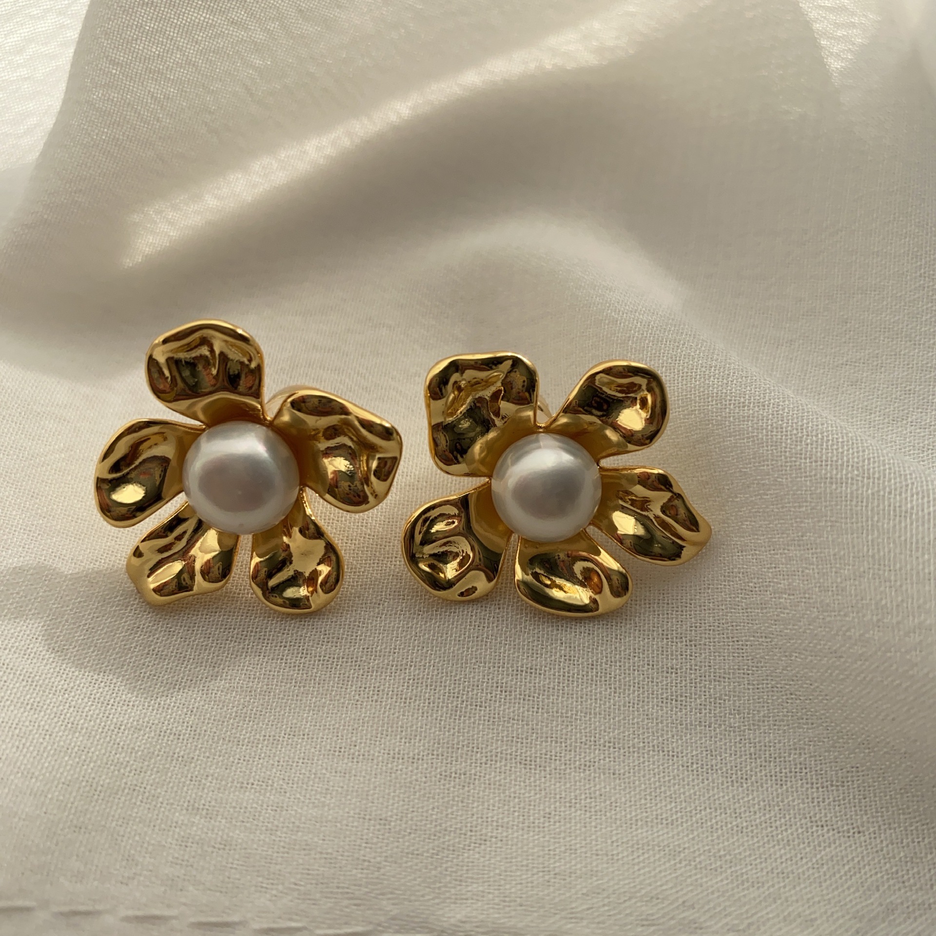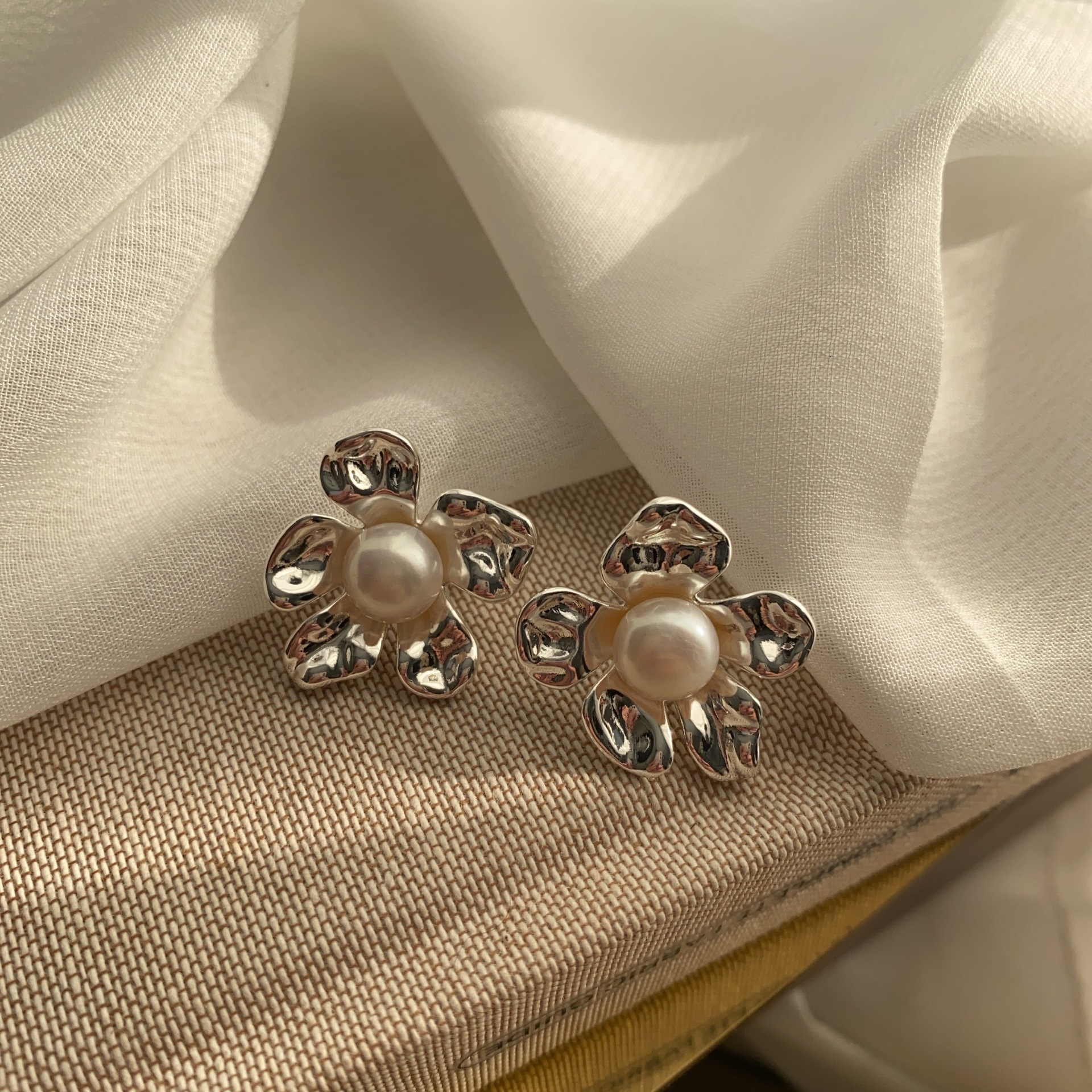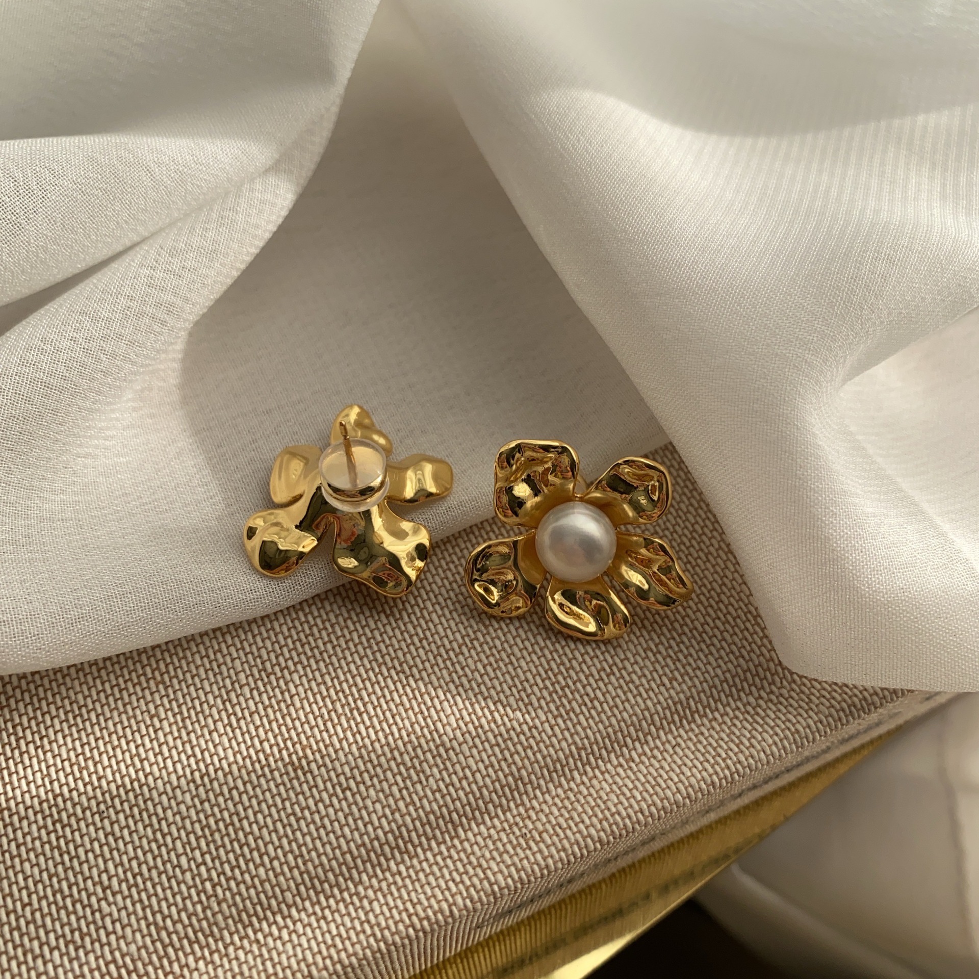 小众设计高级感复古纹理花朵珍珠耳钉简约气质百搭轻奢小众设计女