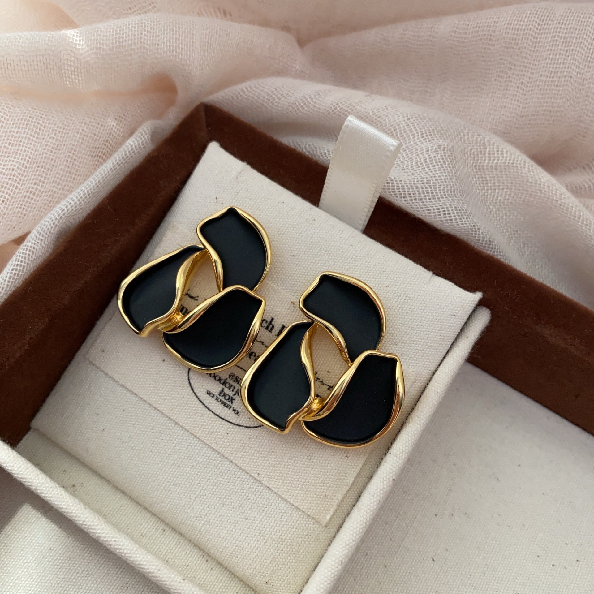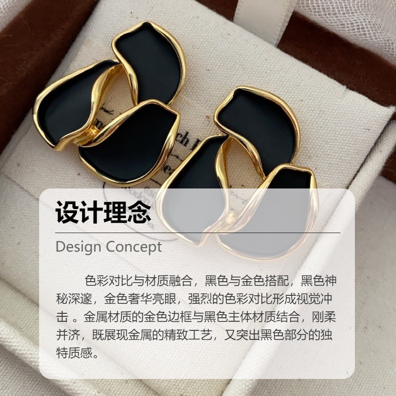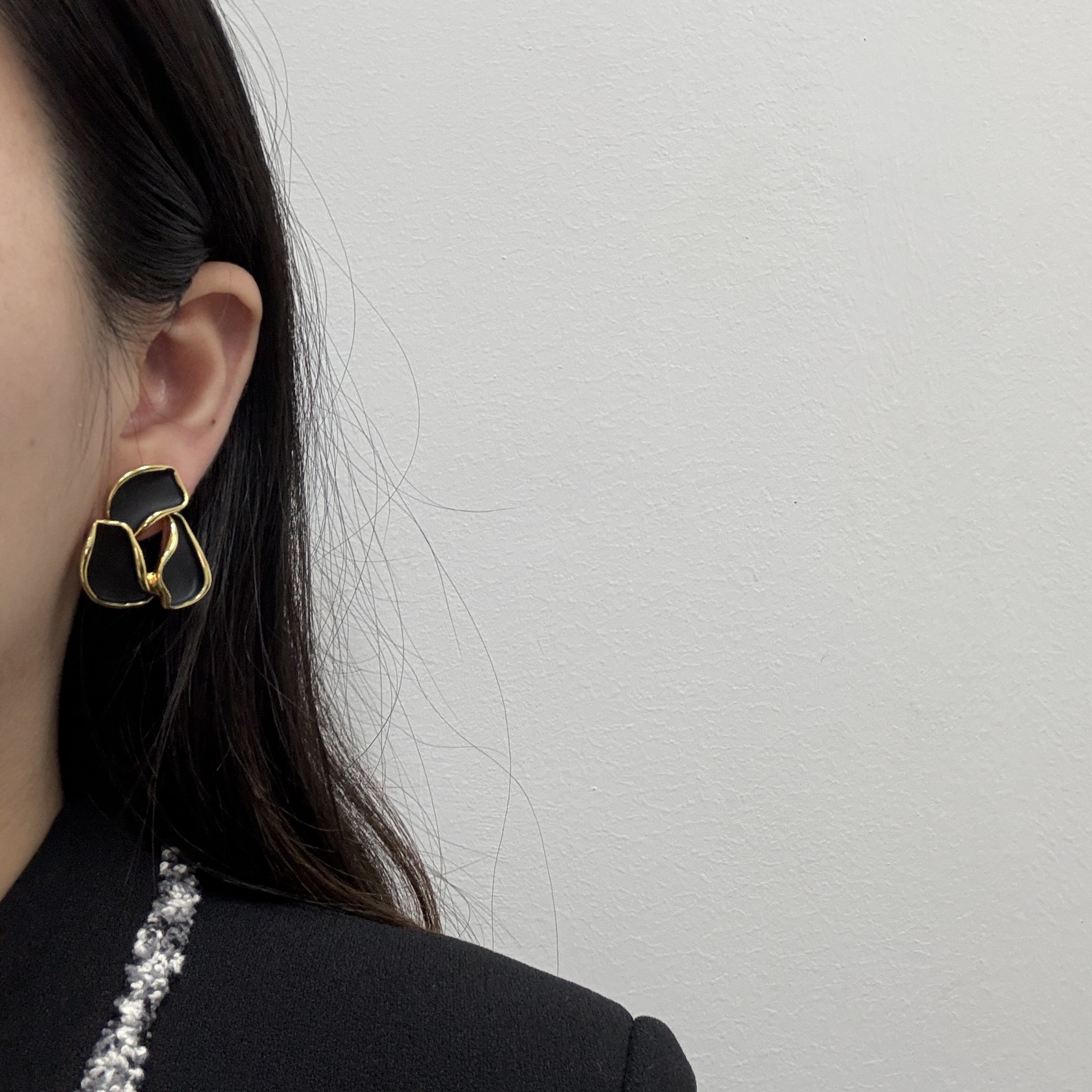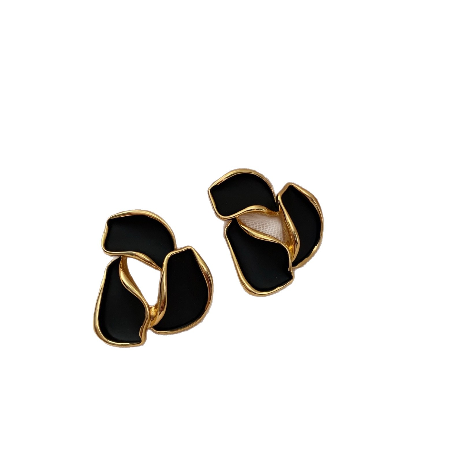 滴油花朵耳钉欧美时尚高级镂空黑色滴油个性耳饰夸张大花瓣耳钉女