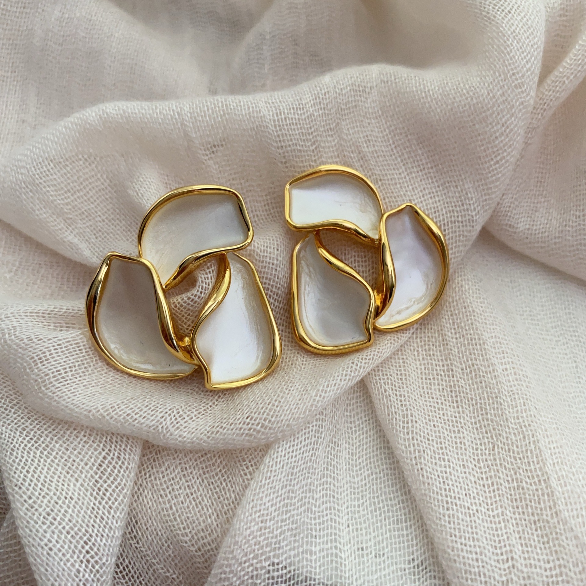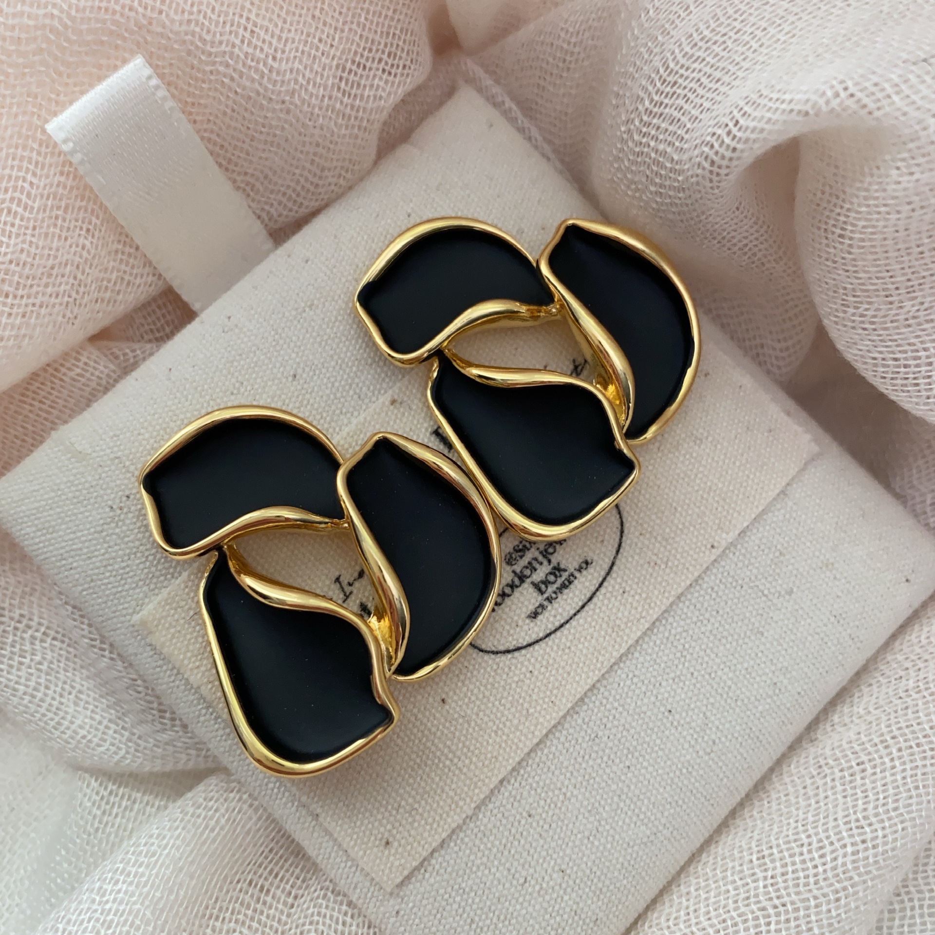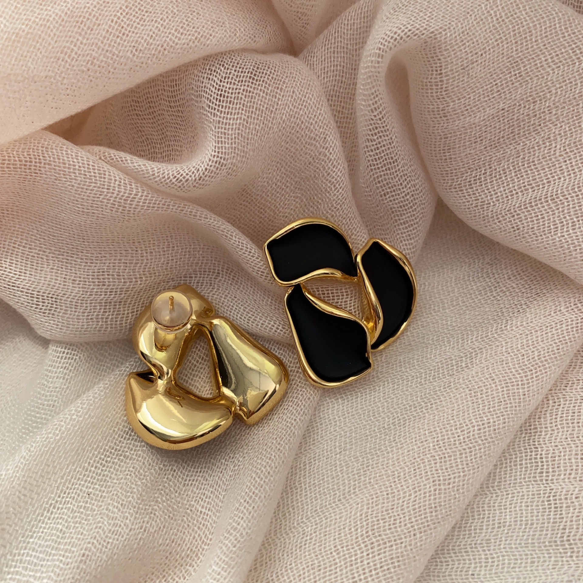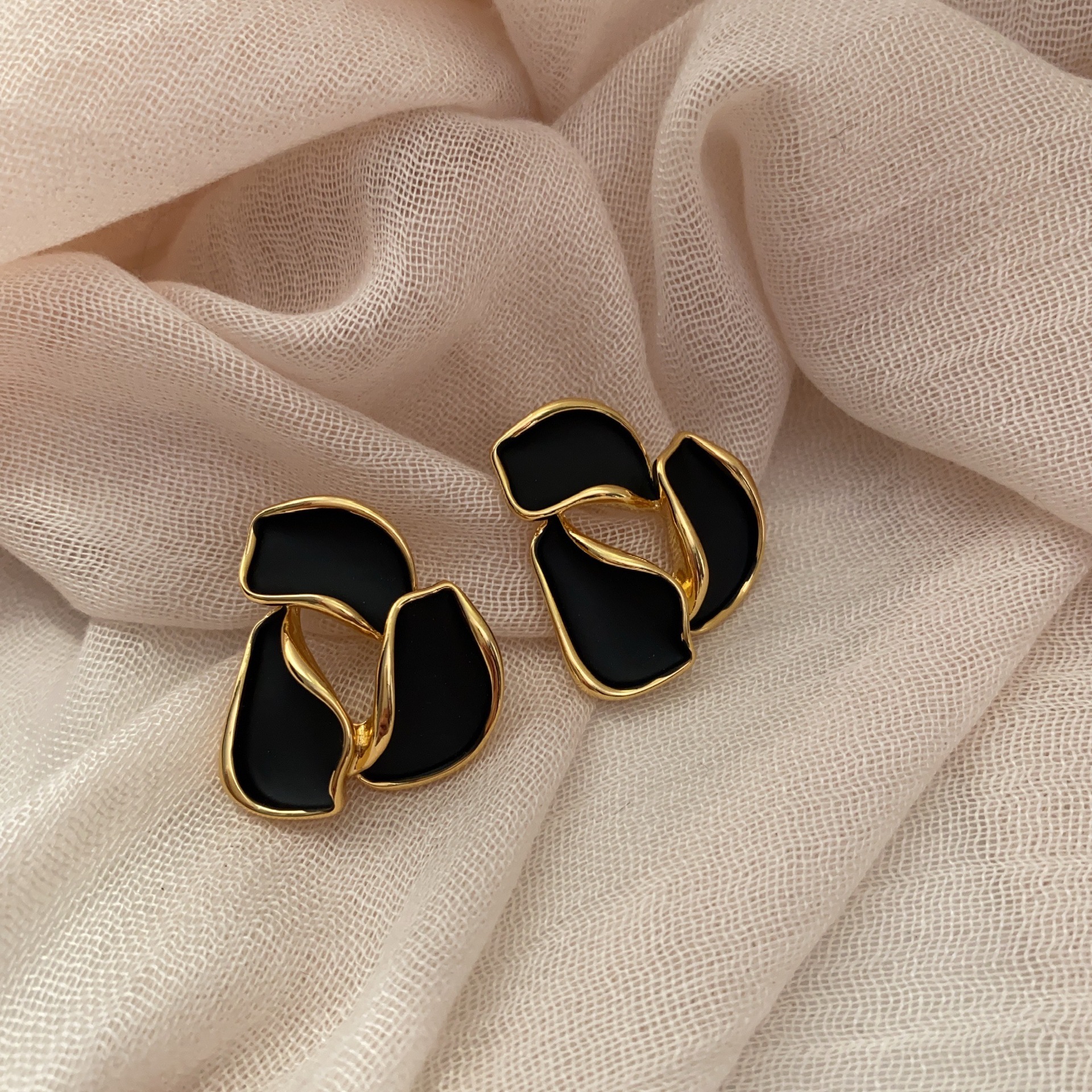 滴油花朵耳钉欧美时尚高级镂空黑色滴油个性耳饰夸张大花瓣耳钉女