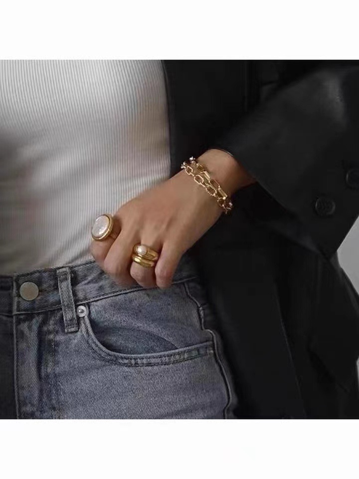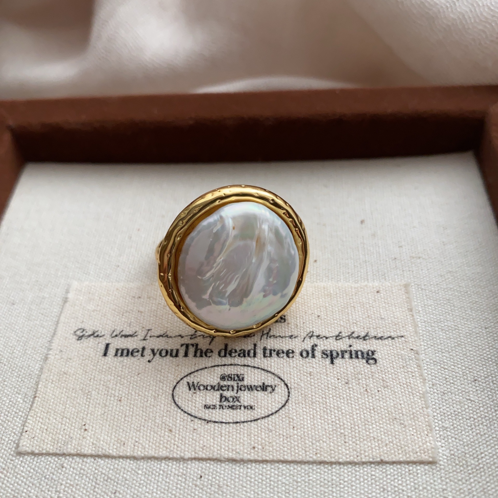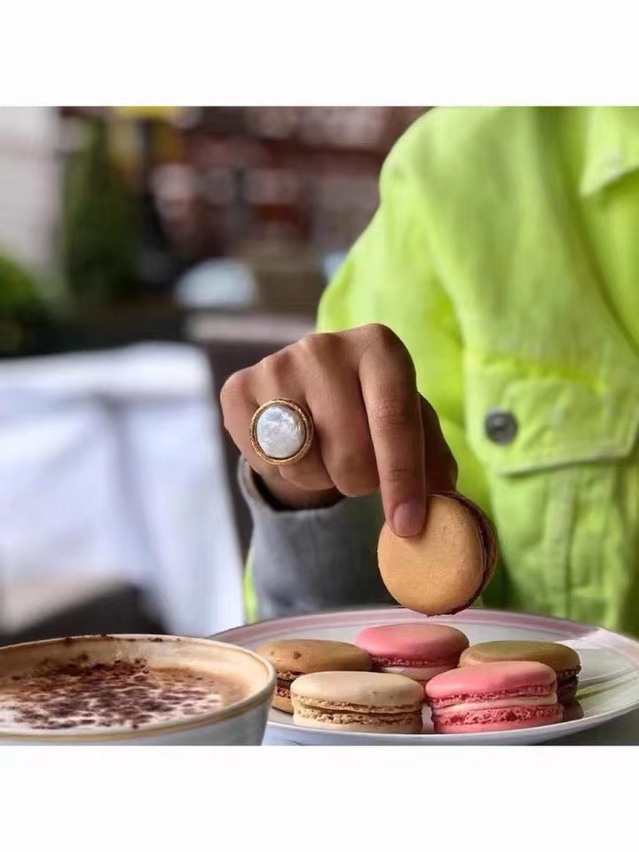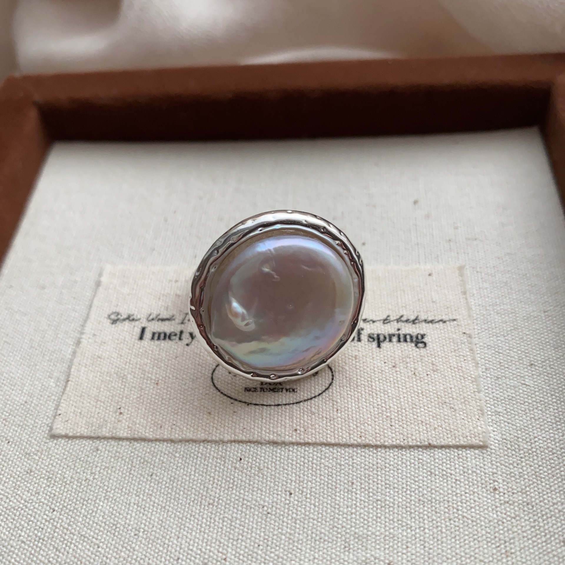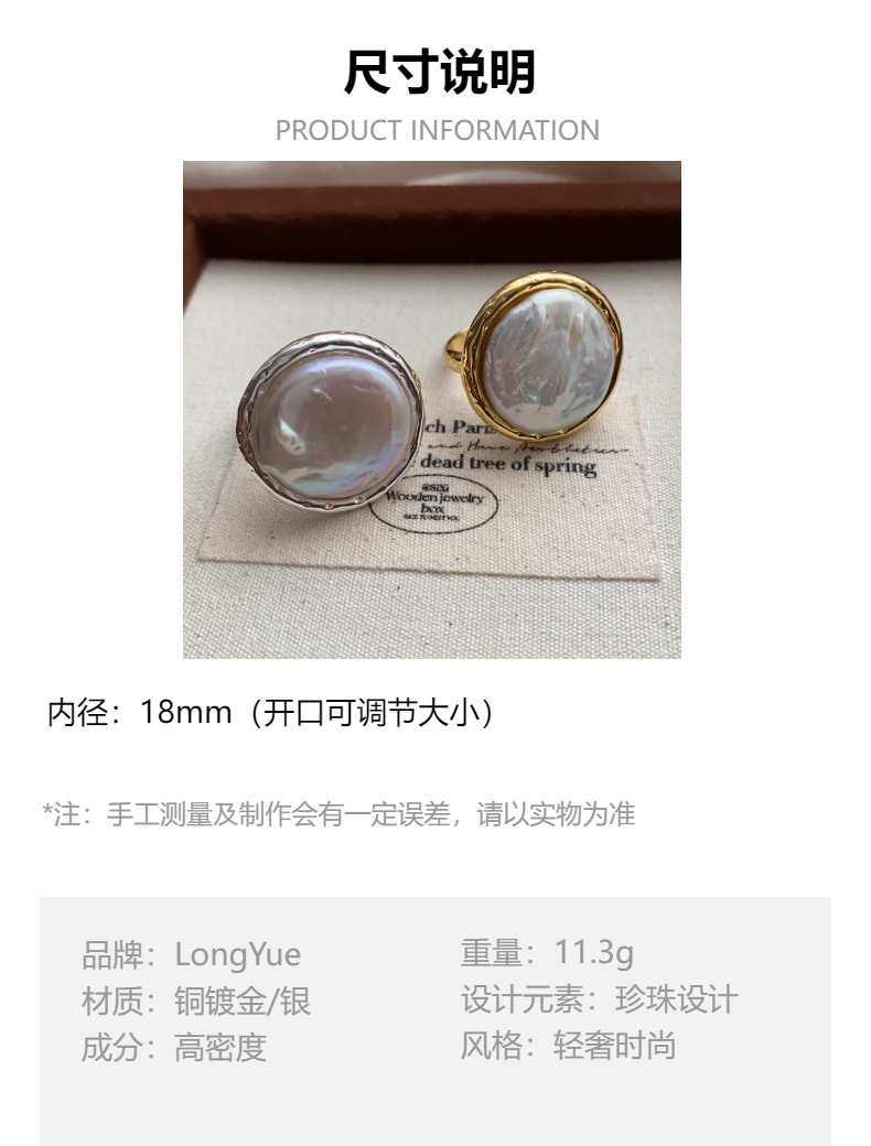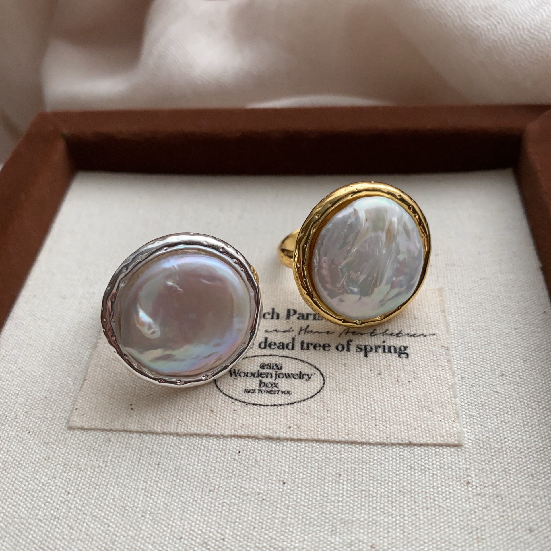 欧美轻奢法式复古小众设计感淡水珍珠高级感圆形开口马卡龙戒指女