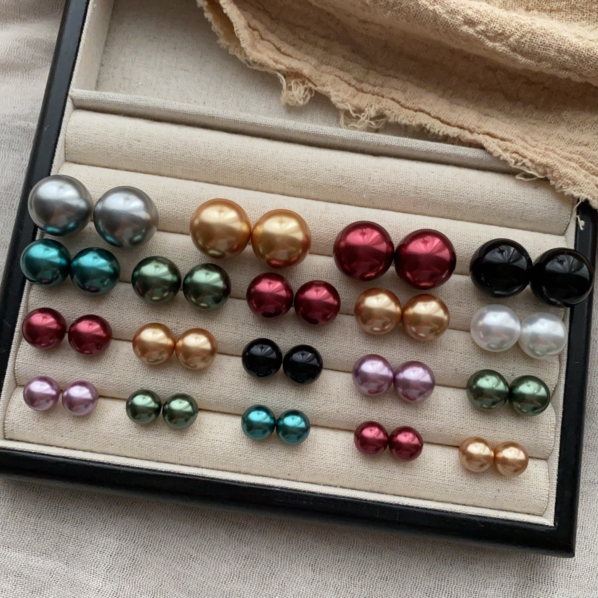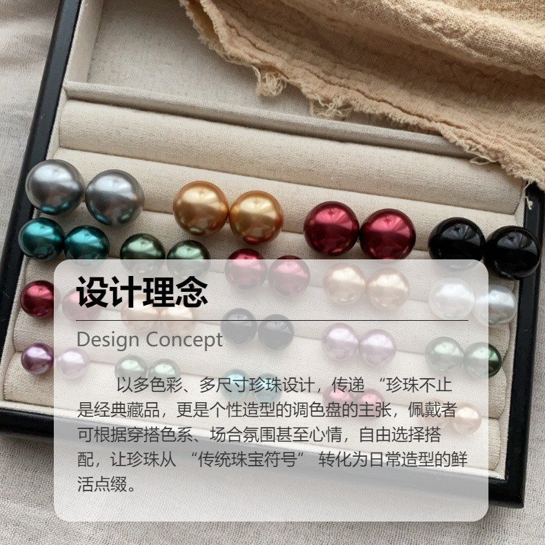 圆润珍珠多尺寸多色彩耳钉耳环高级个性百搭简约大方轻奢温柔耳饰