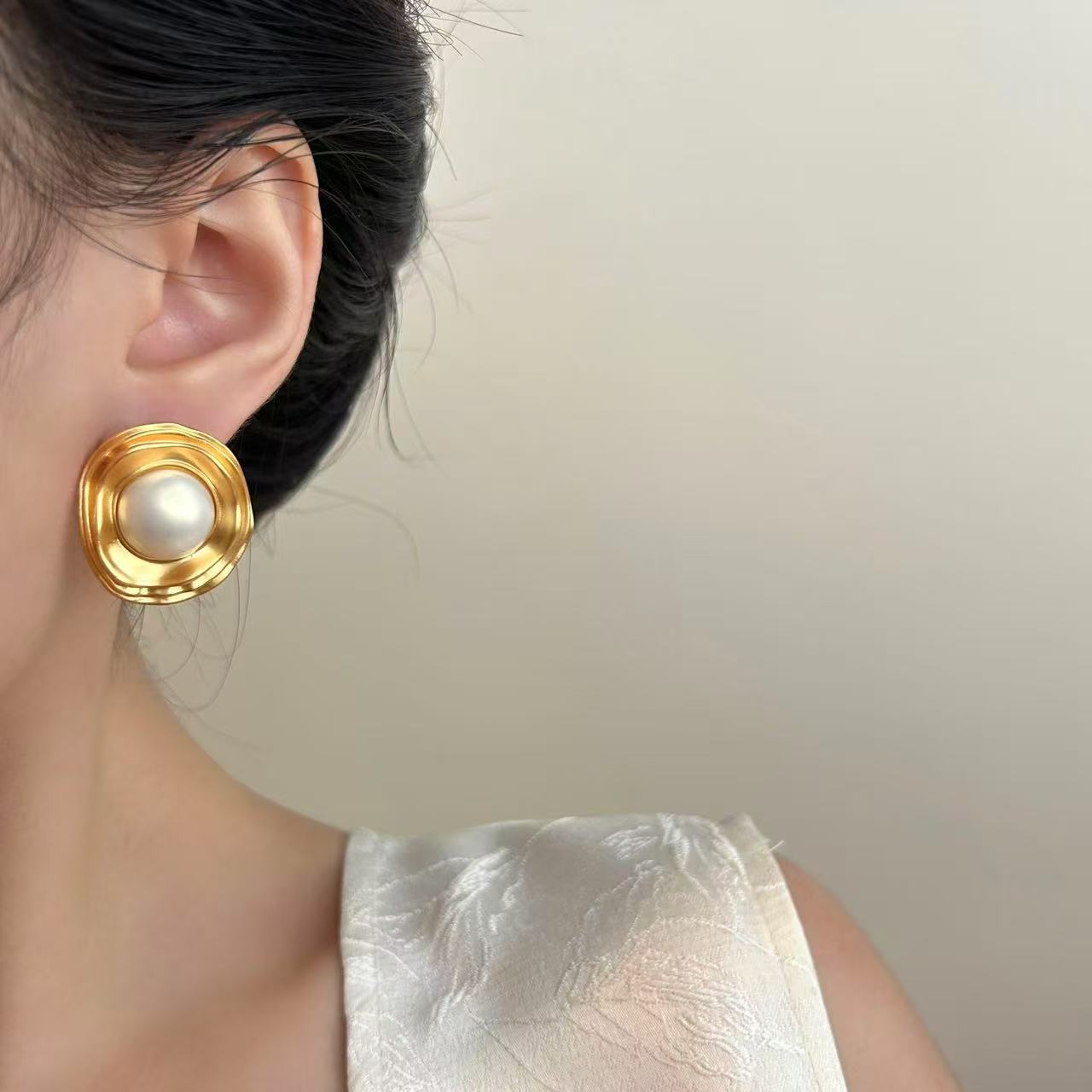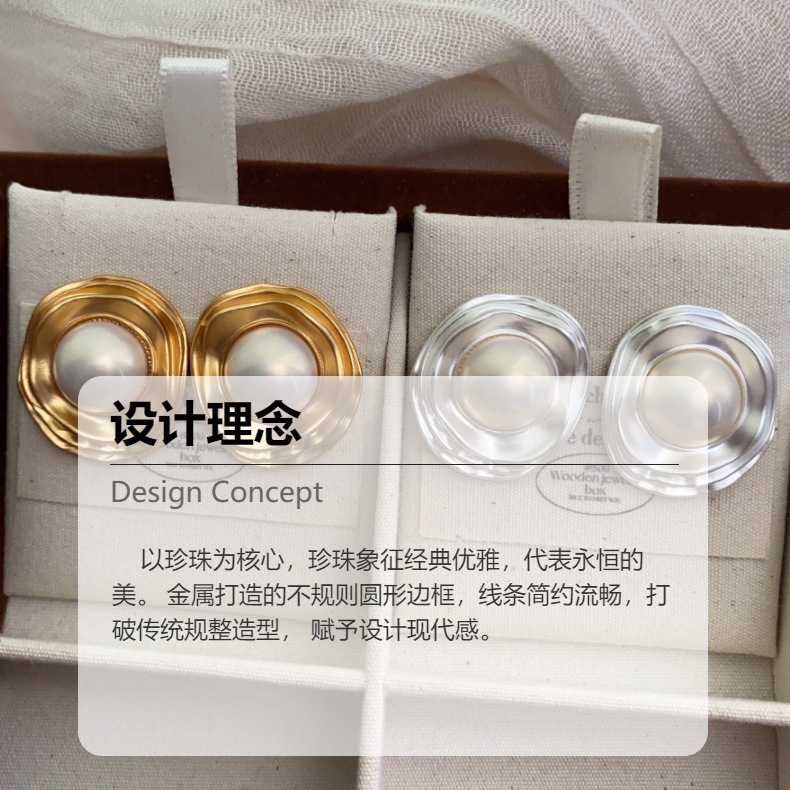 巴洛克仿珍珠复古耳钉小众设计感轻奢重工气质耳饰不规则异形耳环