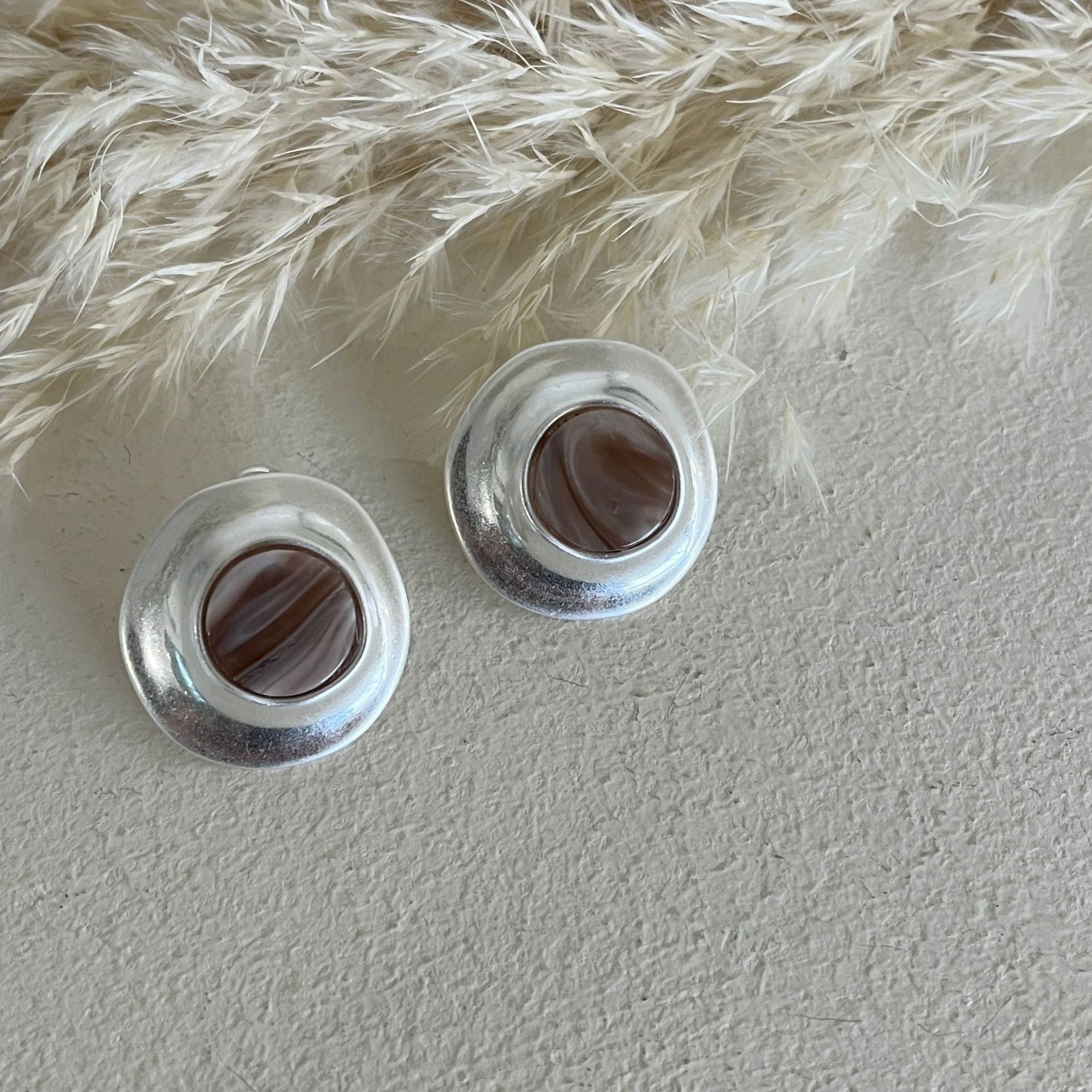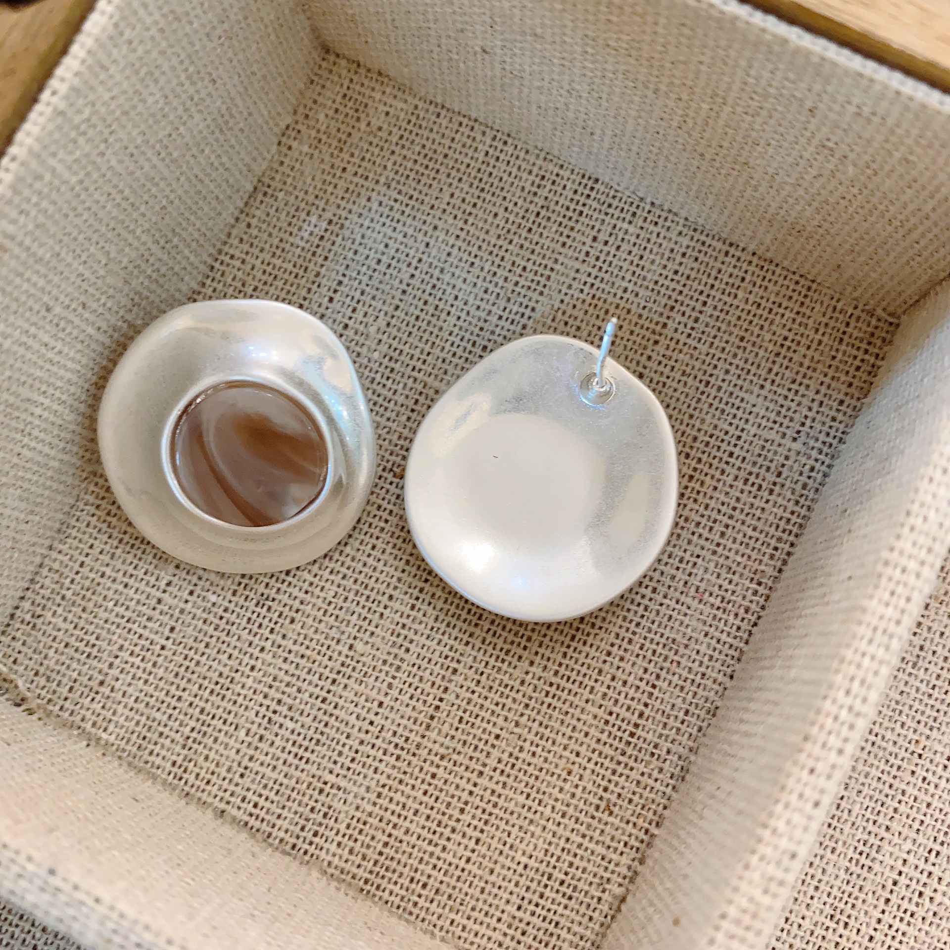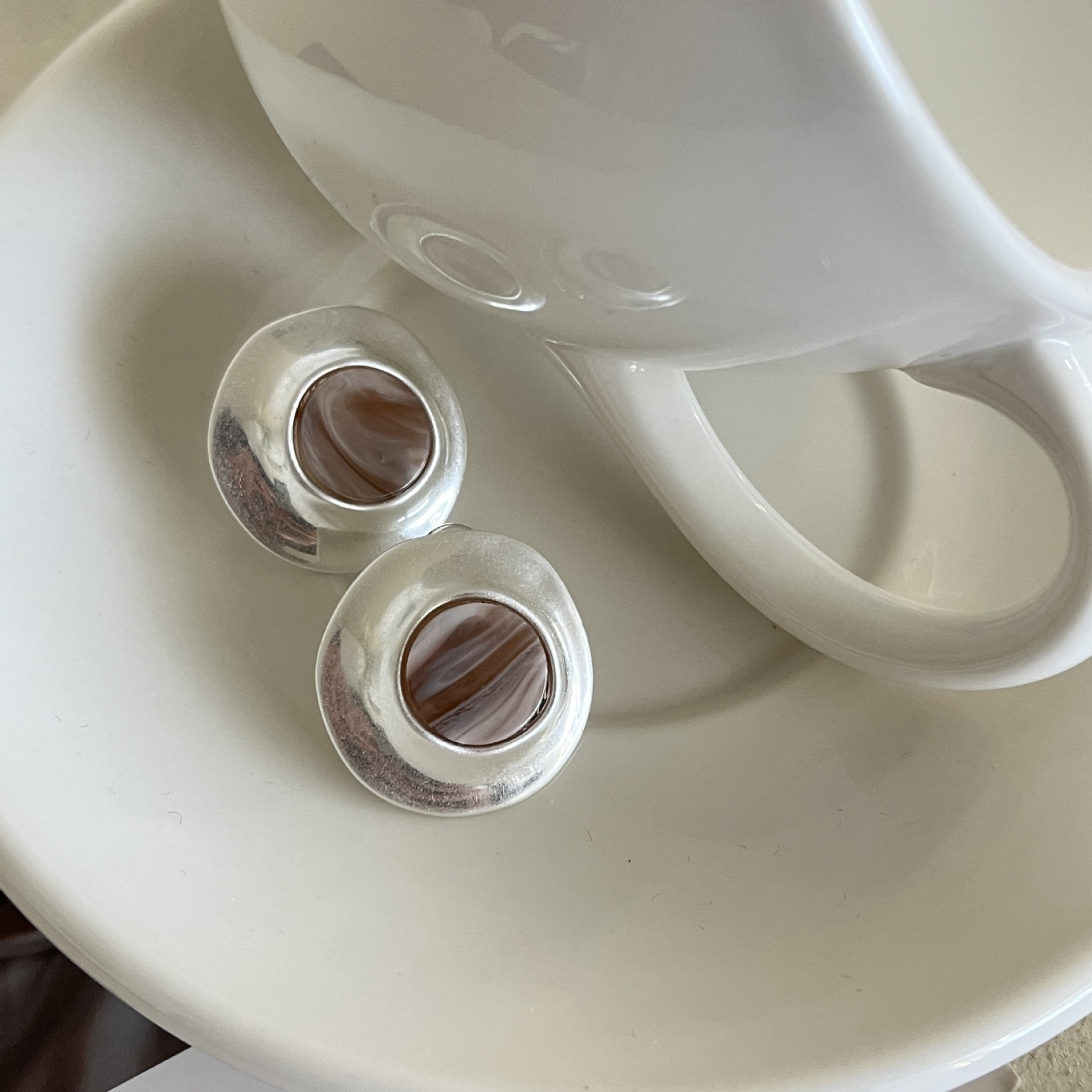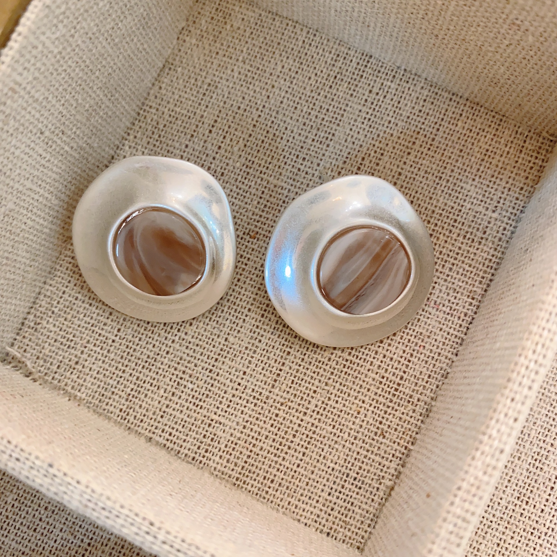 原生系列木纹石简约圆圈耳钉女2025新款小众设计高级感秋