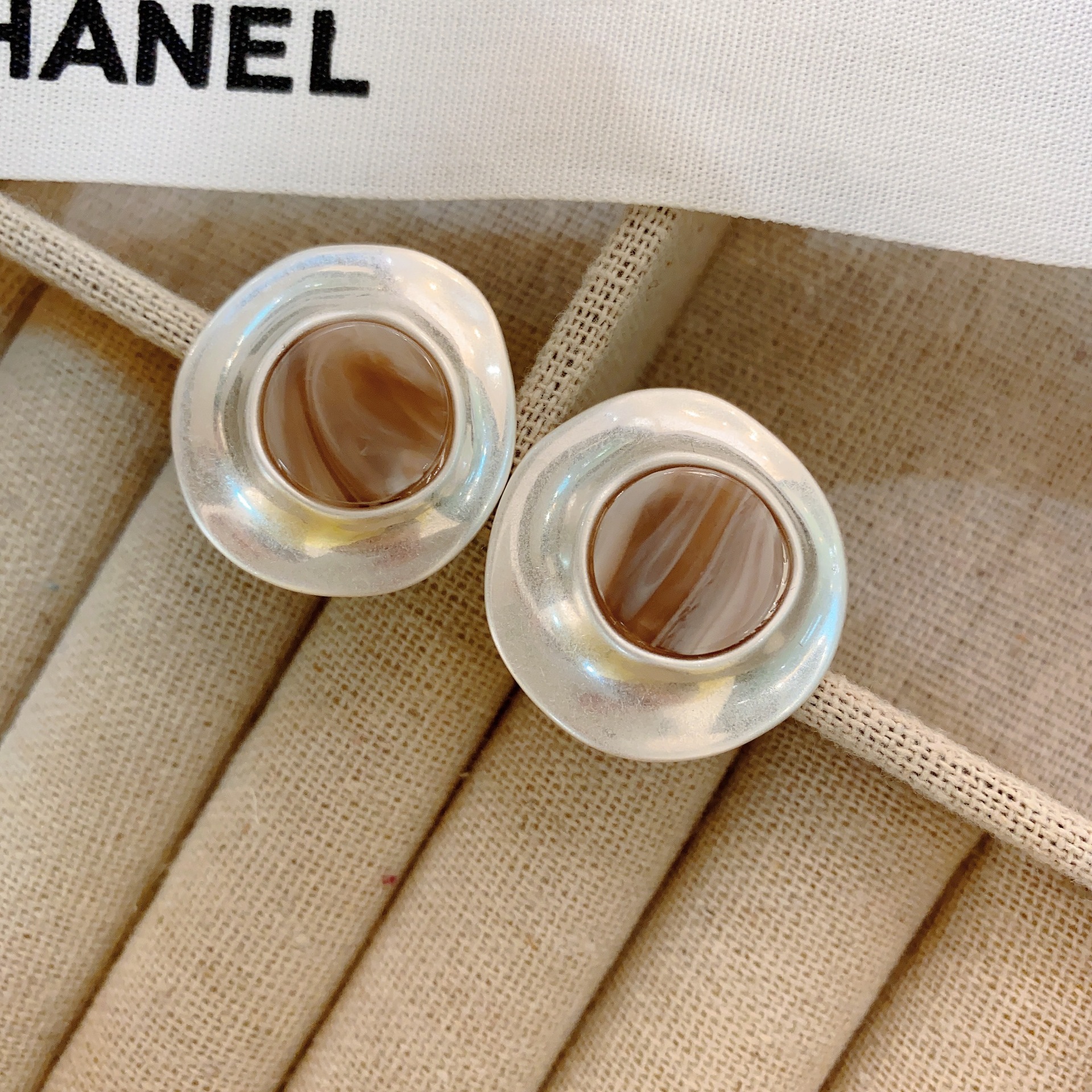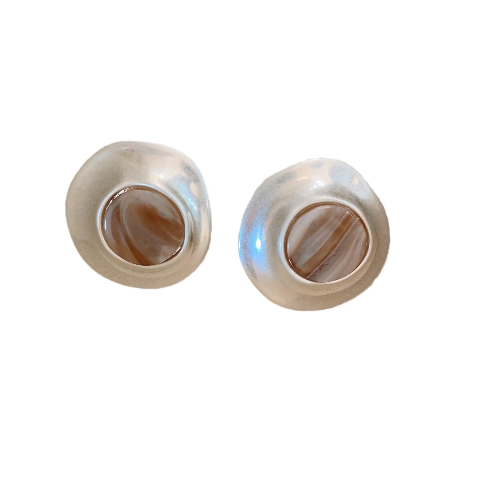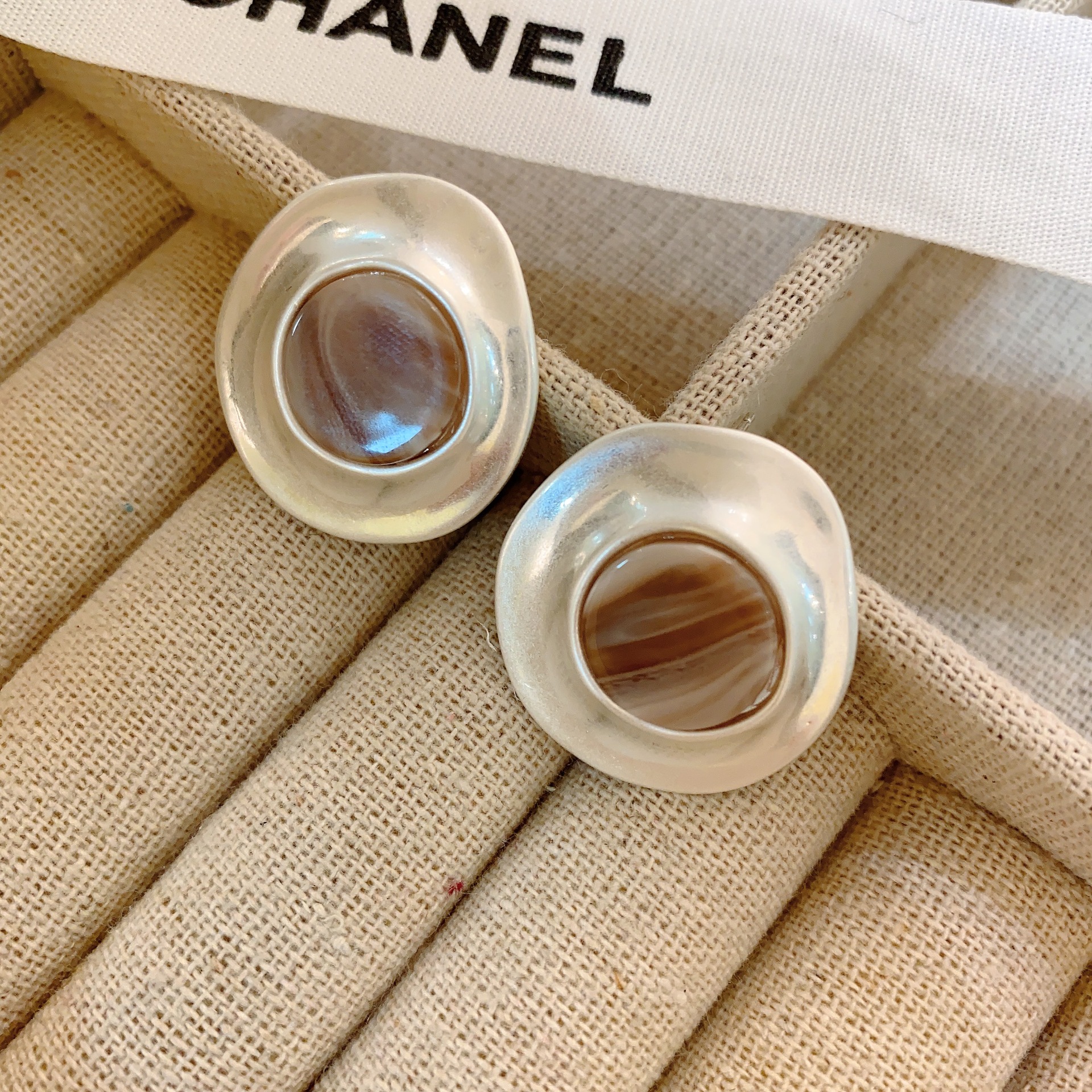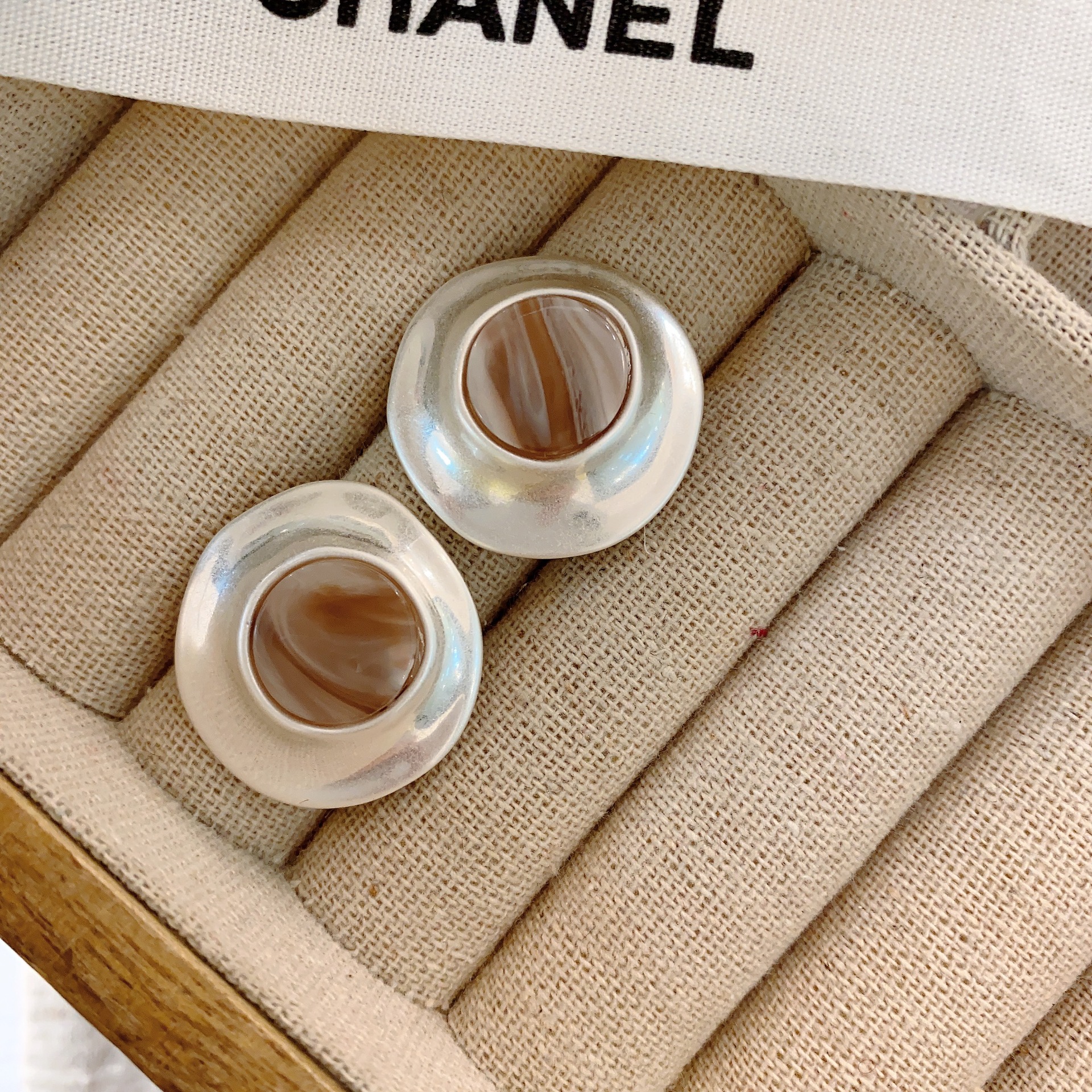 原生系列木纹石简约圆圈耳钉女2025新款小众设计高级感秋