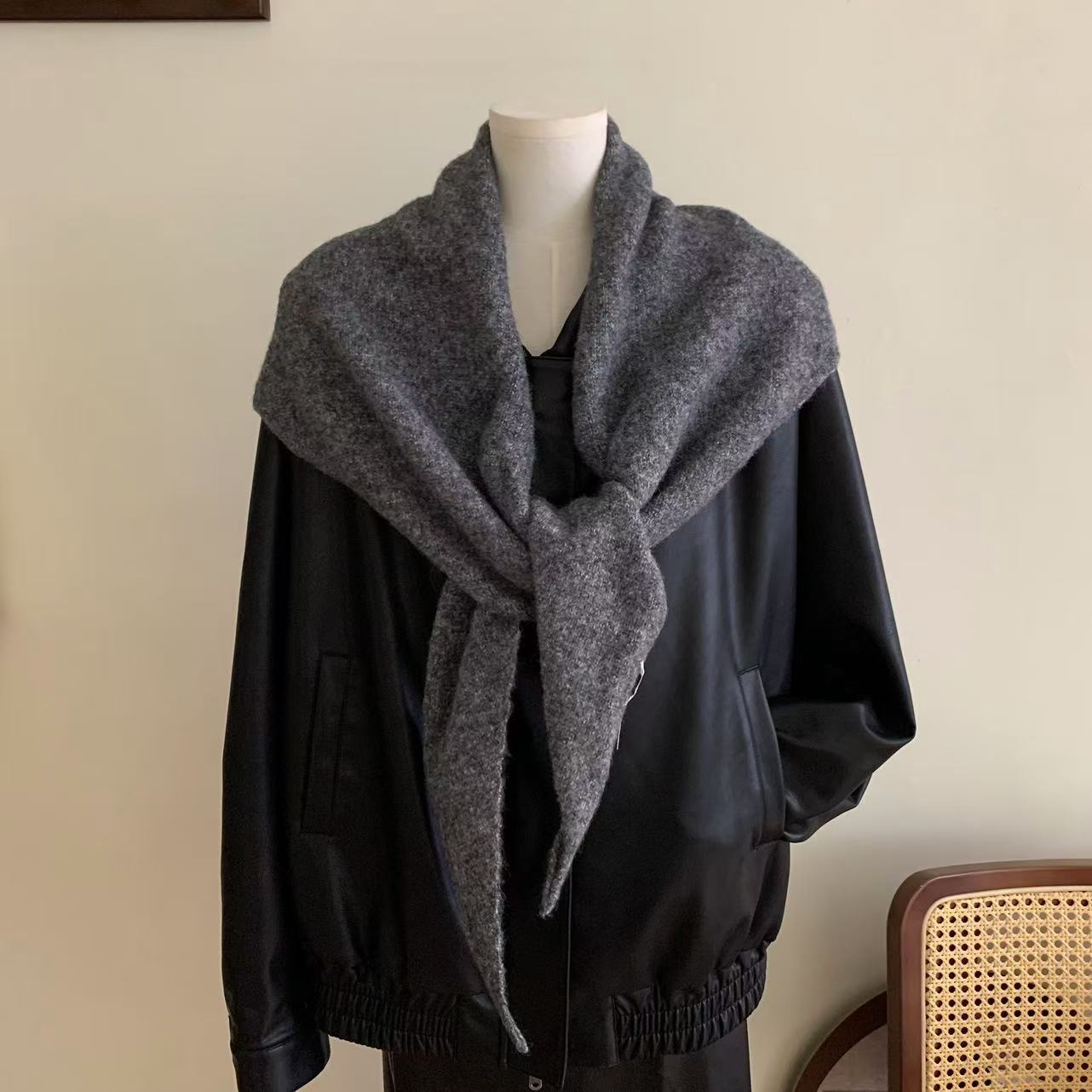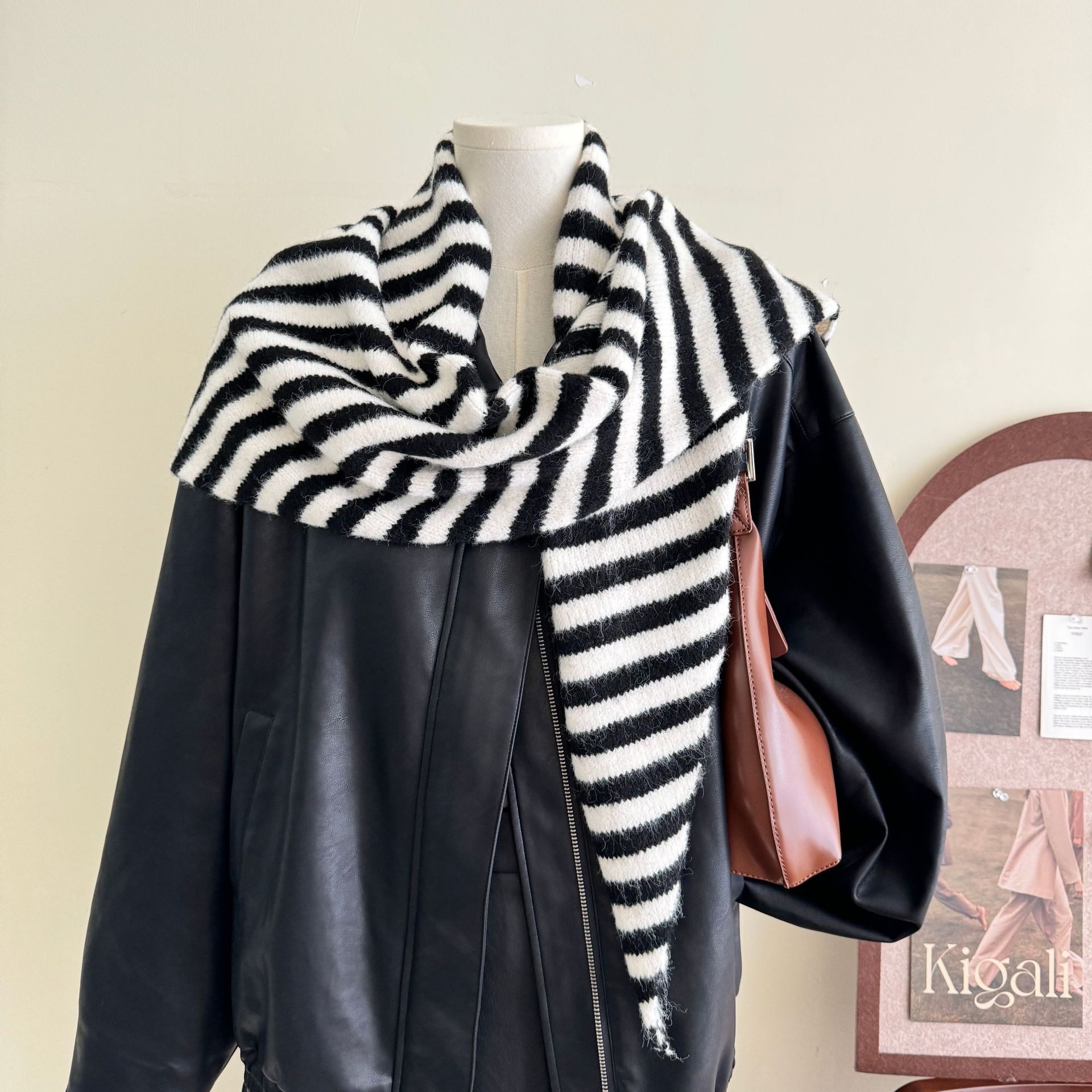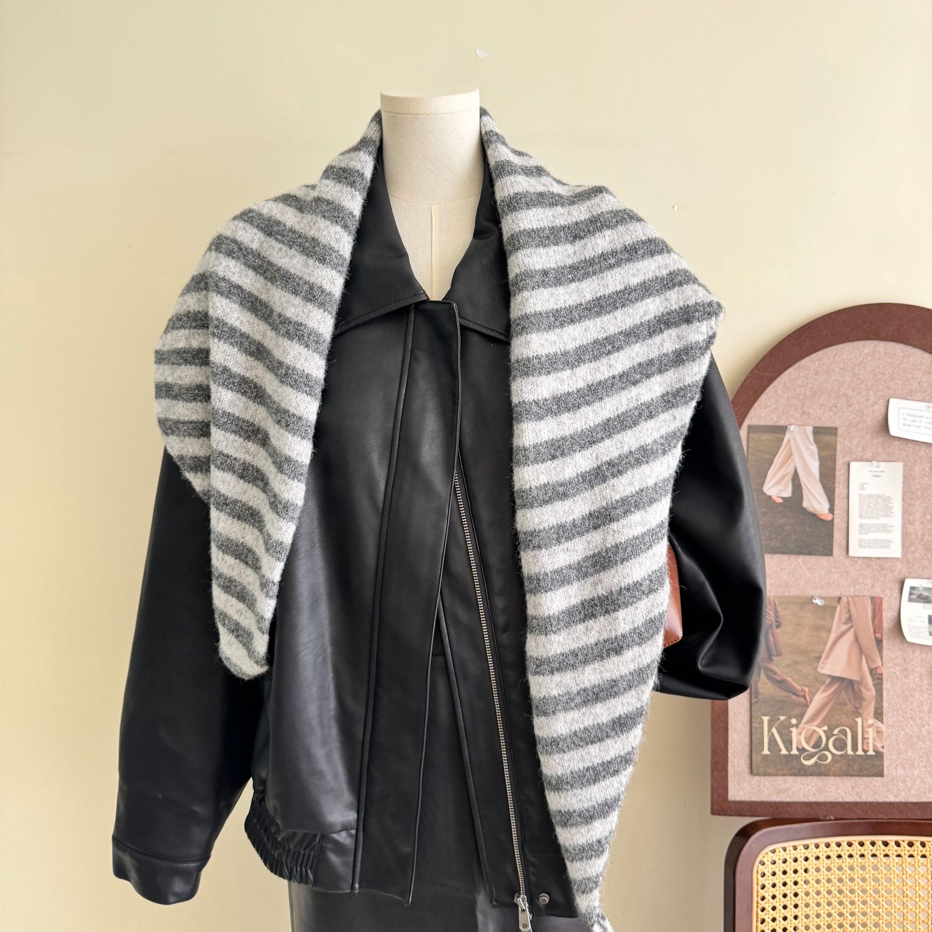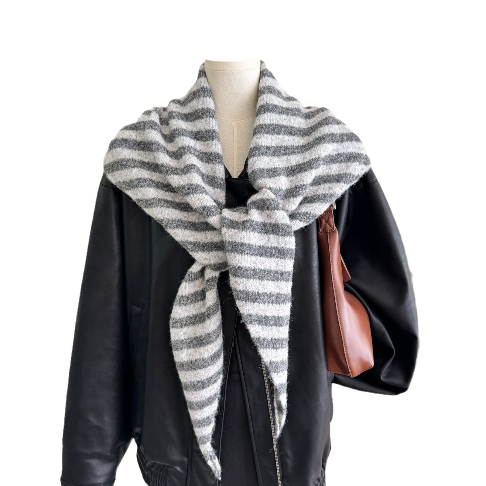 出口韩国原单洋气羊毛混纺针织条纹三角围巾披肩秋冬新款外搭坎肩