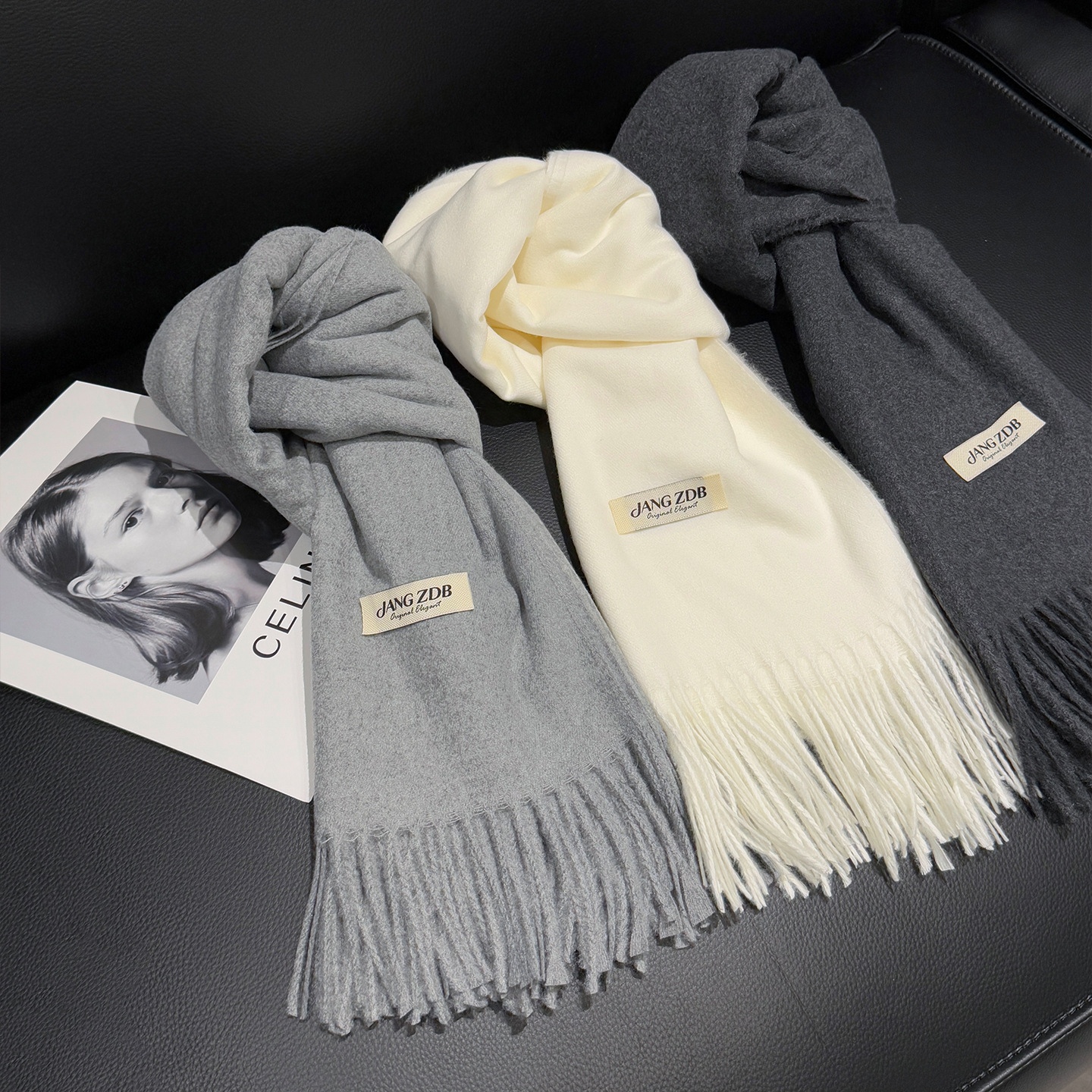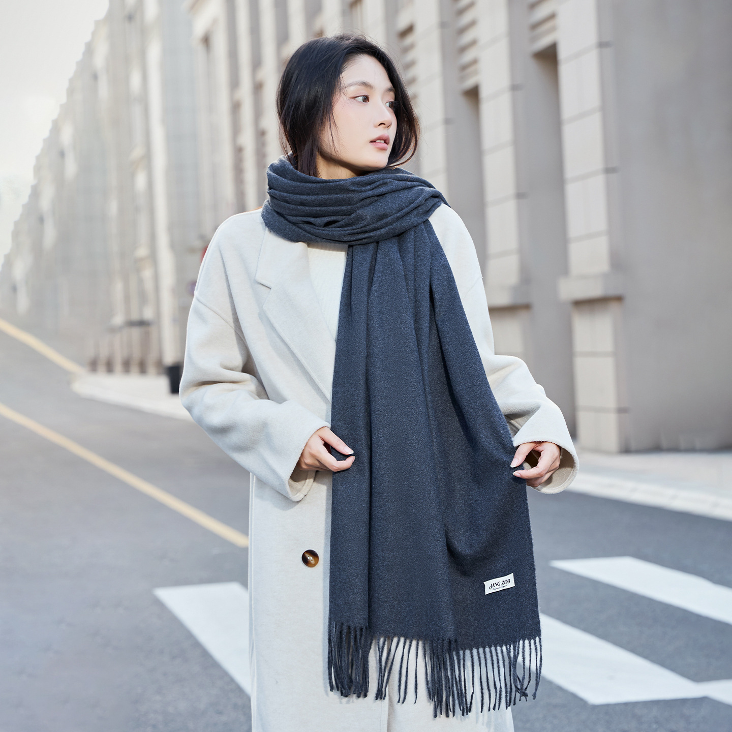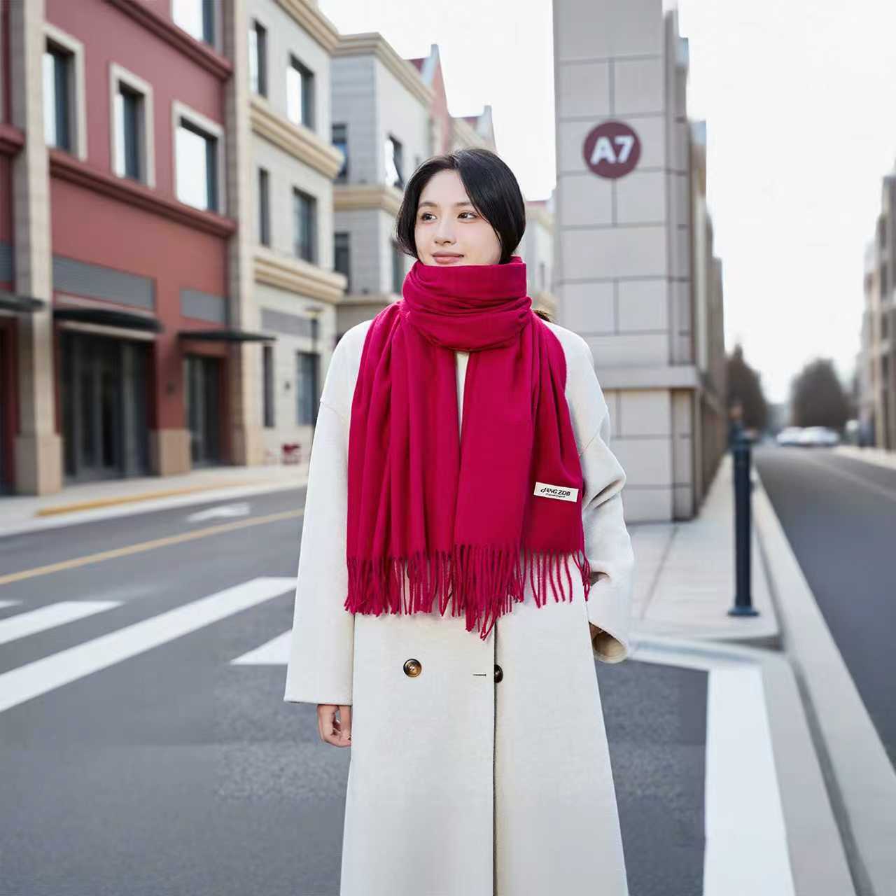 围巾女冬季2025新款加厚保暖仿羊绒纯色披肩韩版百搭流苏围脖批发