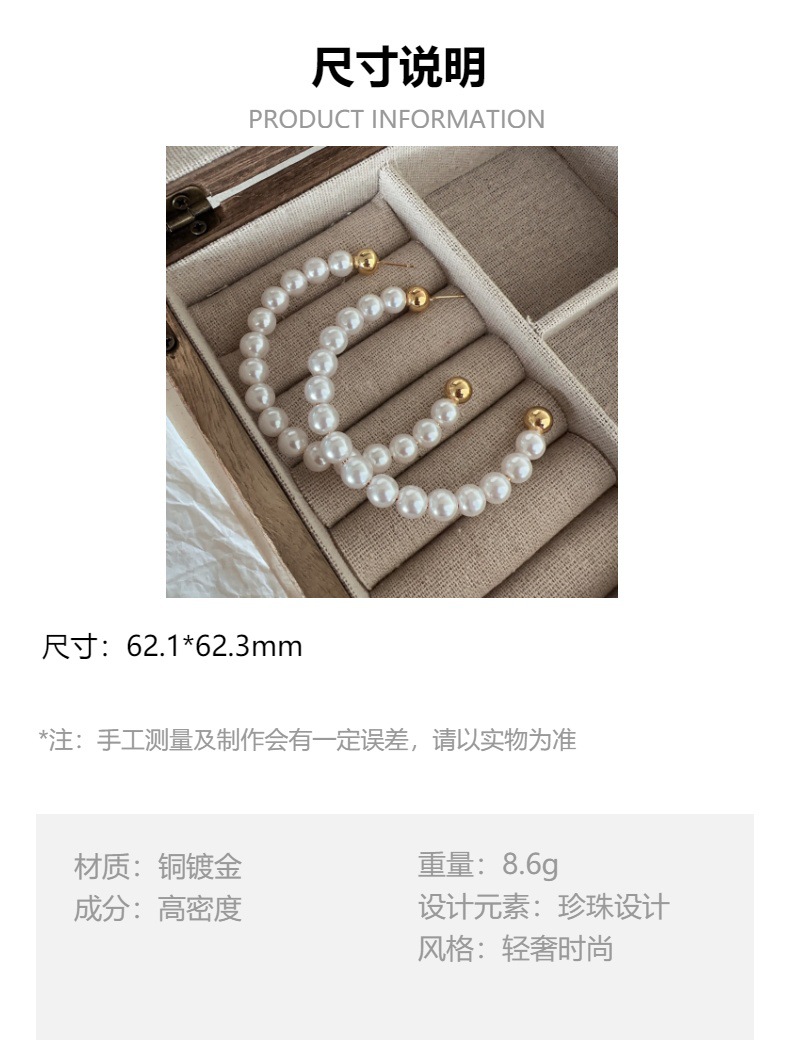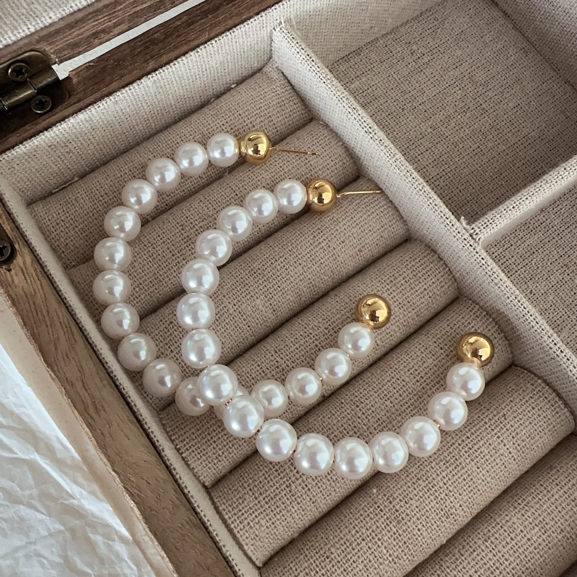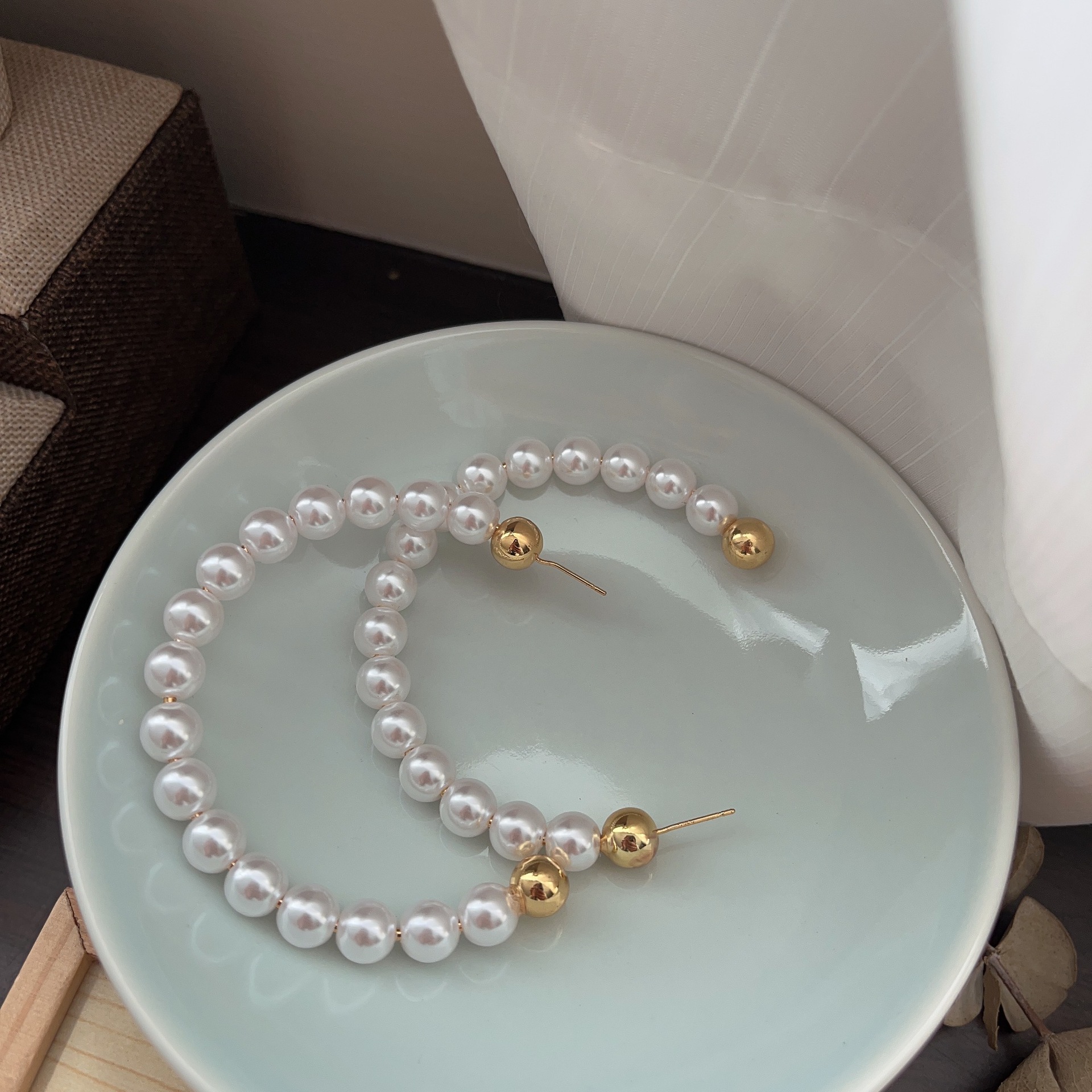 珍珠夸张圆圈耳环女简约高级感C形耳钉网红气质2025新款潮耳饰潮