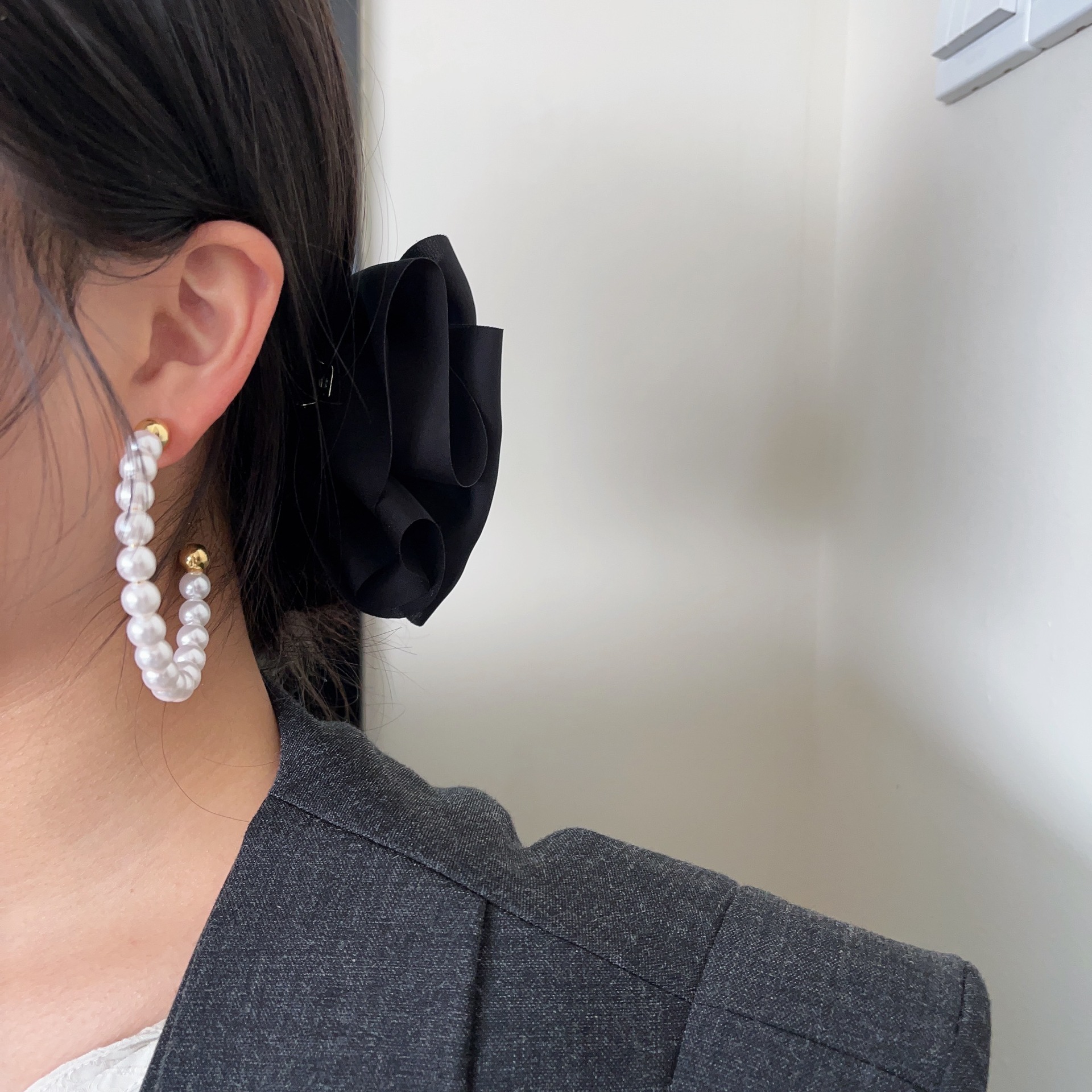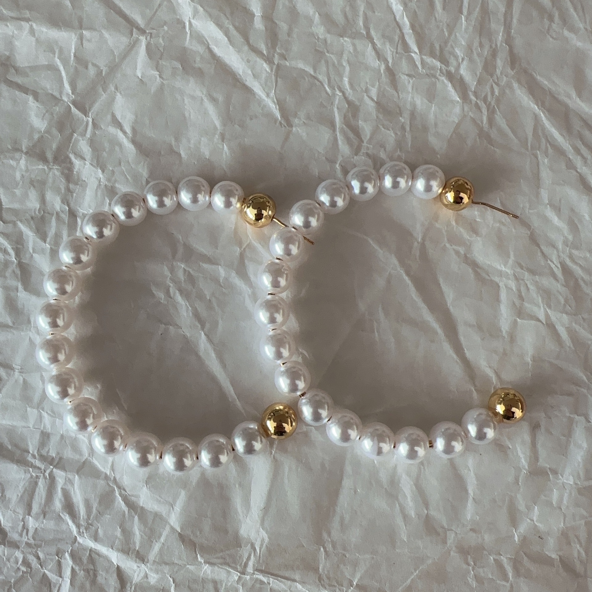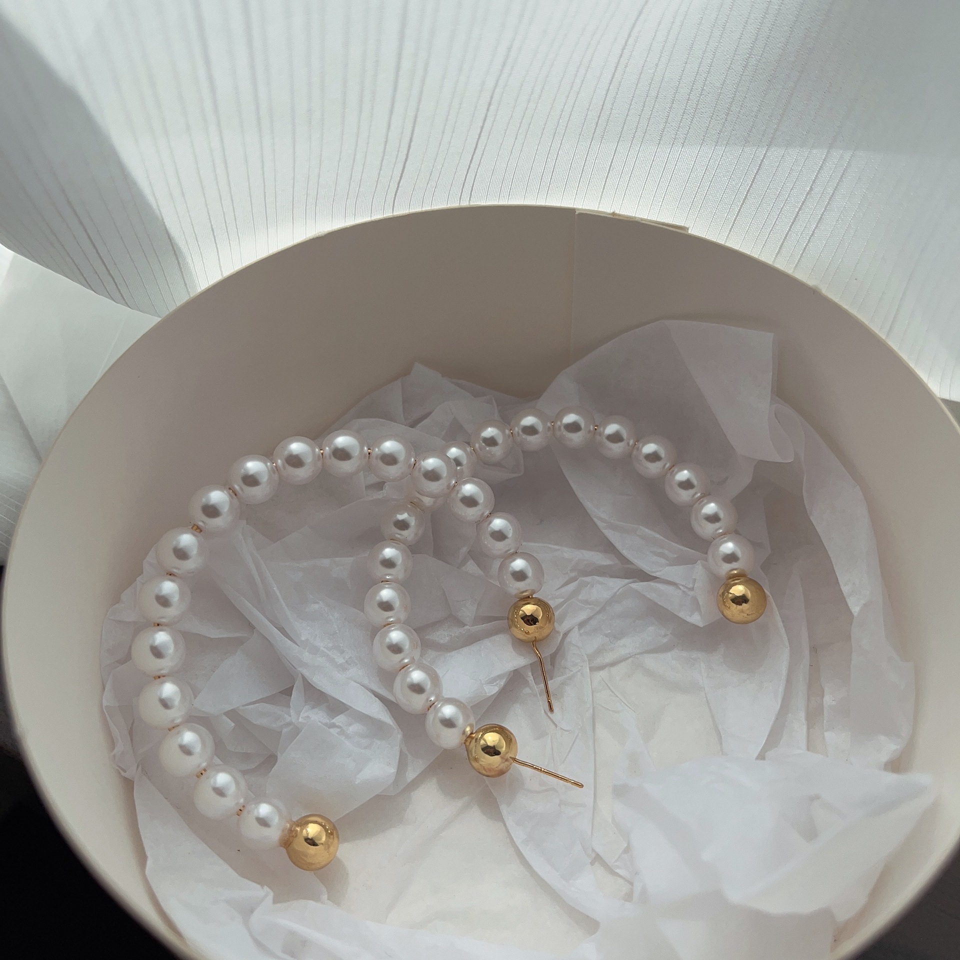 珍珠夸张圆圈耳环女简约高级感C形耳钉网红气质2025新款潮耳饰潮