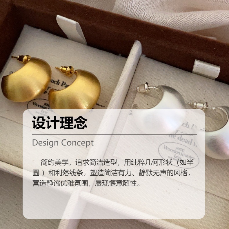 拉丝月亮耳钉欧美大气百搭简约冷淡风设计高级感耳饰跨境热销耳环