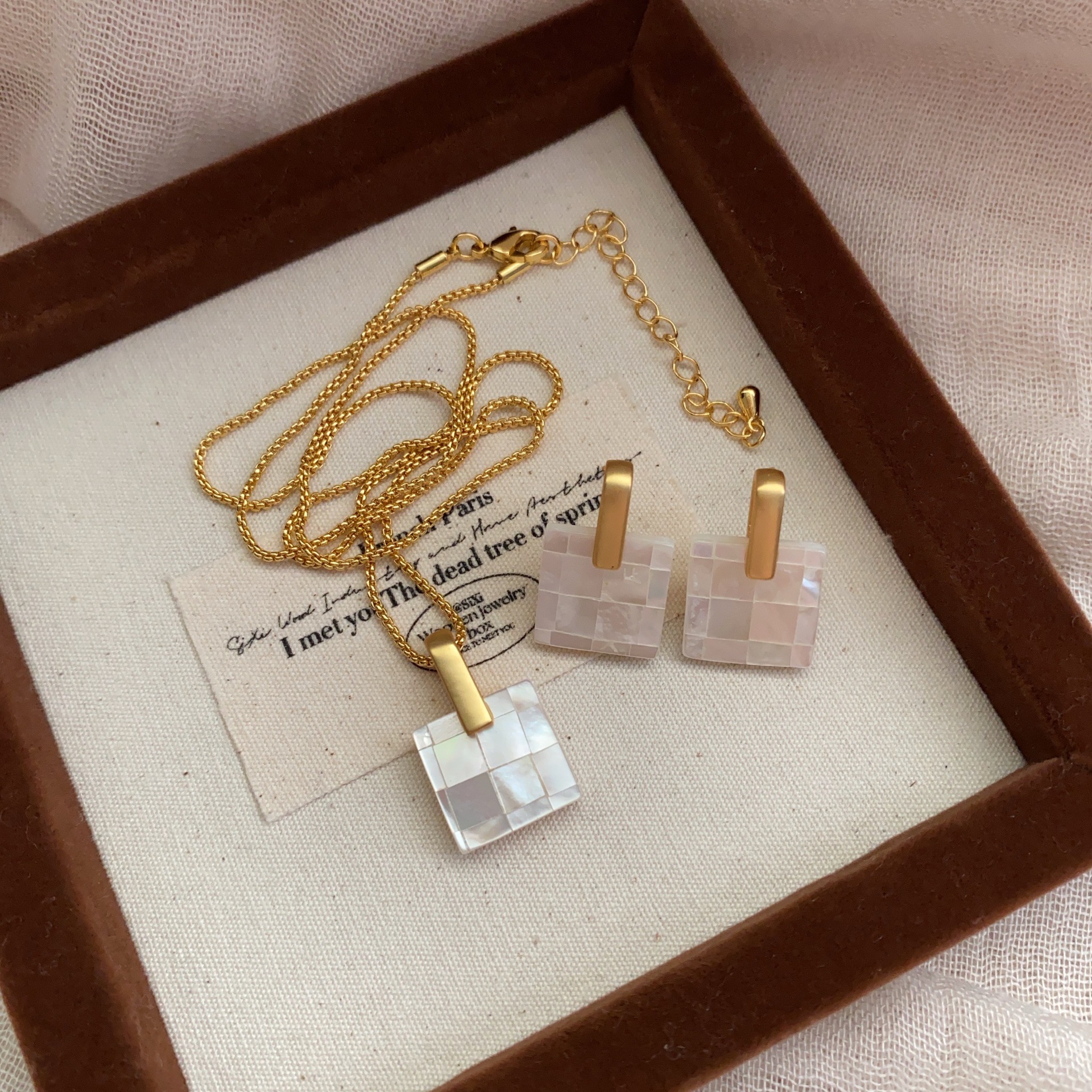 轻奢高级感耳钉项链2025简约爆款耳饰小众设计感贝母耳钉贝壳项链