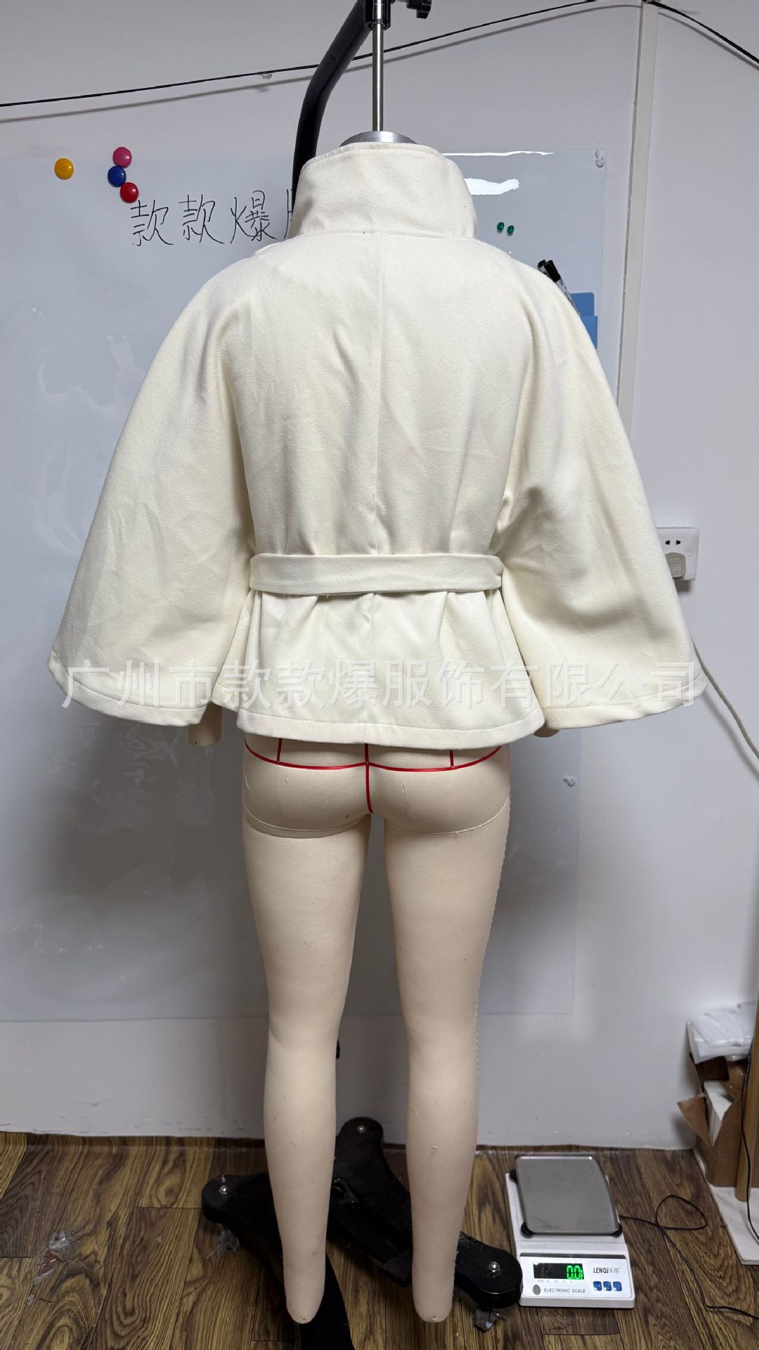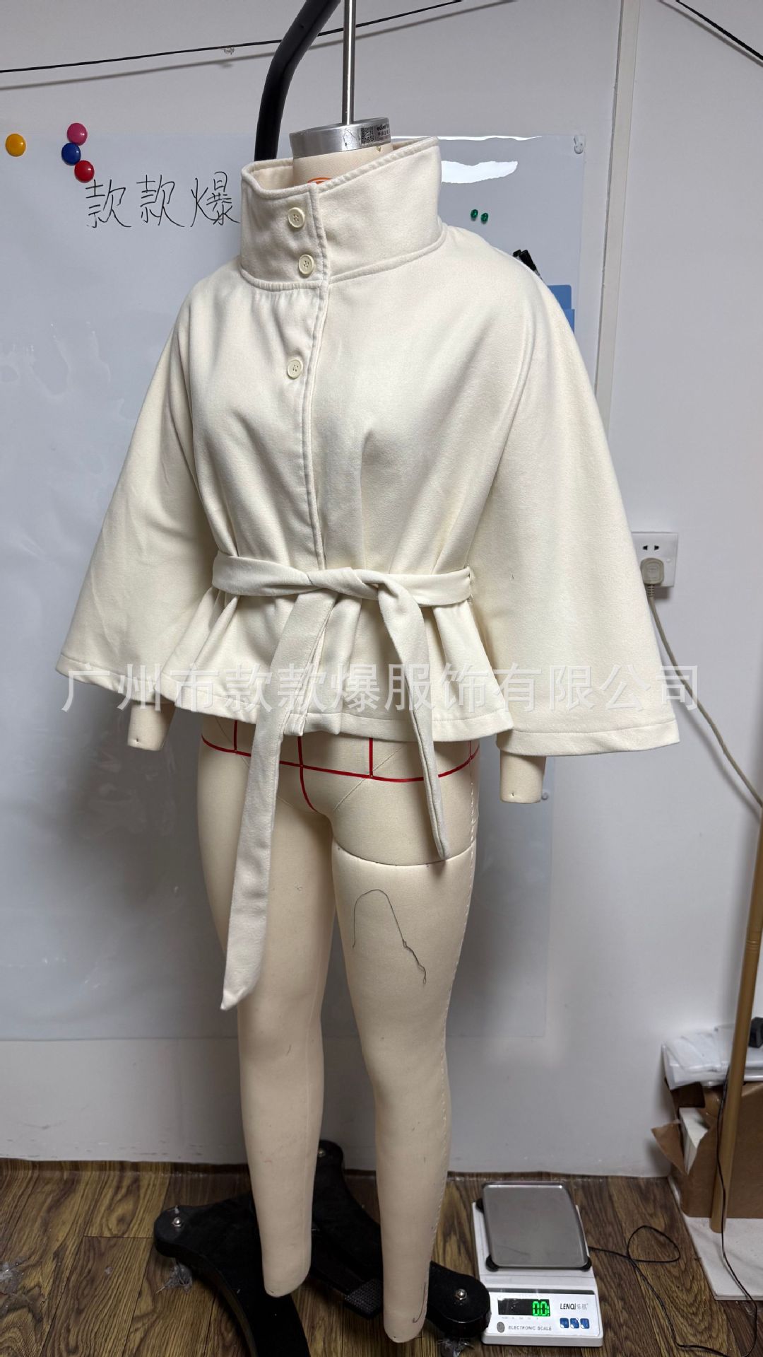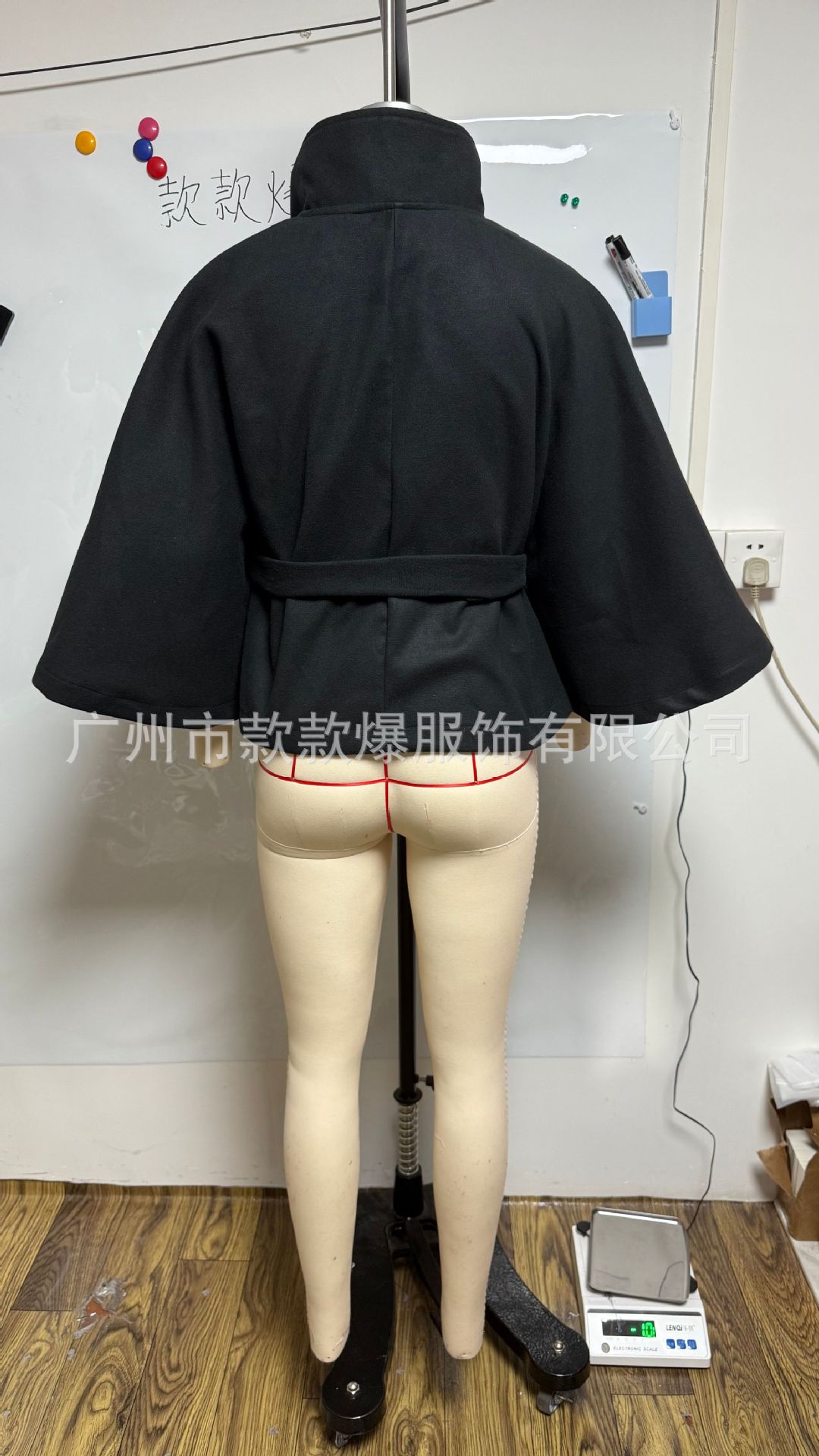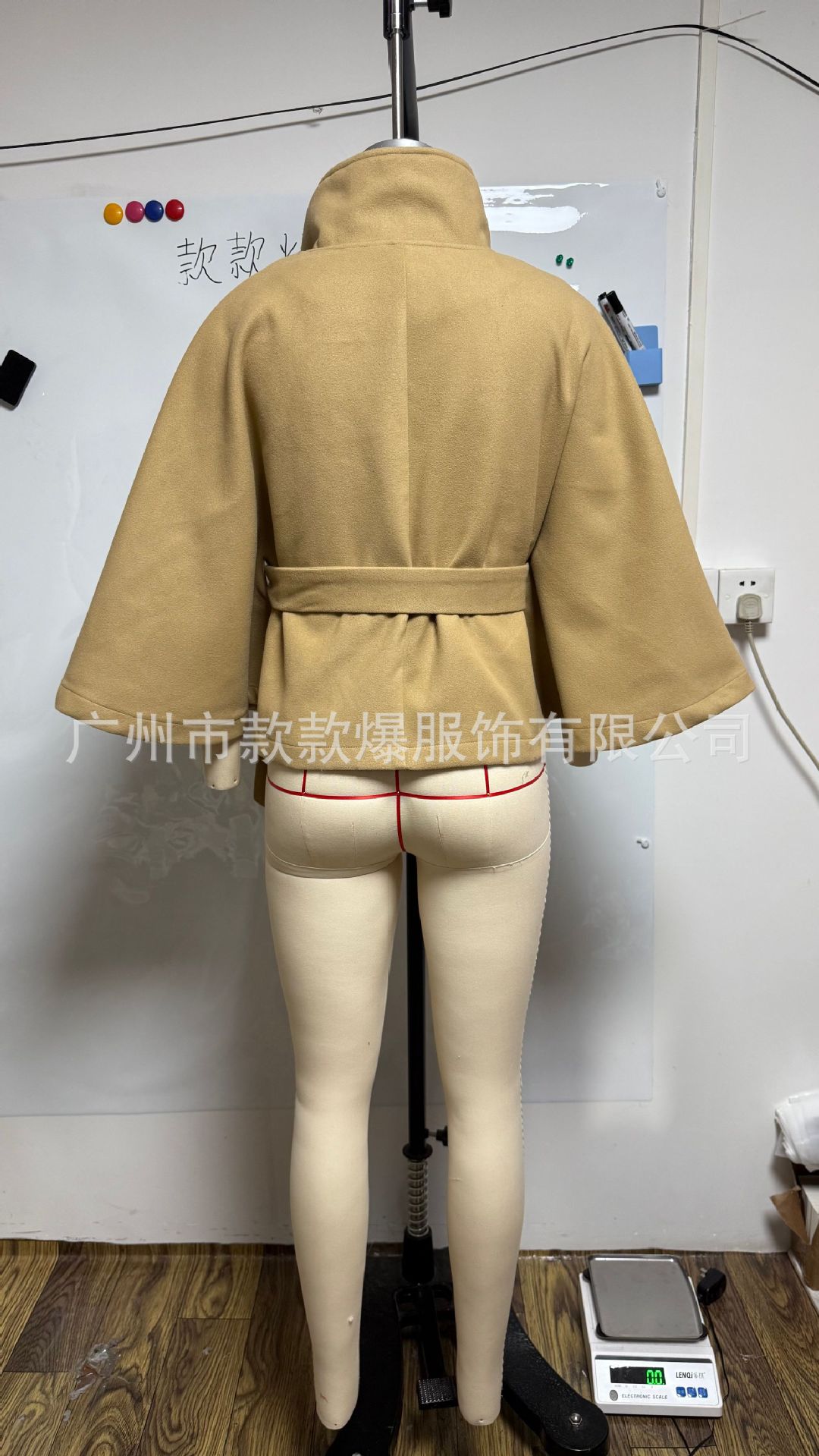 欧美女装秋冬季新款亚马逊跨境时尚纯色斗篷立领纽扣腰带风衣外套