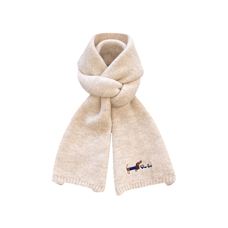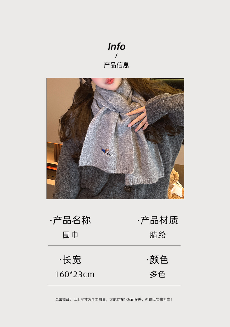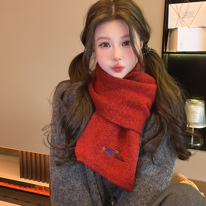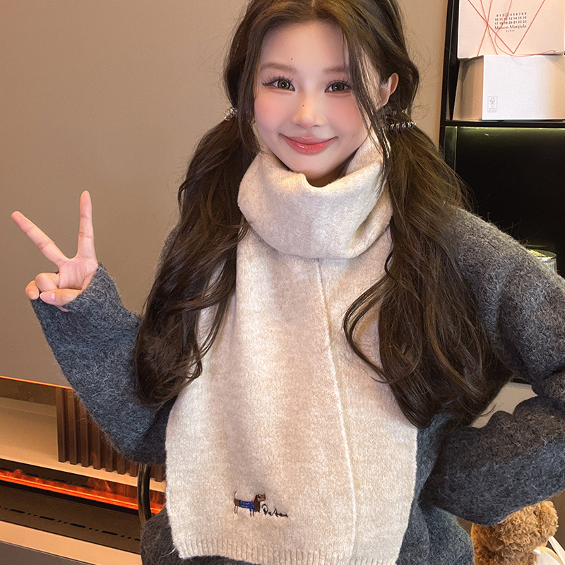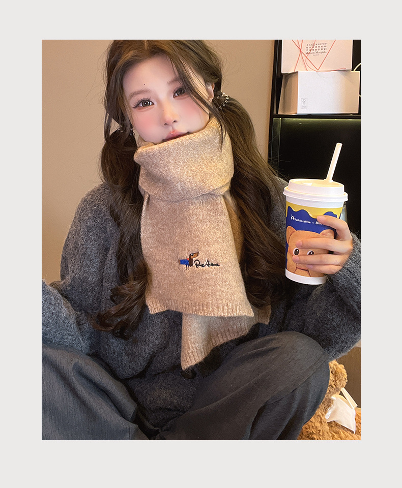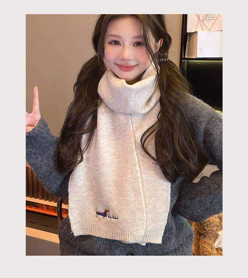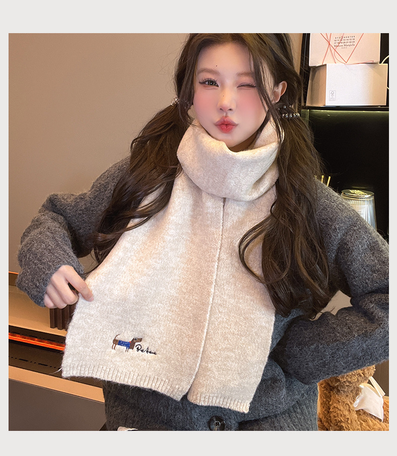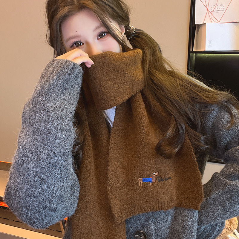 日系刺绣小狗针织围巾女秋冬季学生骑车保暖百搭仿羊绒情侣围脖男