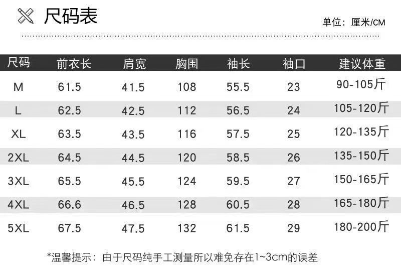 | 4xl 80.00 kg-85.00 kg(4XL 160-170斤) | USD $0.0 | 499 piece available |