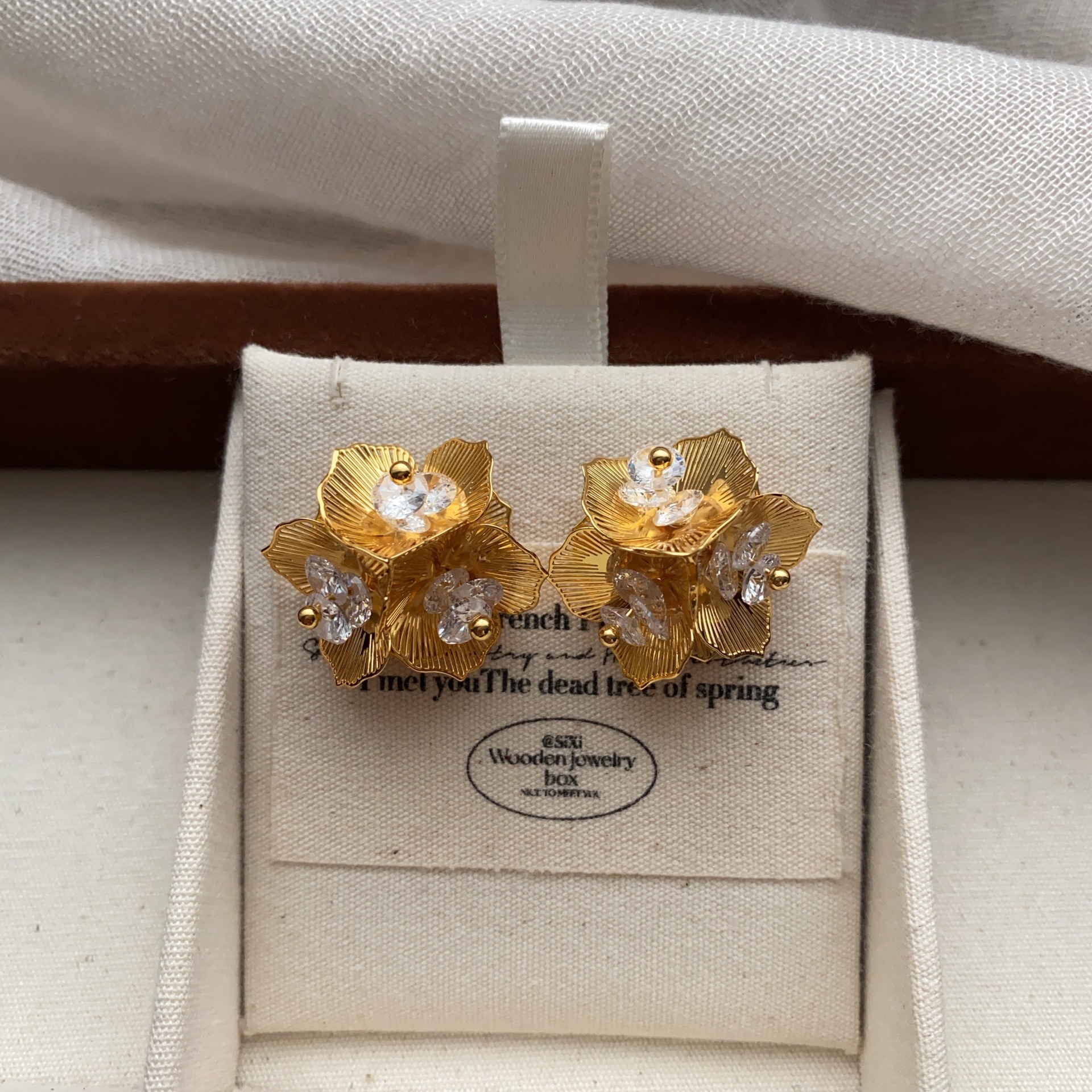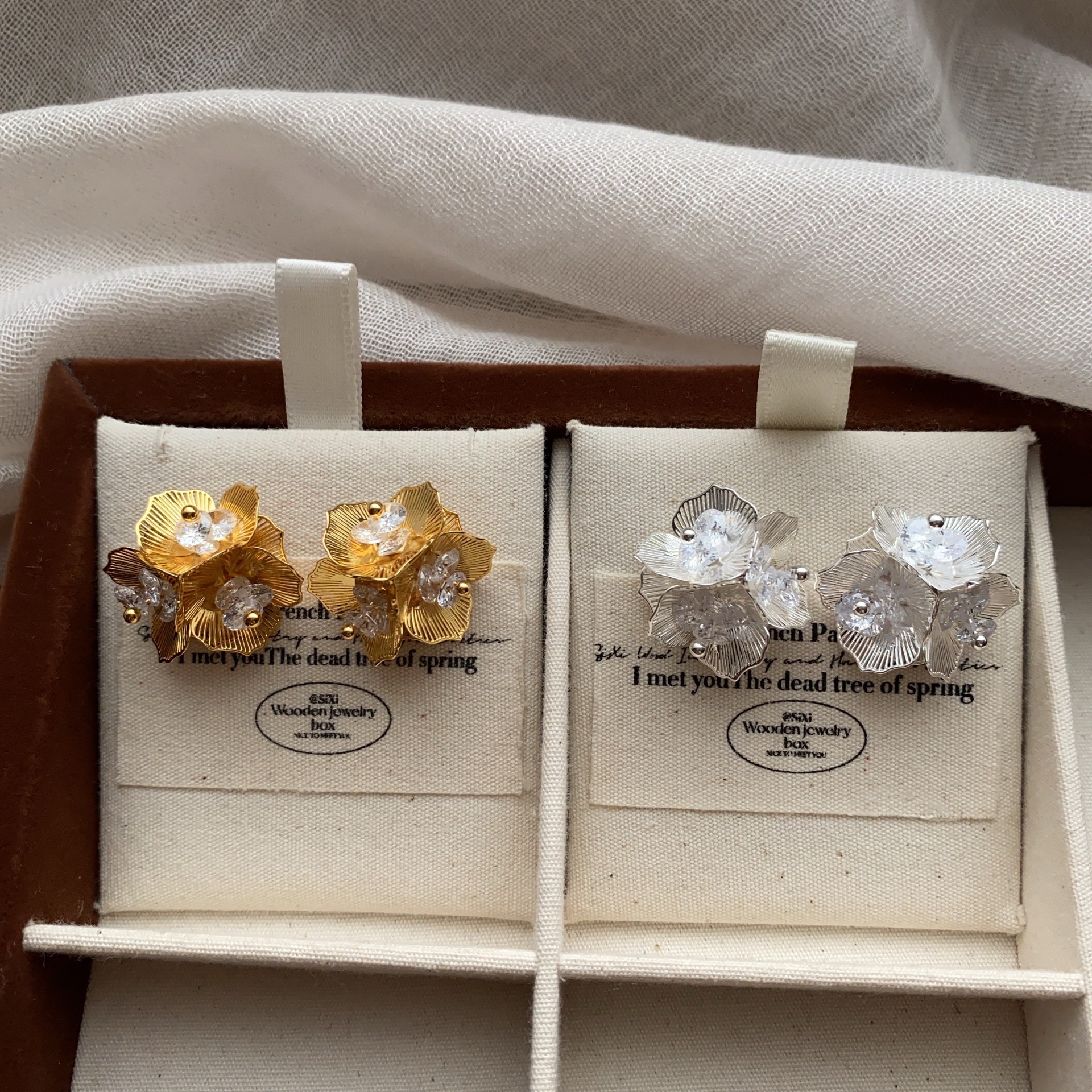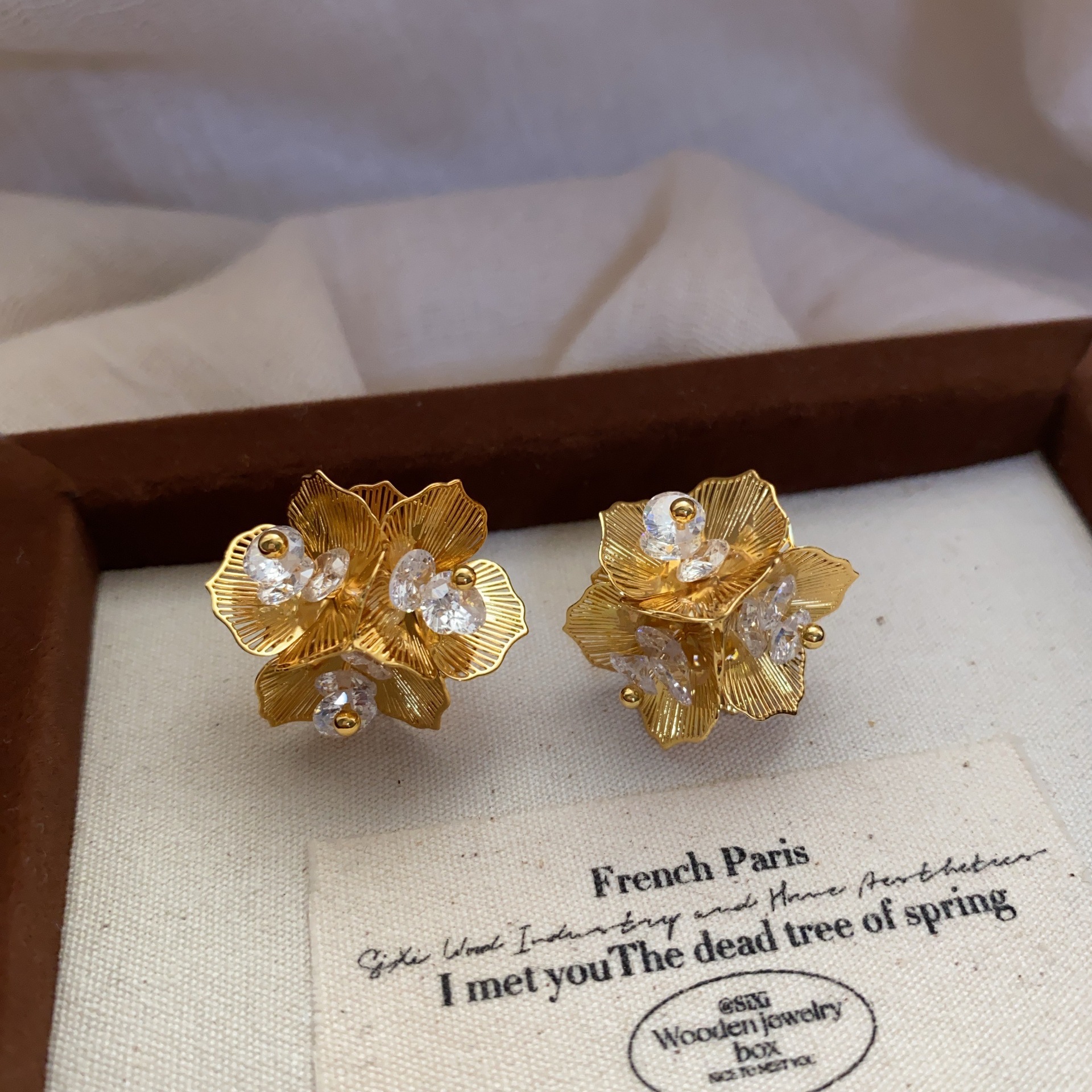 立体花簇锆石超闪耳钉耳饰气质复古简约优雅百搭时尚花朵华丽精致