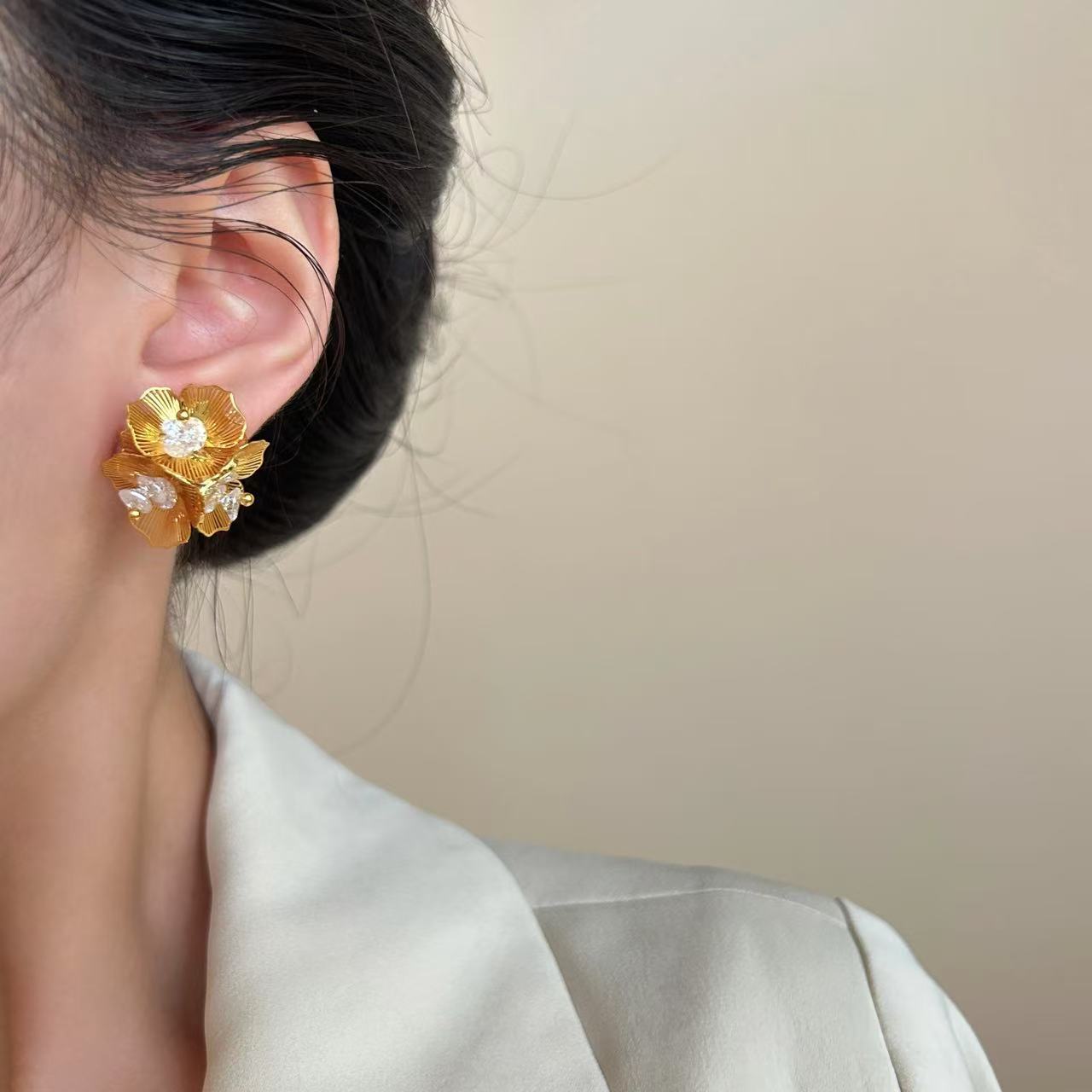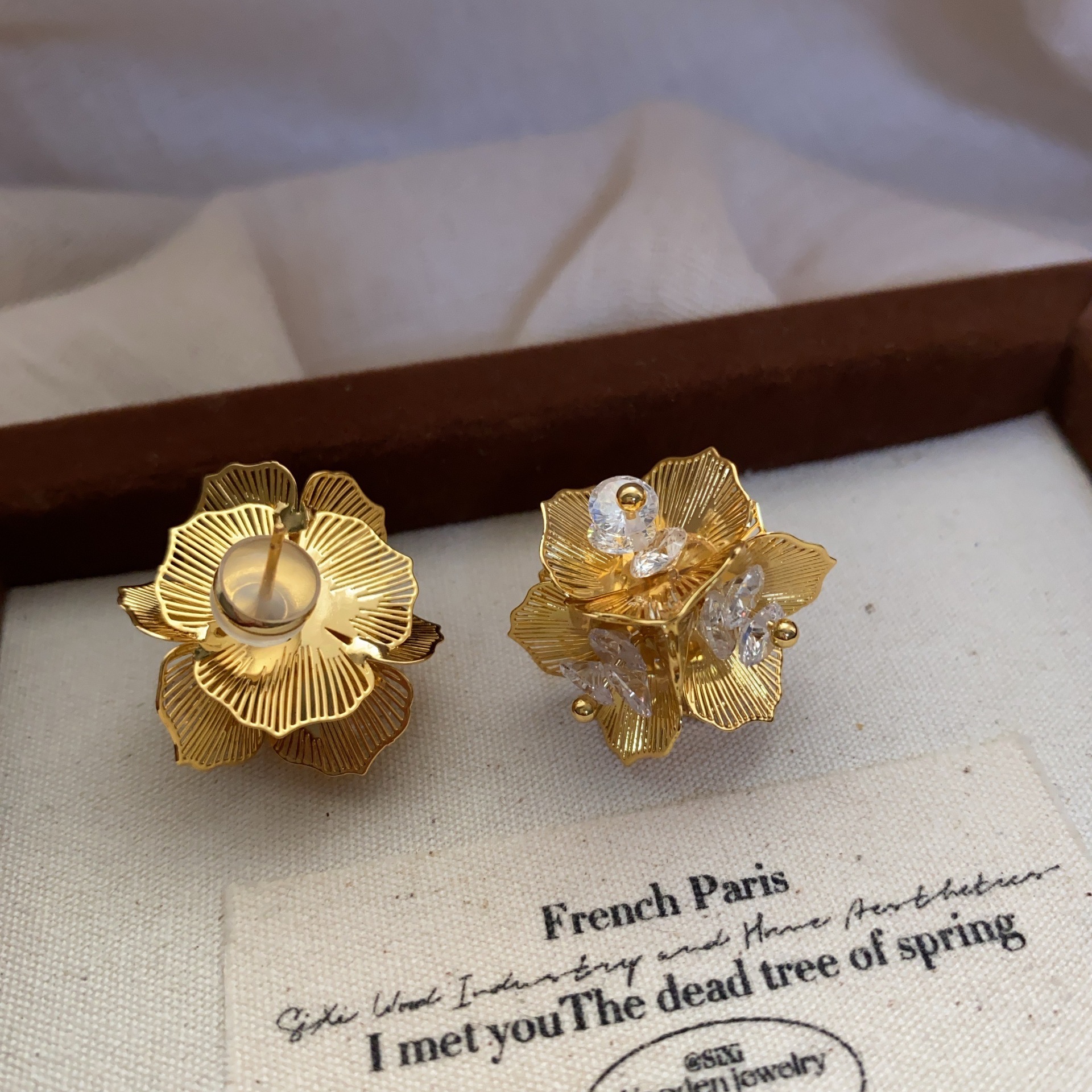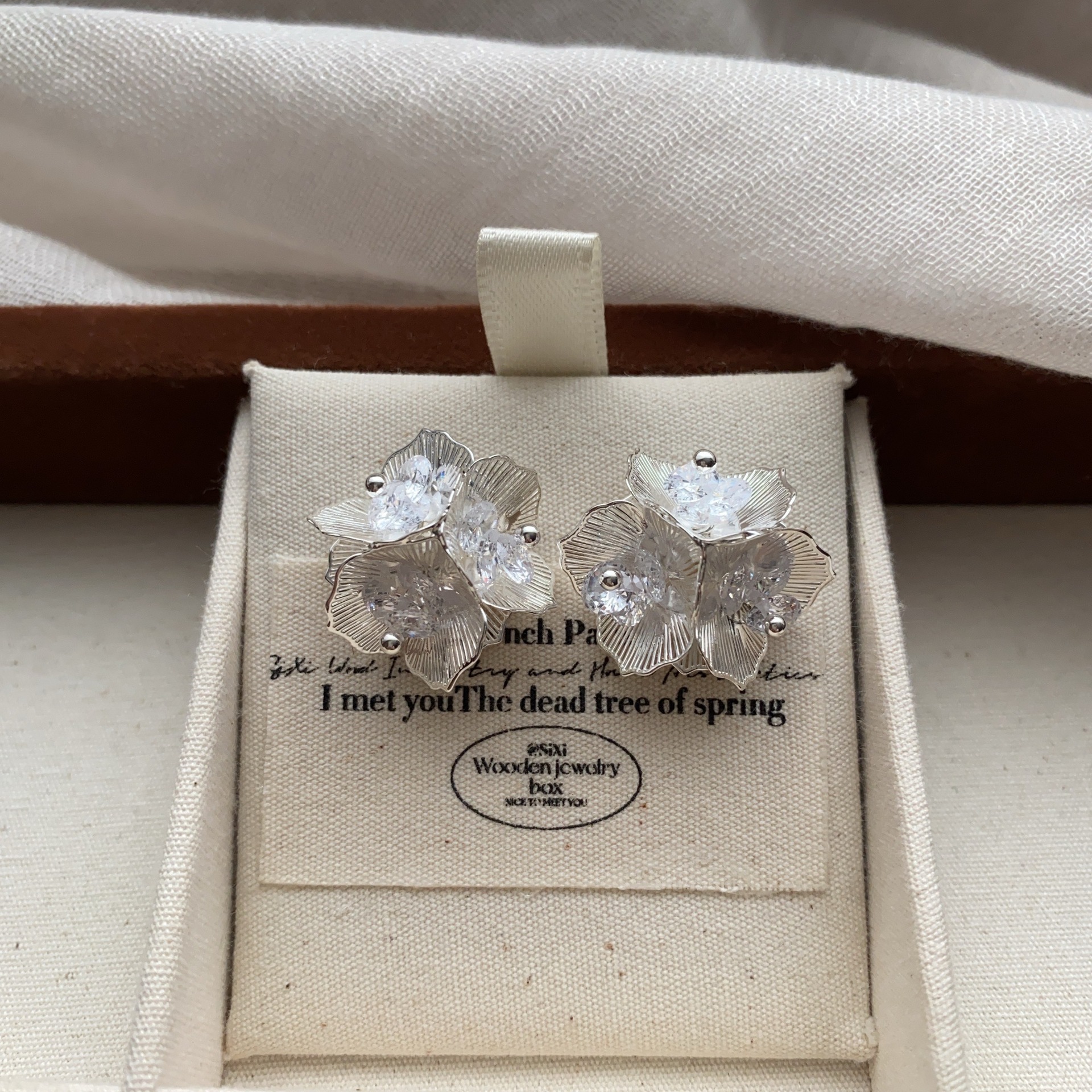 立体花簇锆石超闪耳钉耳饰气质复古简约优雅百搭时尚花朵华丽精致
