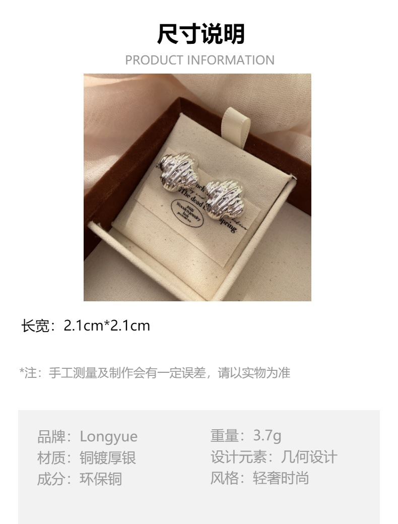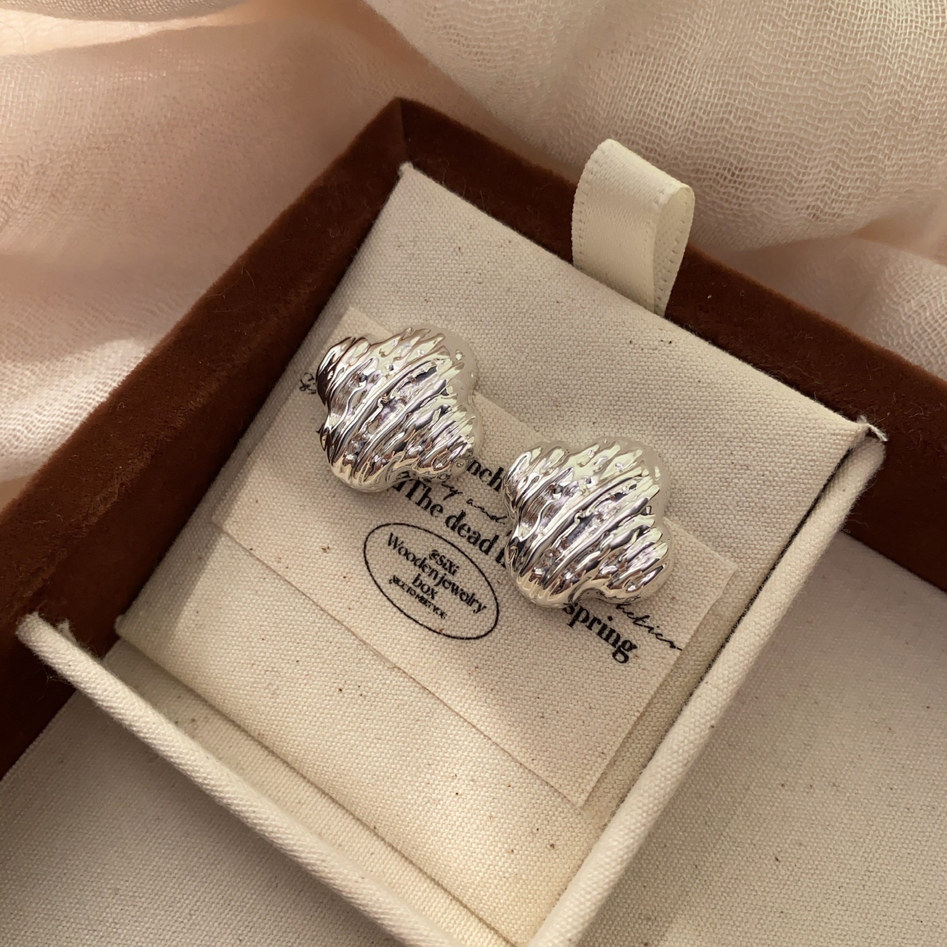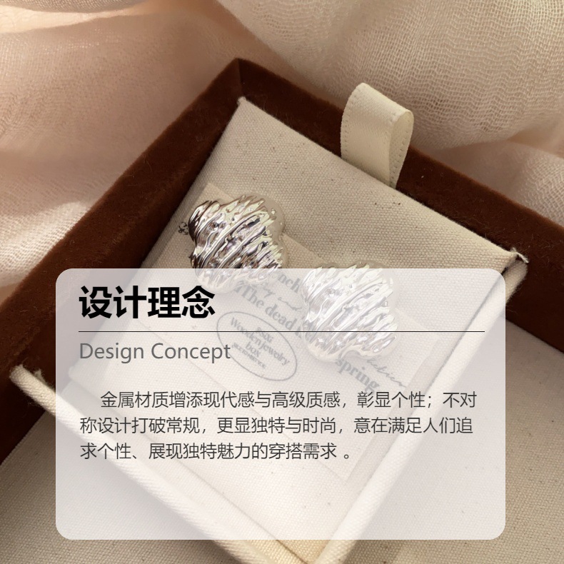 复古耳钉不规则金属风核桃纹耳环个性肌理感轻奢高级小众设计耳环