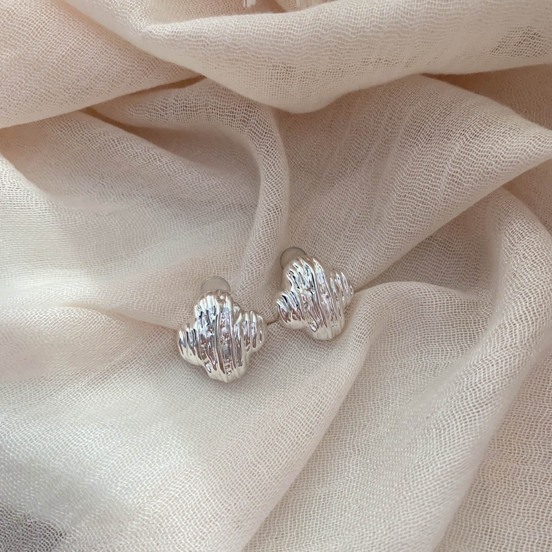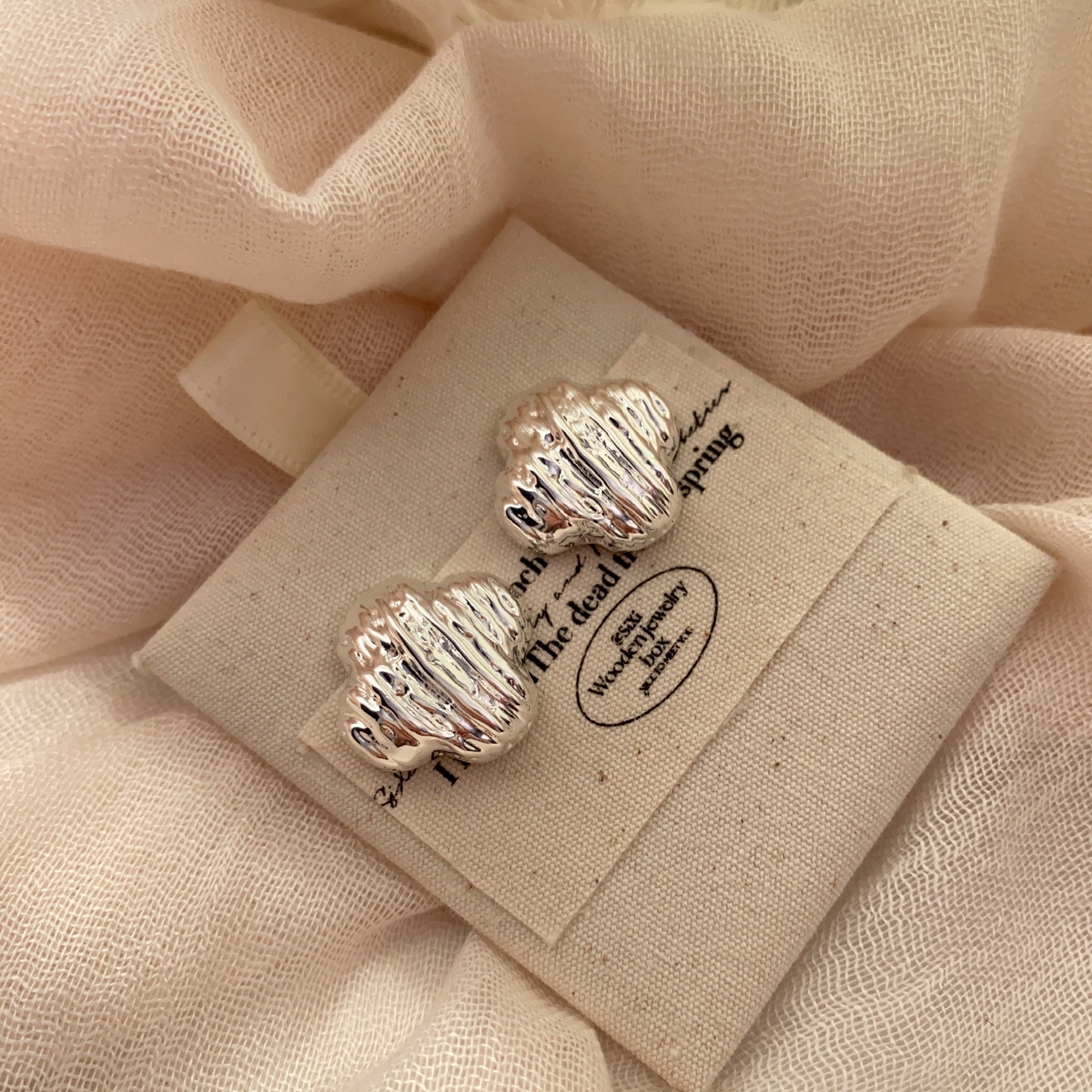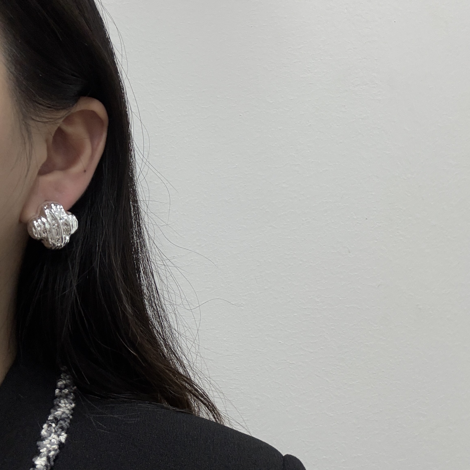 复古耳钉不规则金属风核桃纹耳环个性肌理感轻奢高级小众设计耳环