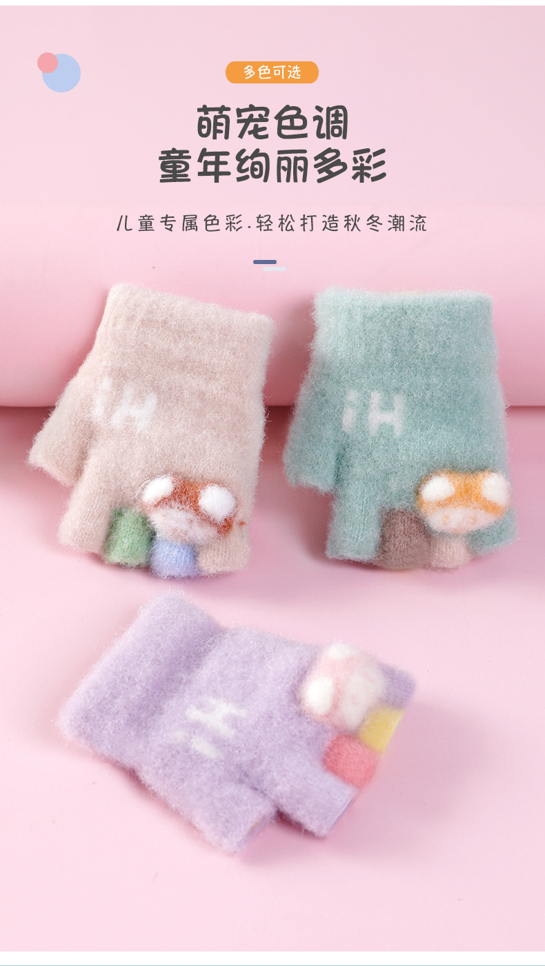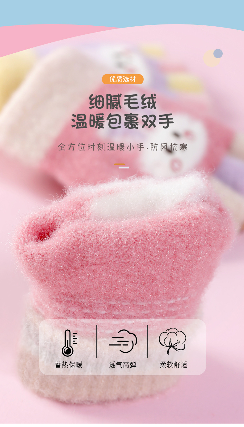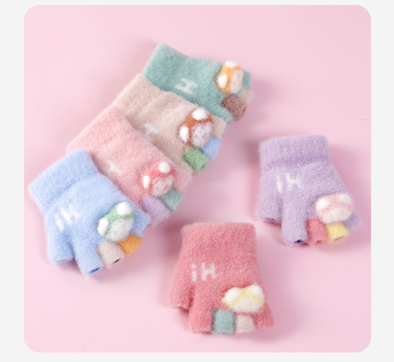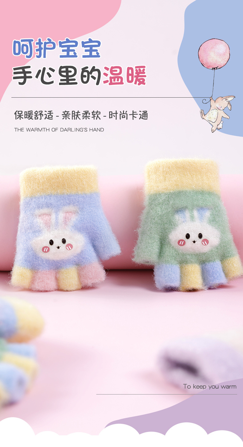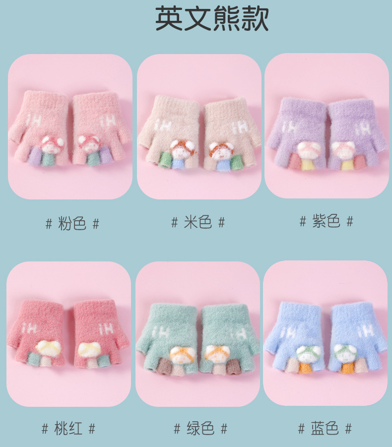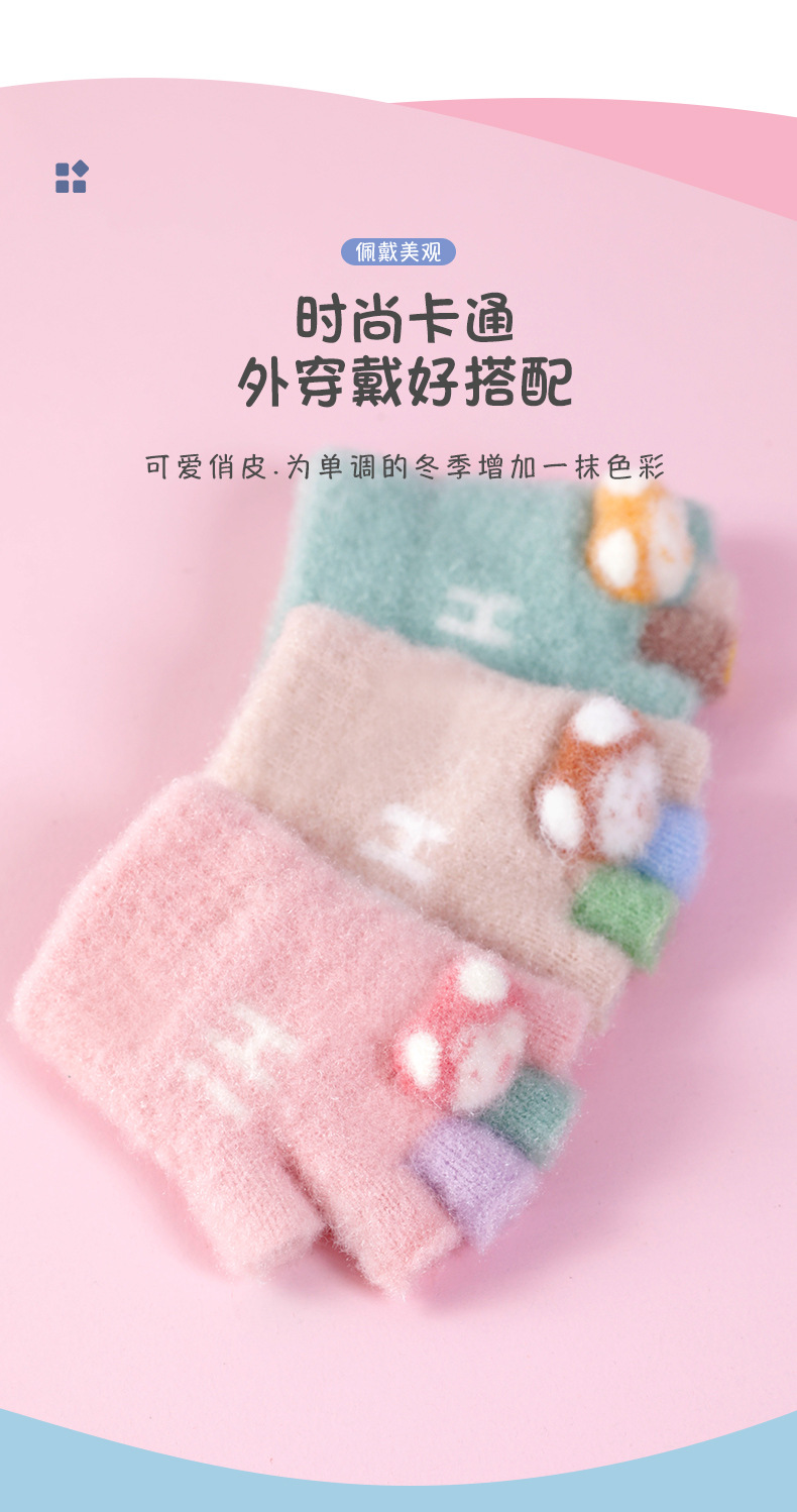 婴儿手套冬季保暖加厚半指男女宝宝露指手套幼儿3岁小孩可爱儿童