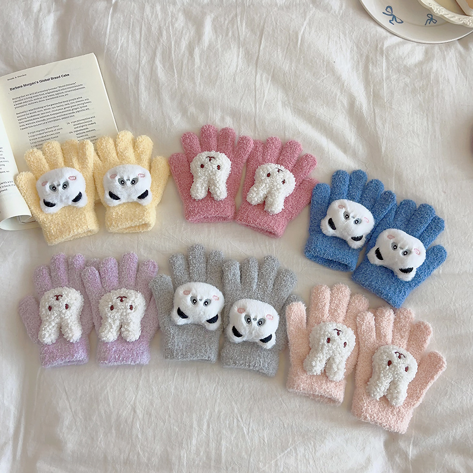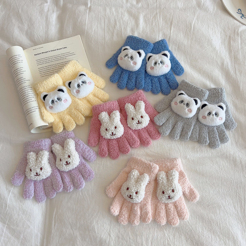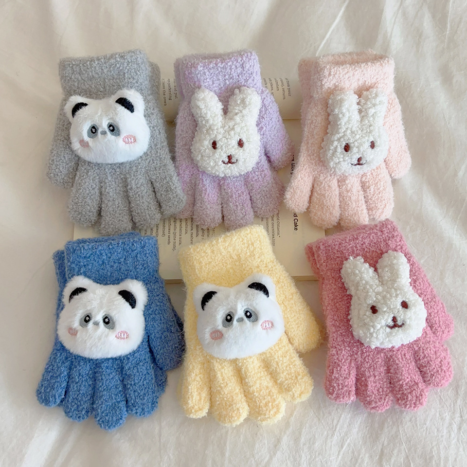 卡通兔子儿童冬天防寒手套加厚保暖五指男女宝宝通用幼儿园1-8岁