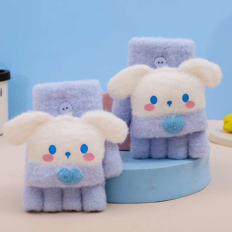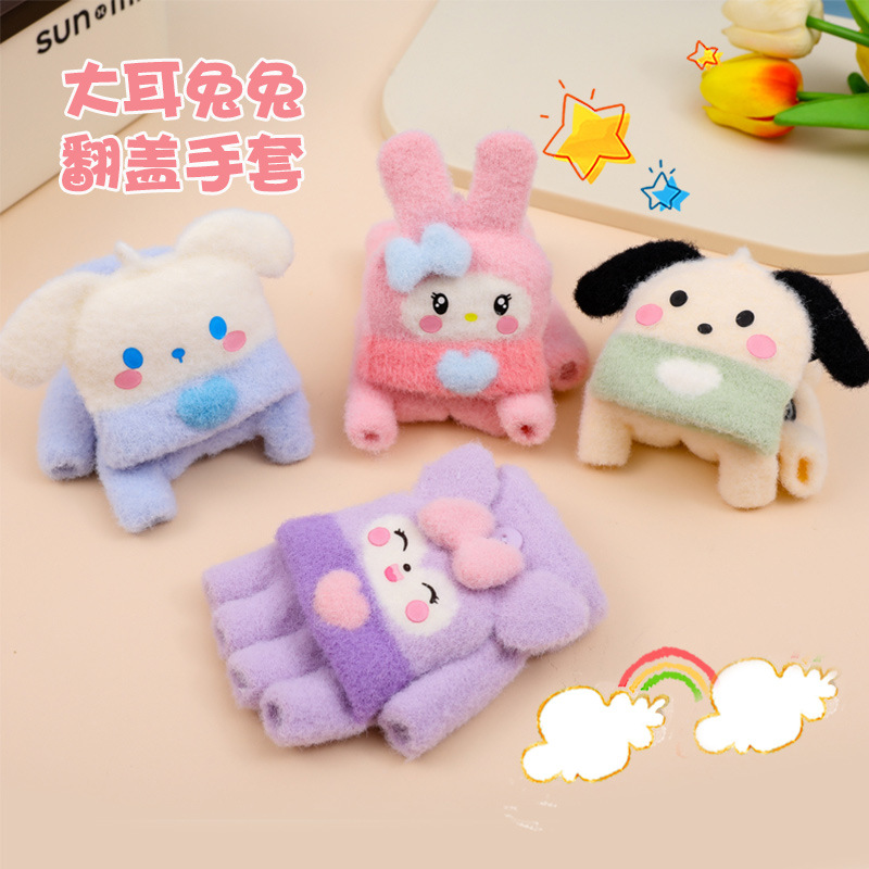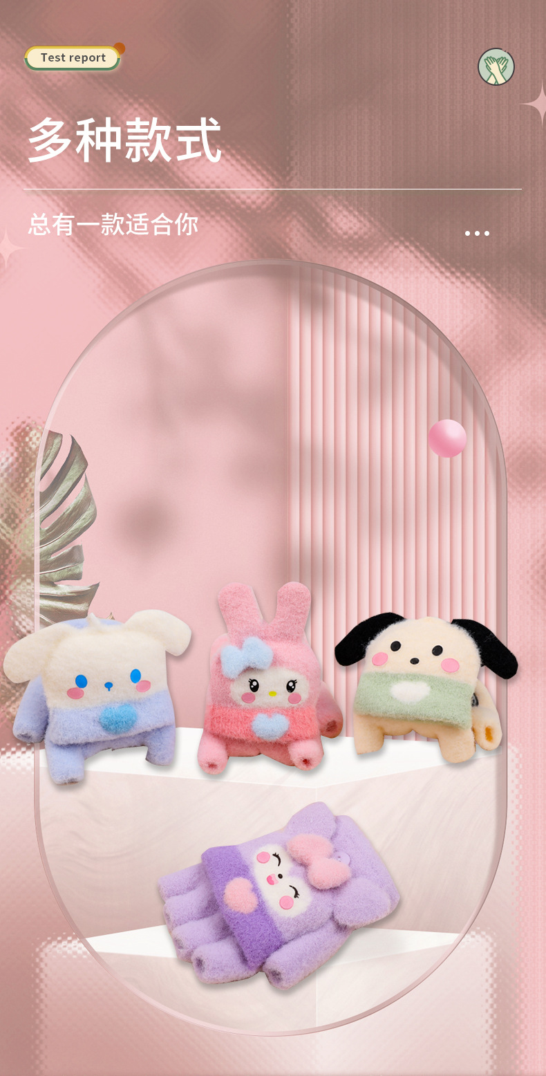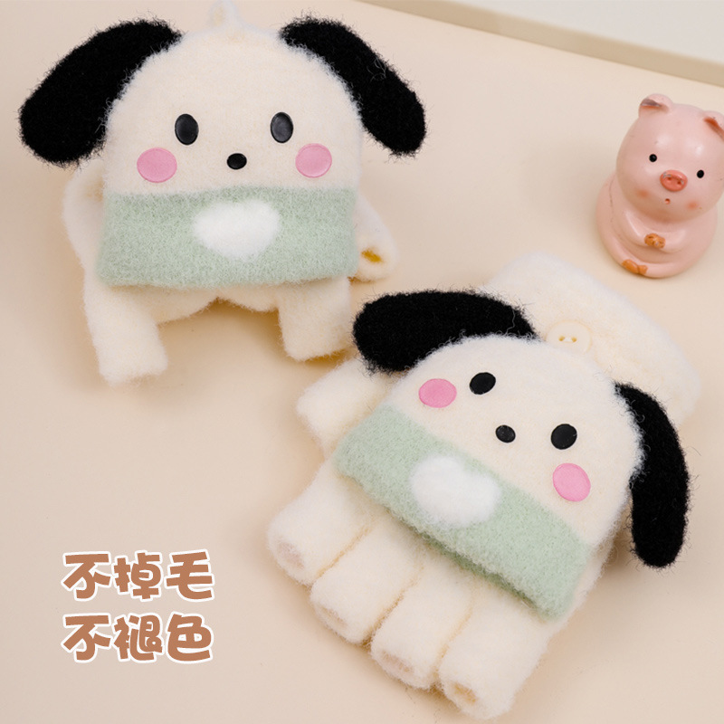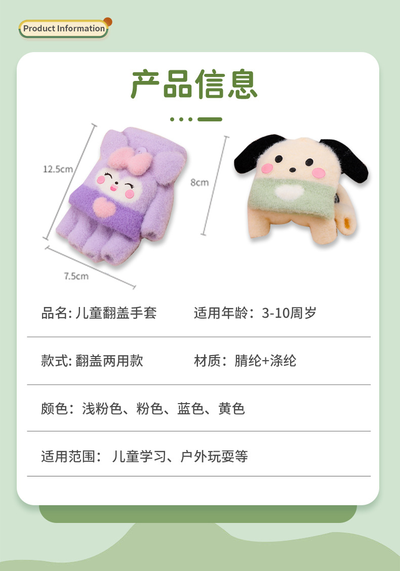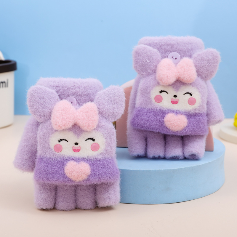 儿童手套冬季女童翻盖可爱俏皮露指卡通小孩加绒防寒保暖百搭半指