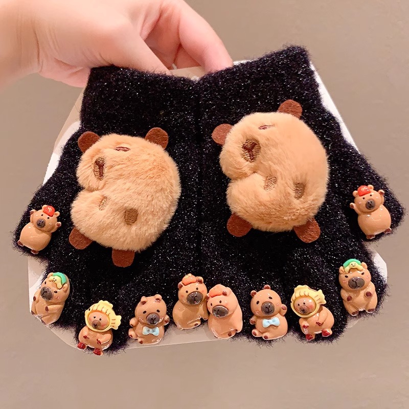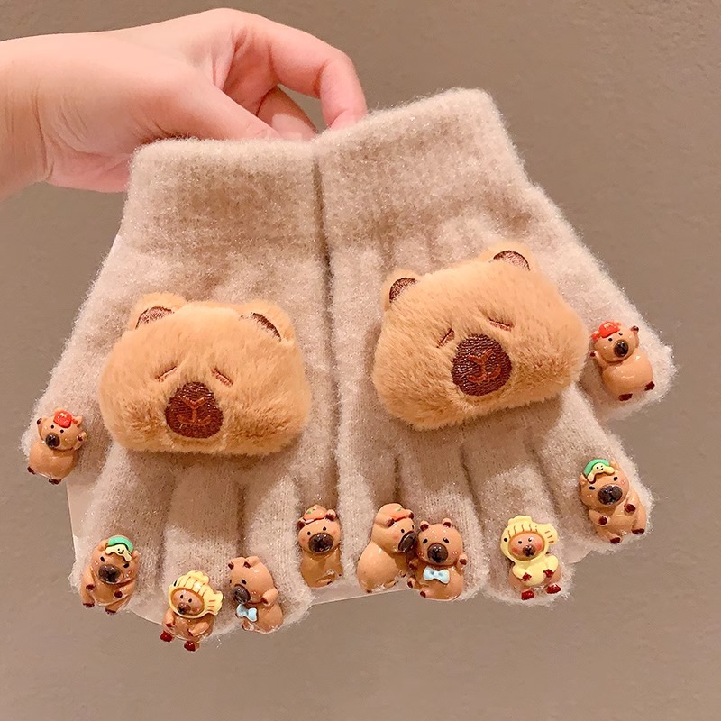 卡皮巴拉儿童手套2024冬季新款女童五指套加绒保暖御寒分指