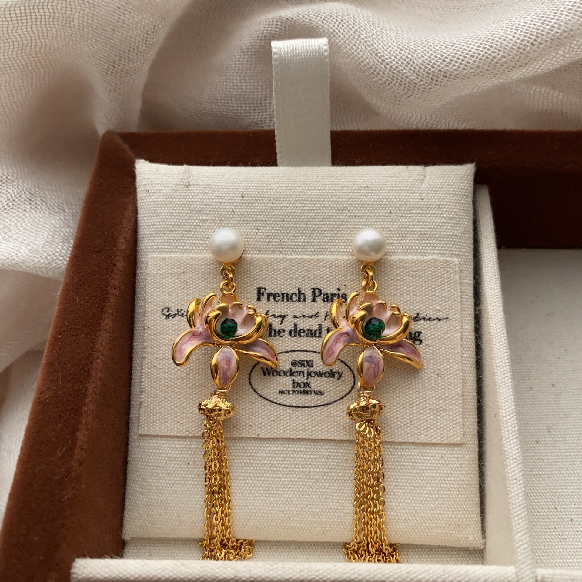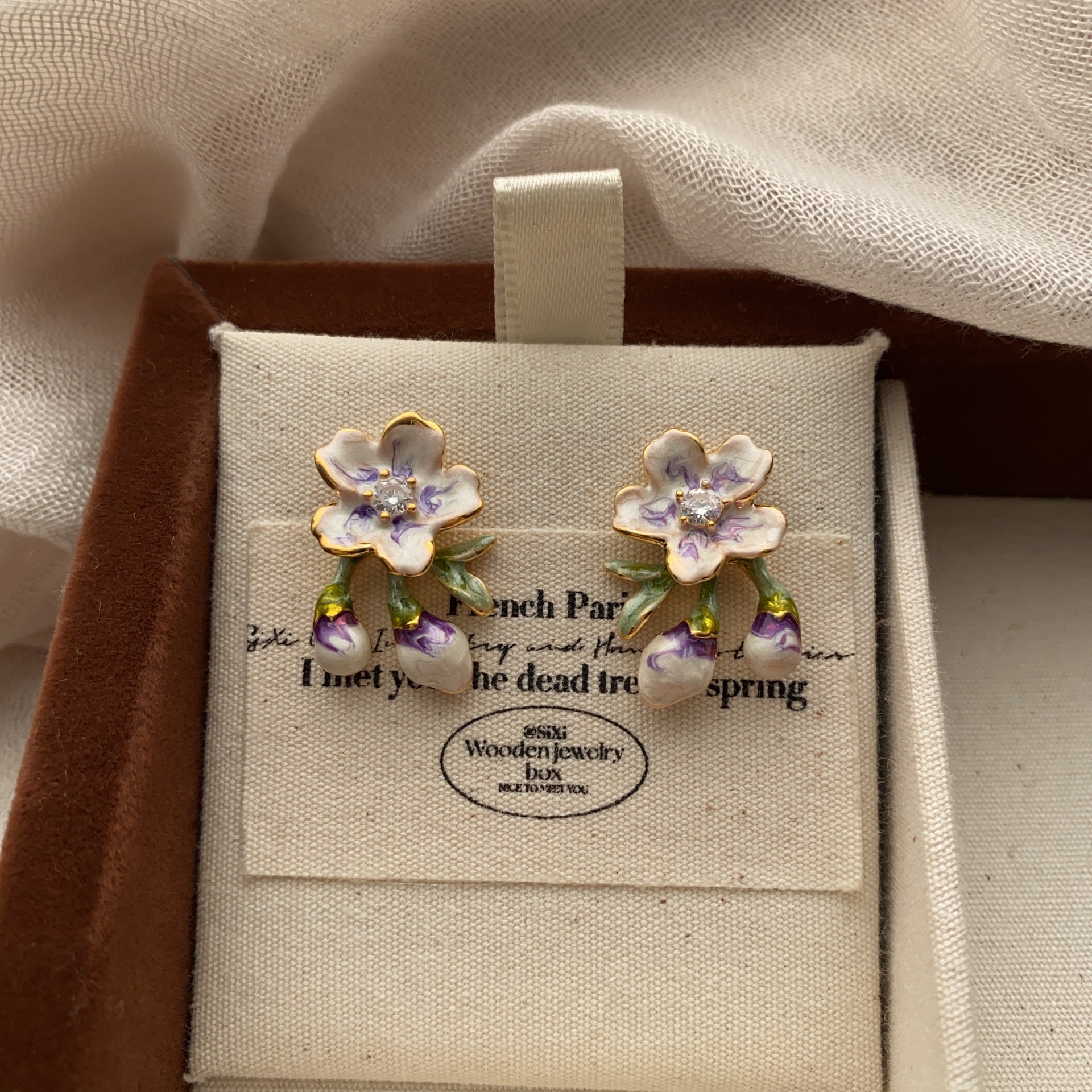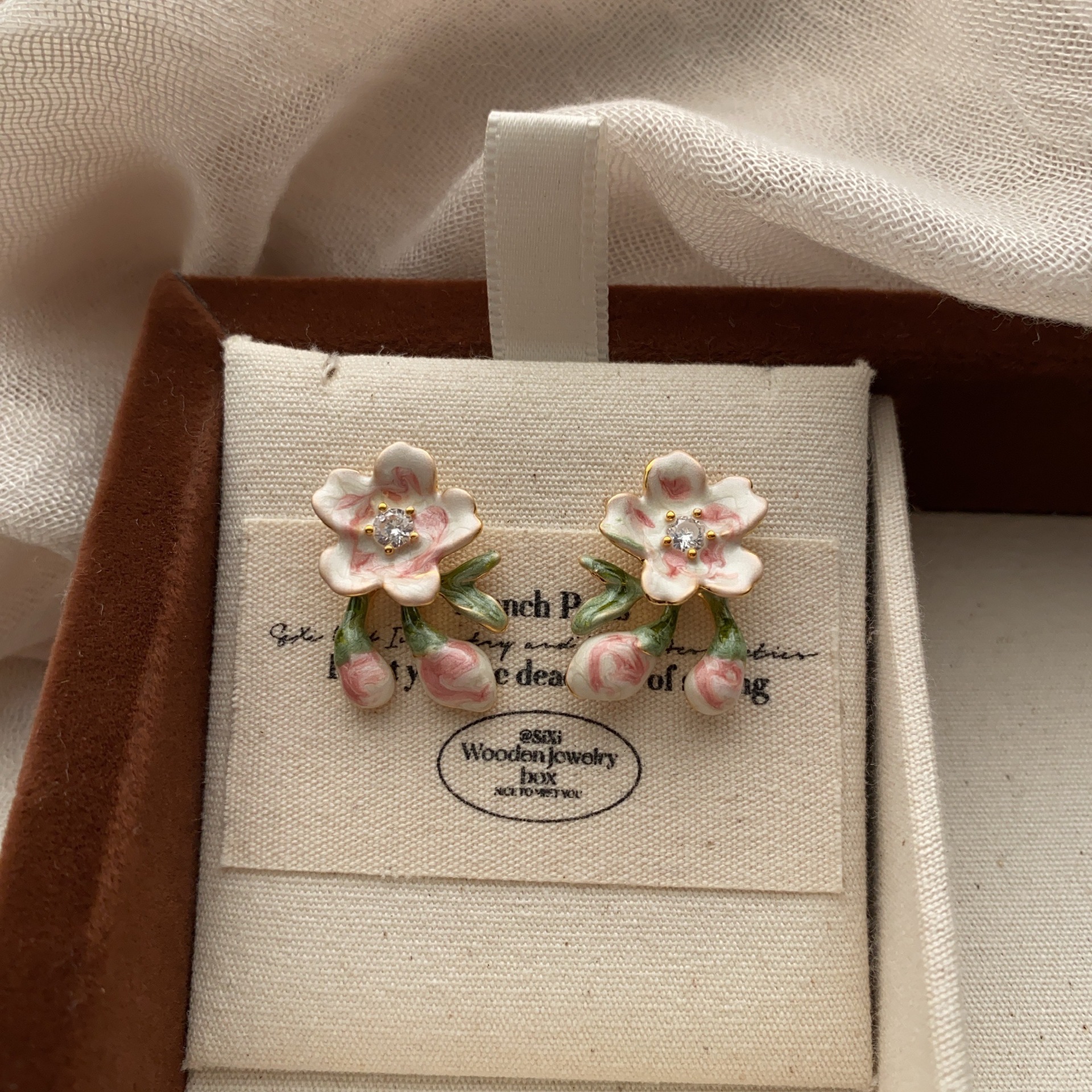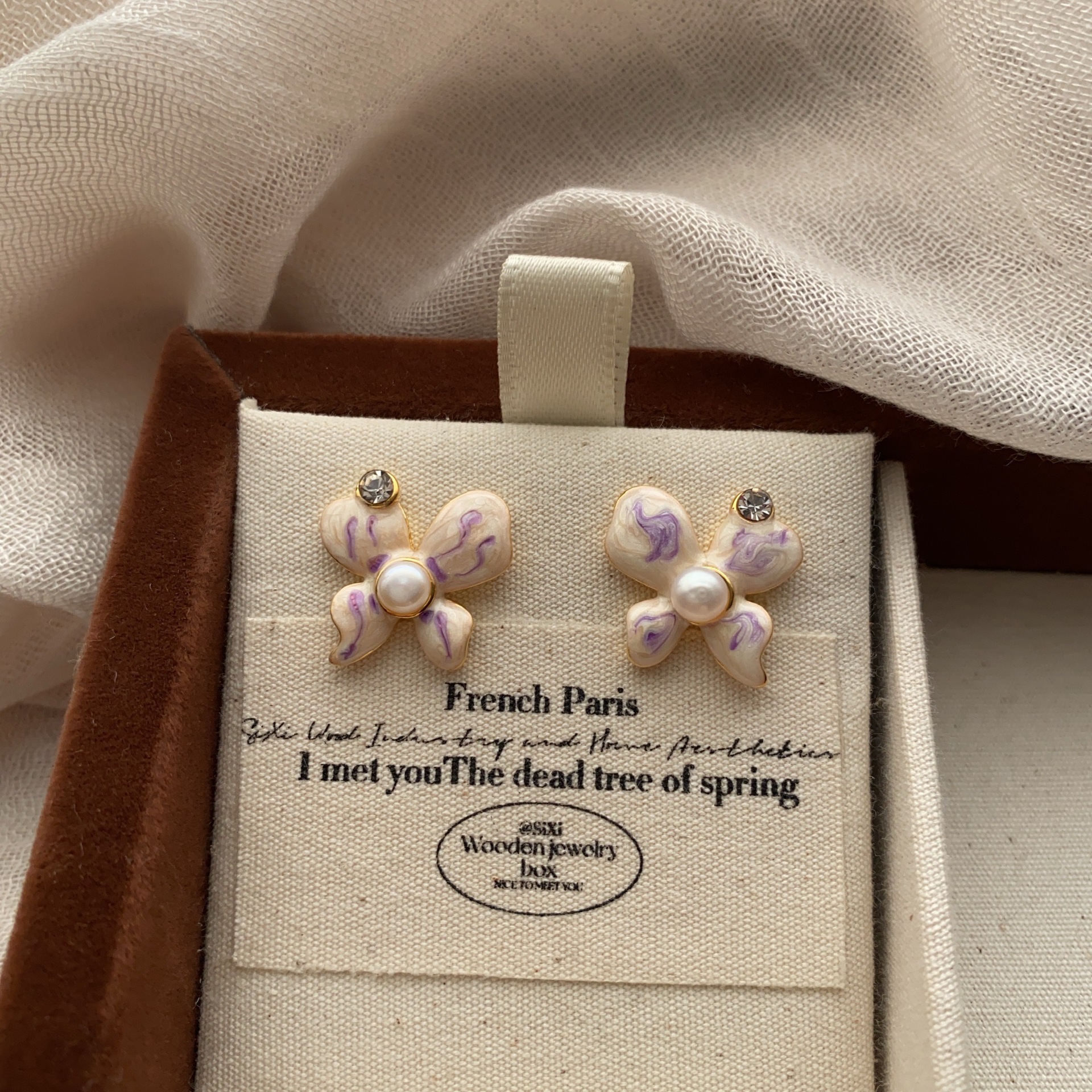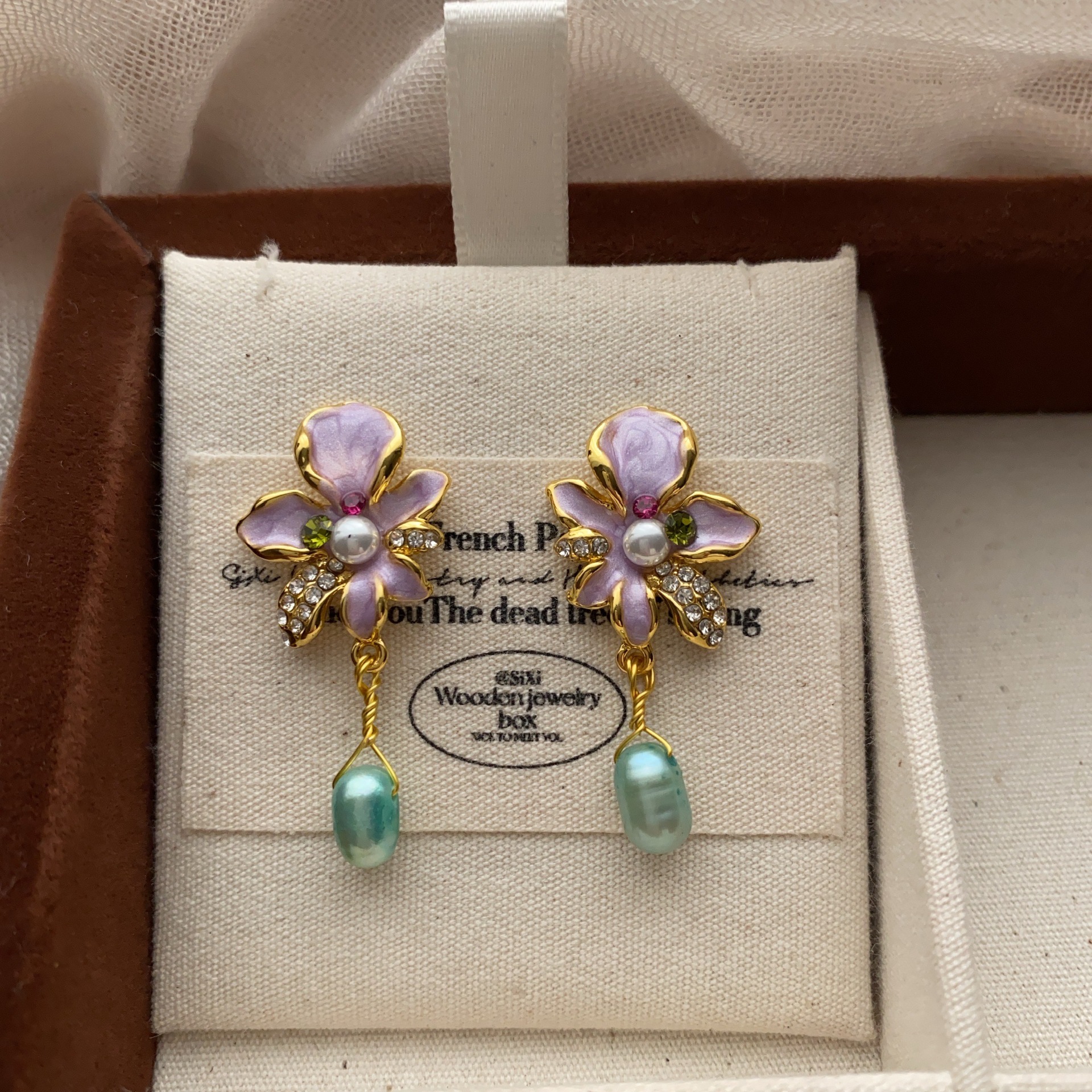 法琅彩超仙耳环耳钉小众设计简约森系蝴蝶精致巴洛克珍珠花朵甜美