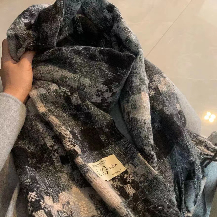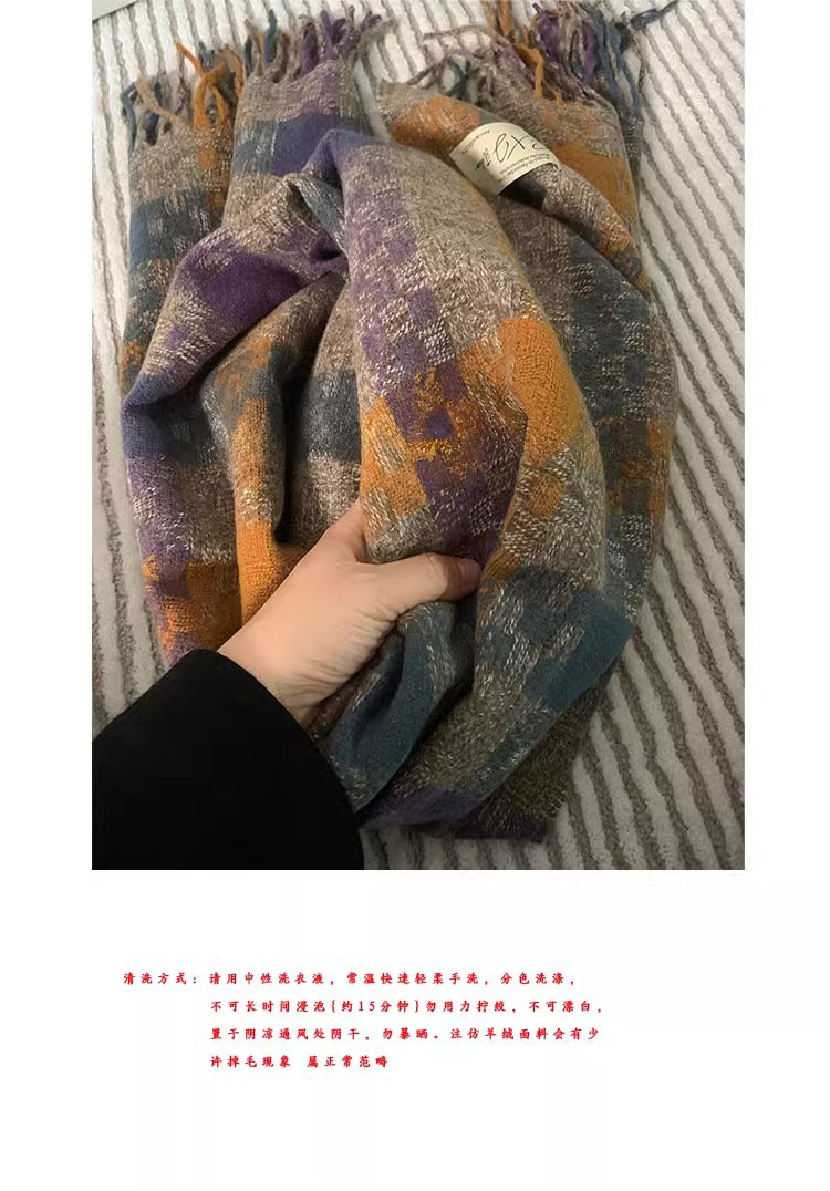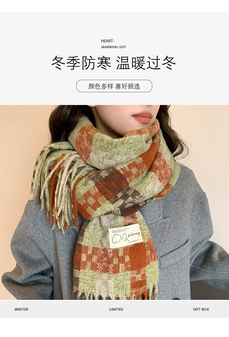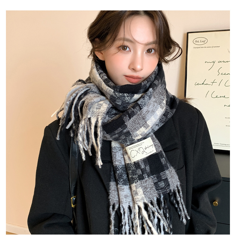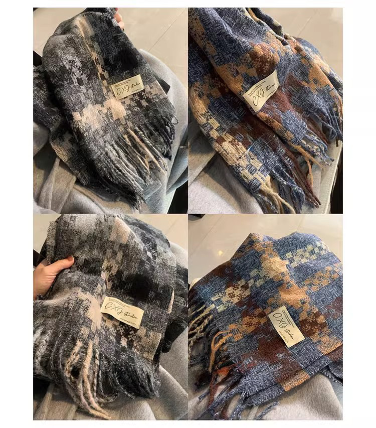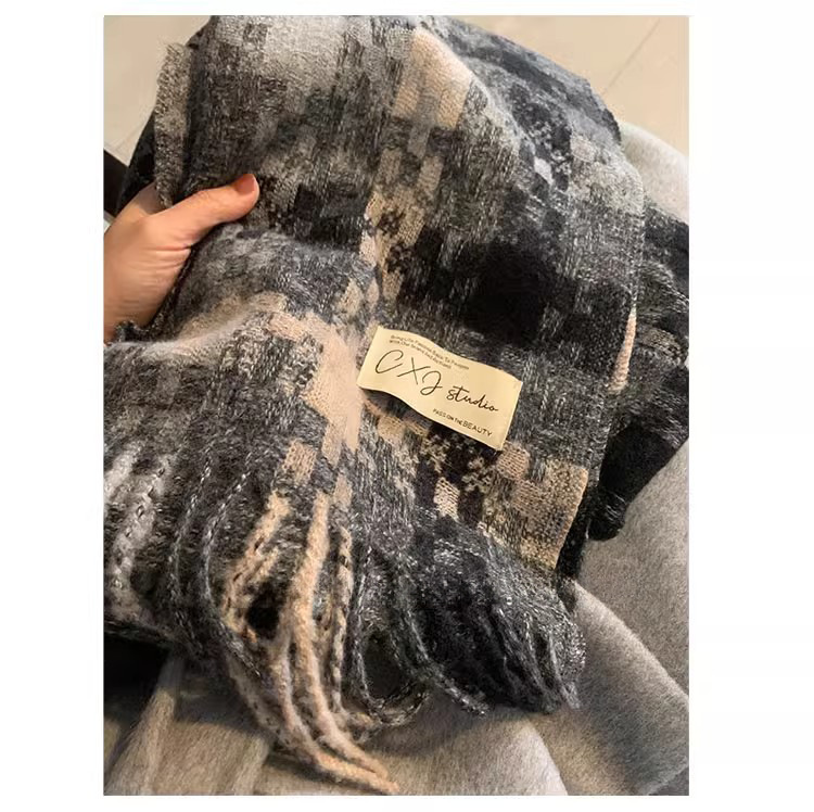 秋冬氛围编织格纹流苏保暖围巾男女情侣加大加厚长款围脖披肩保暖