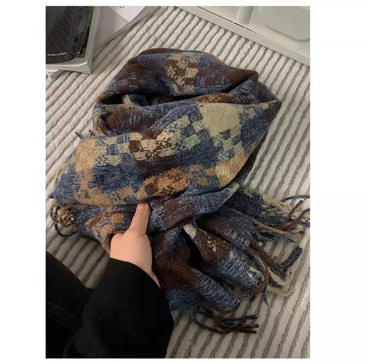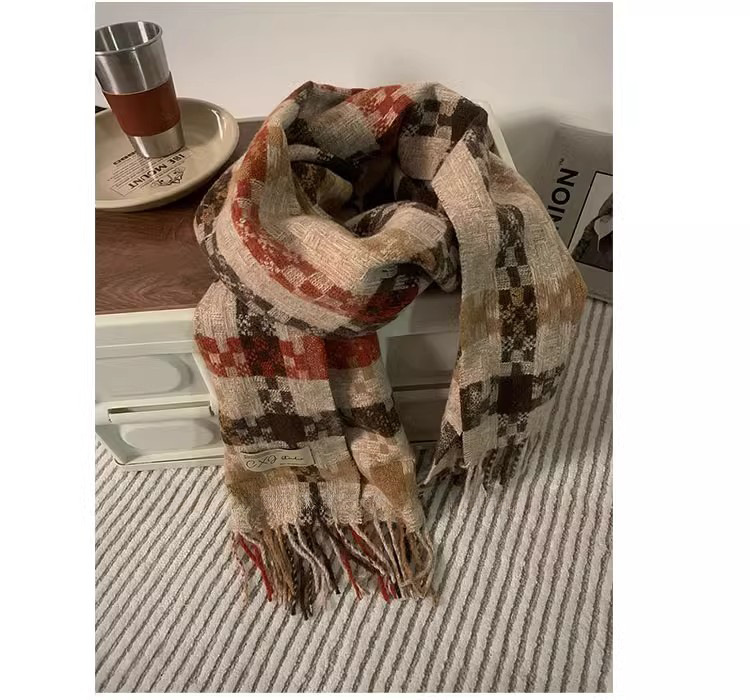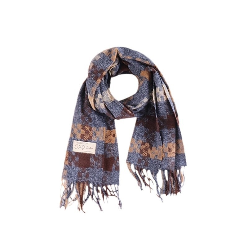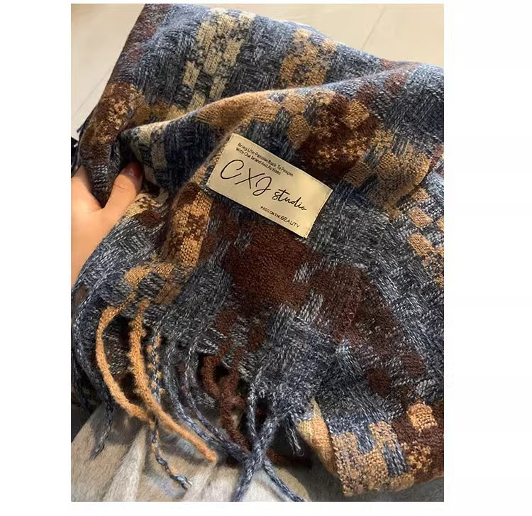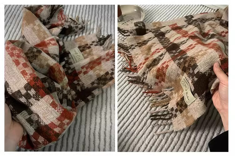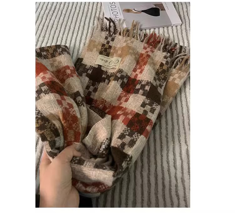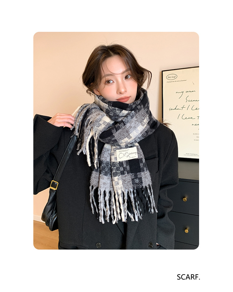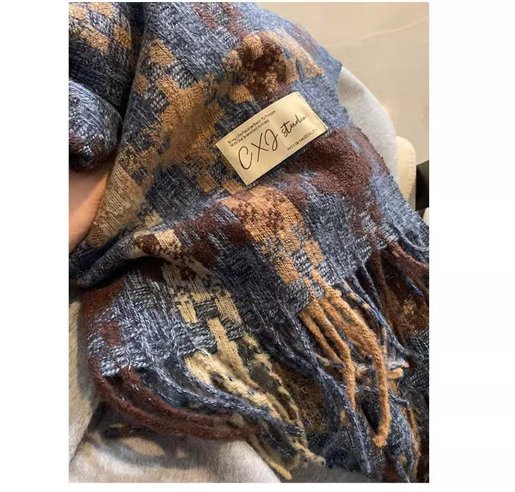 秋冬氛围编织格纹流苏保暖围巾男女情侣加大加厚长款围脖披肩保暖