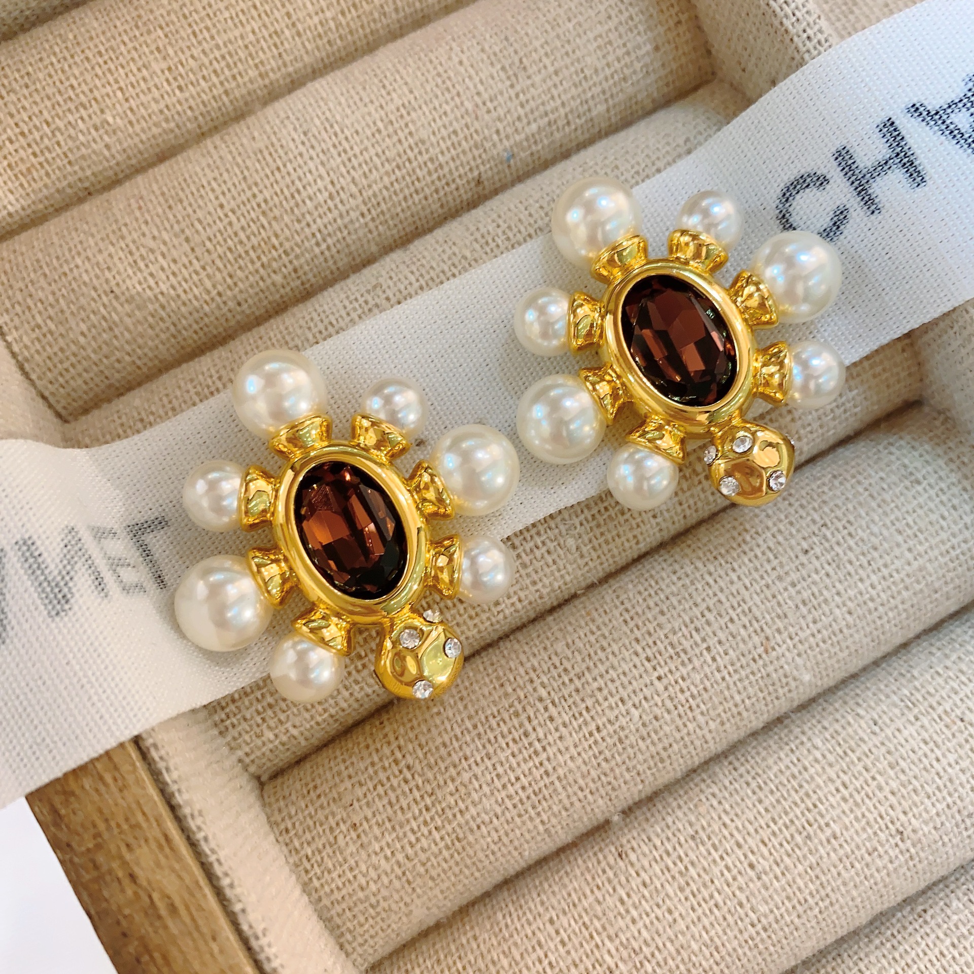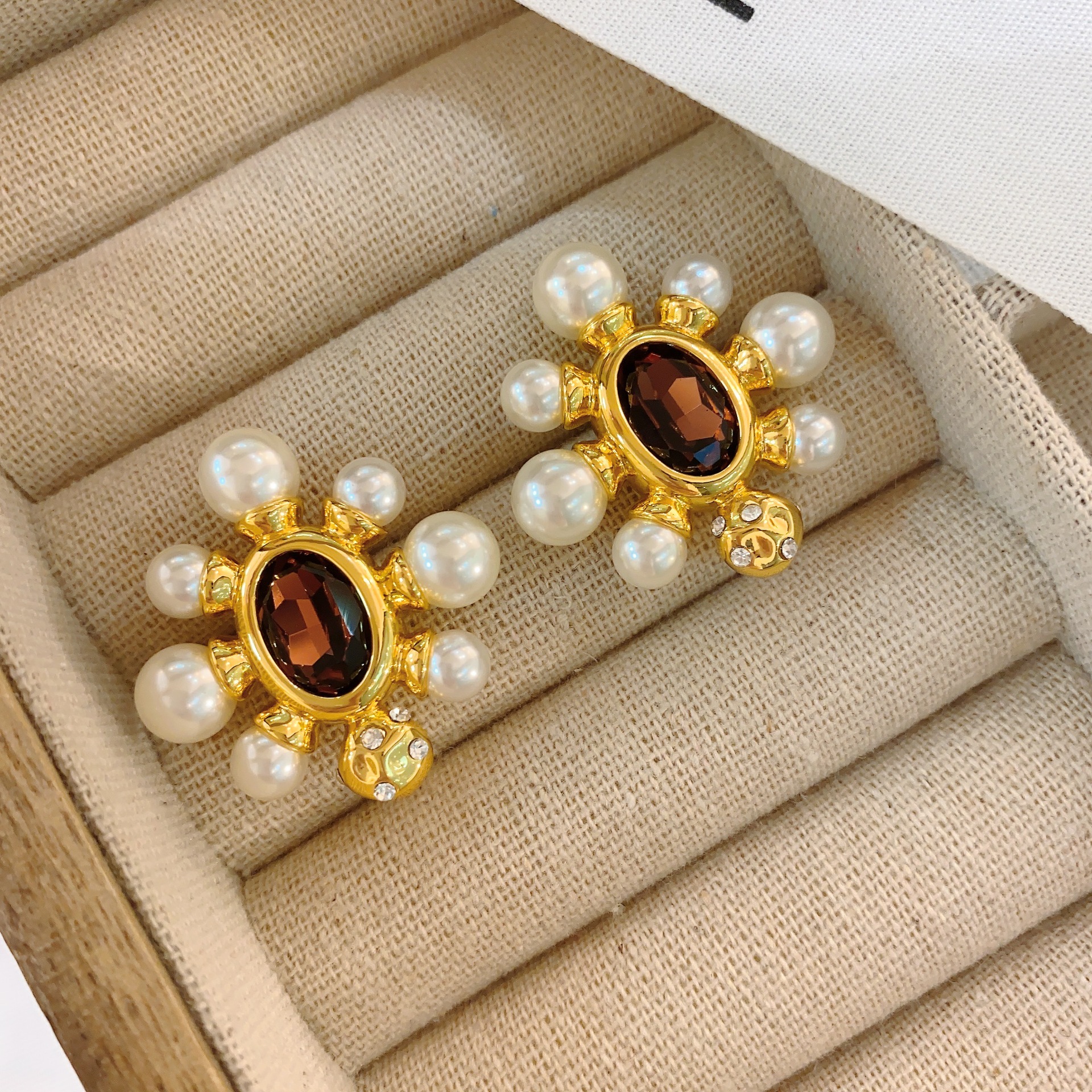 法式复古◇气质花朵珍珠耳钉女轻奢小众设计感高级独特耳饰耳环潮