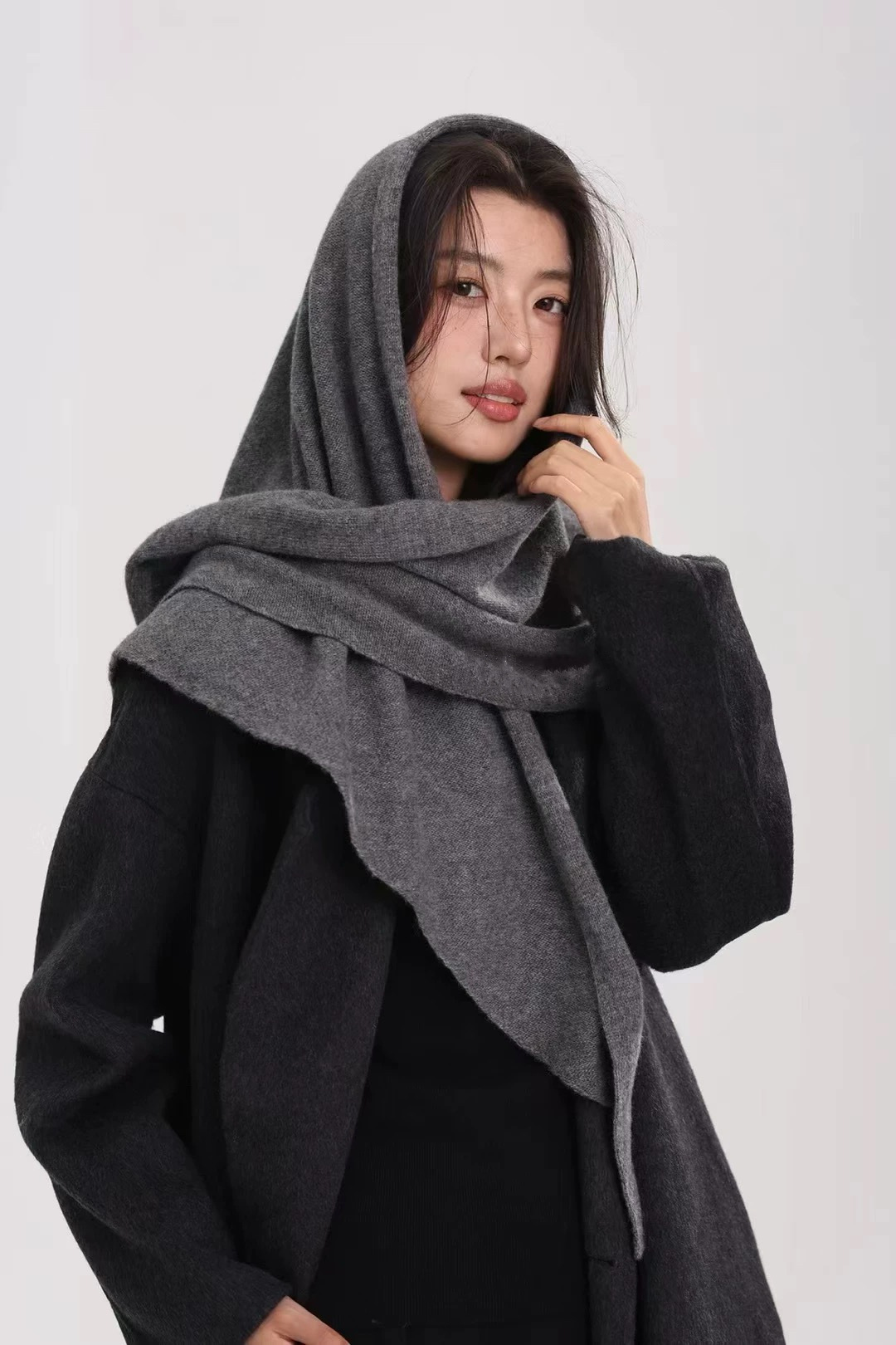 澳洲100%全羊毛大披肩女秋冬季凹造型保暖护肩围巾针织三角巾批发