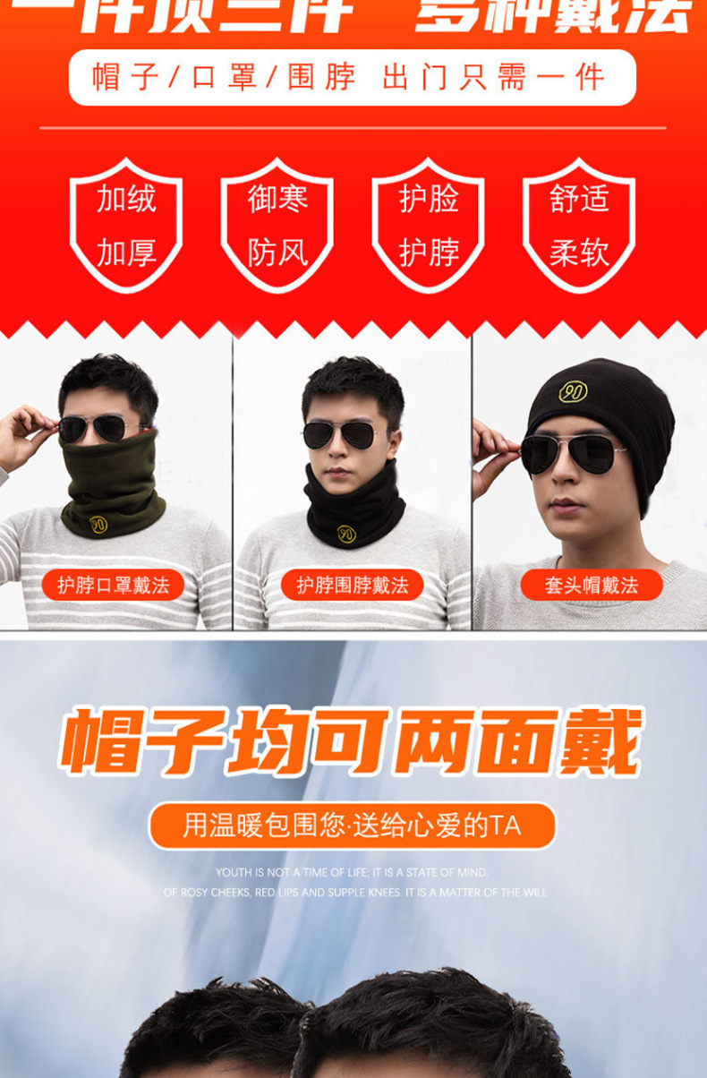 围脖男士韩版潮护颈椎保暖套头围巾女秋冬季骑行防风加绒加厚脖套