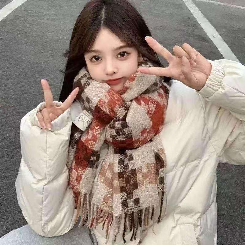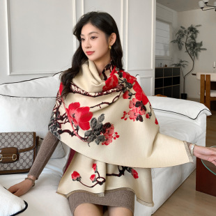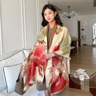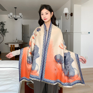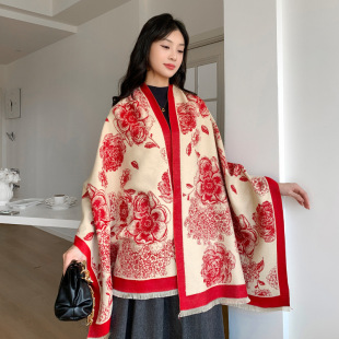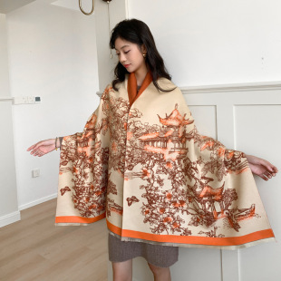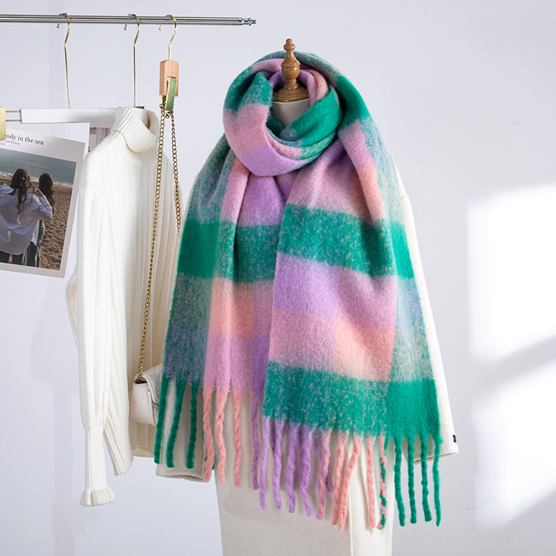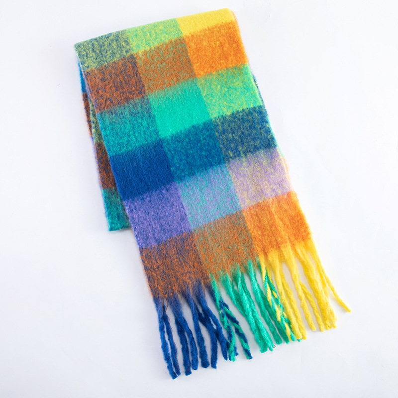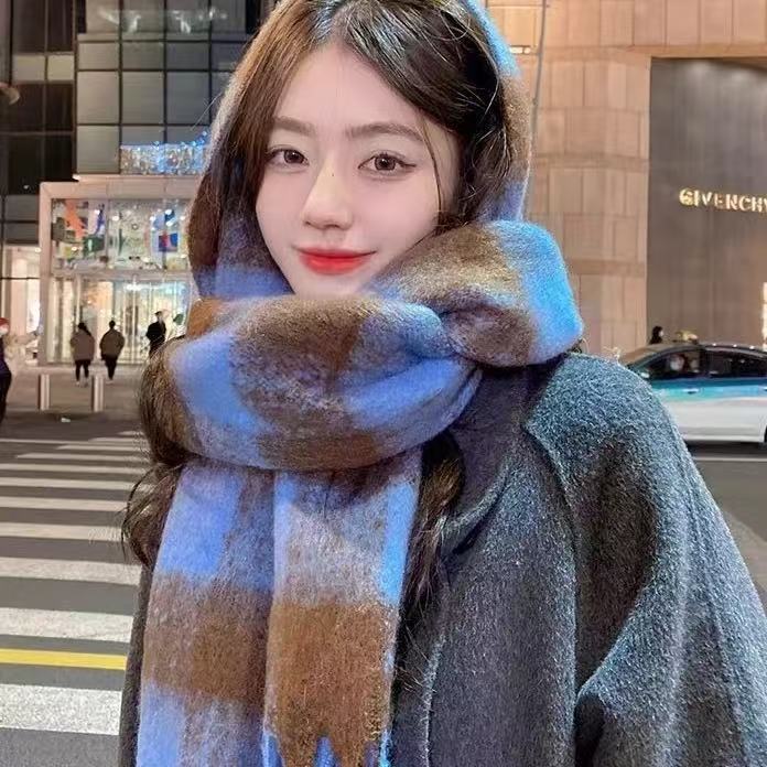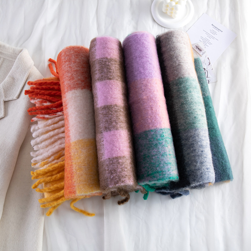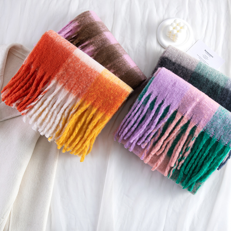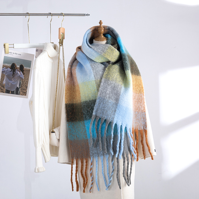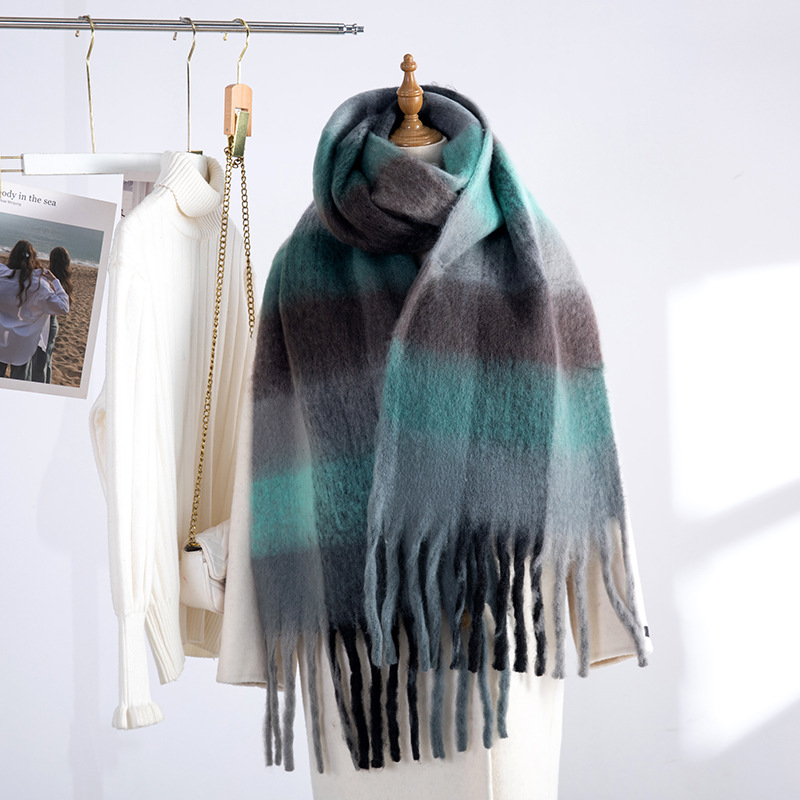 跨境新款仿马海毛围巾女欧美风长须秋冬保暧披肩围脖外贸出口高货
