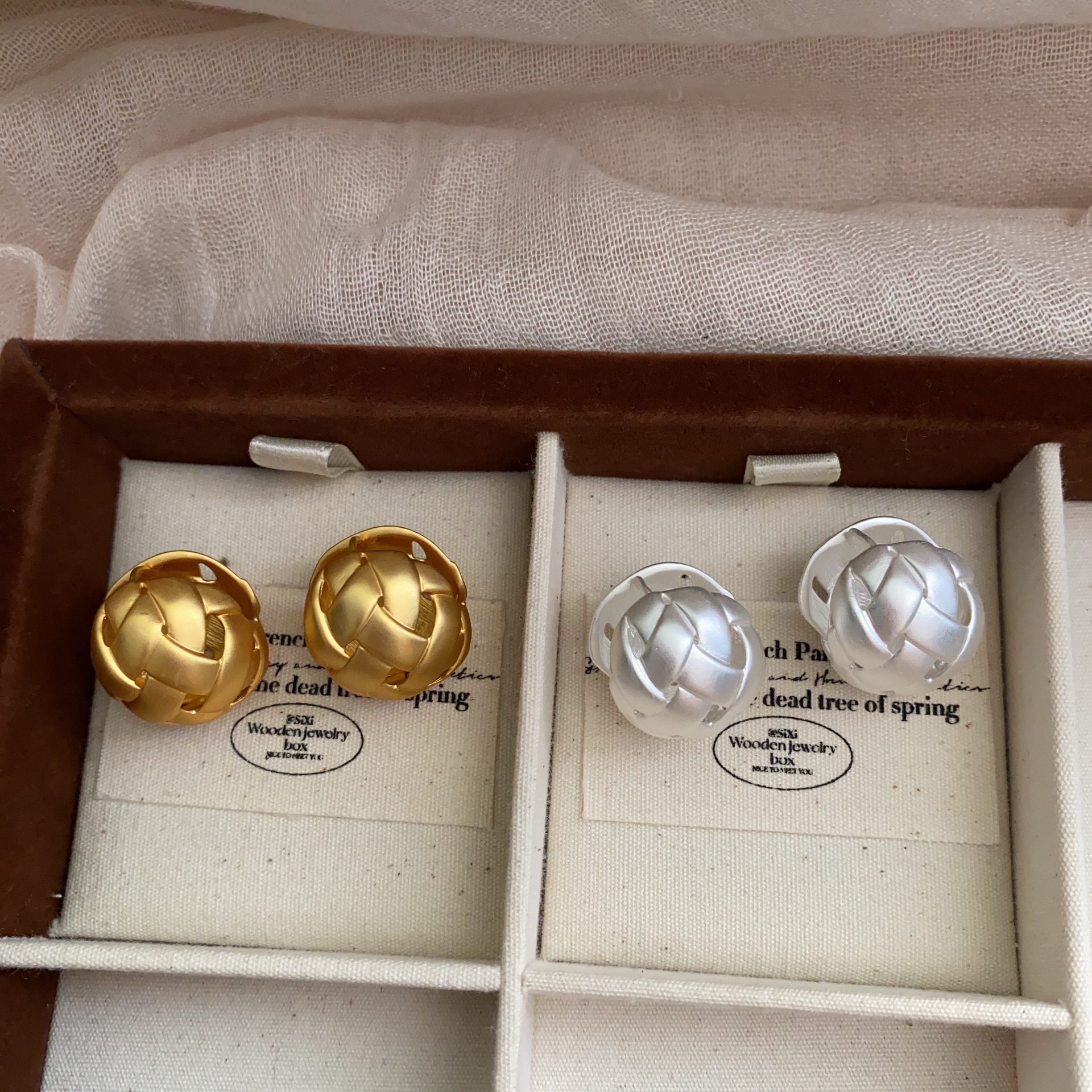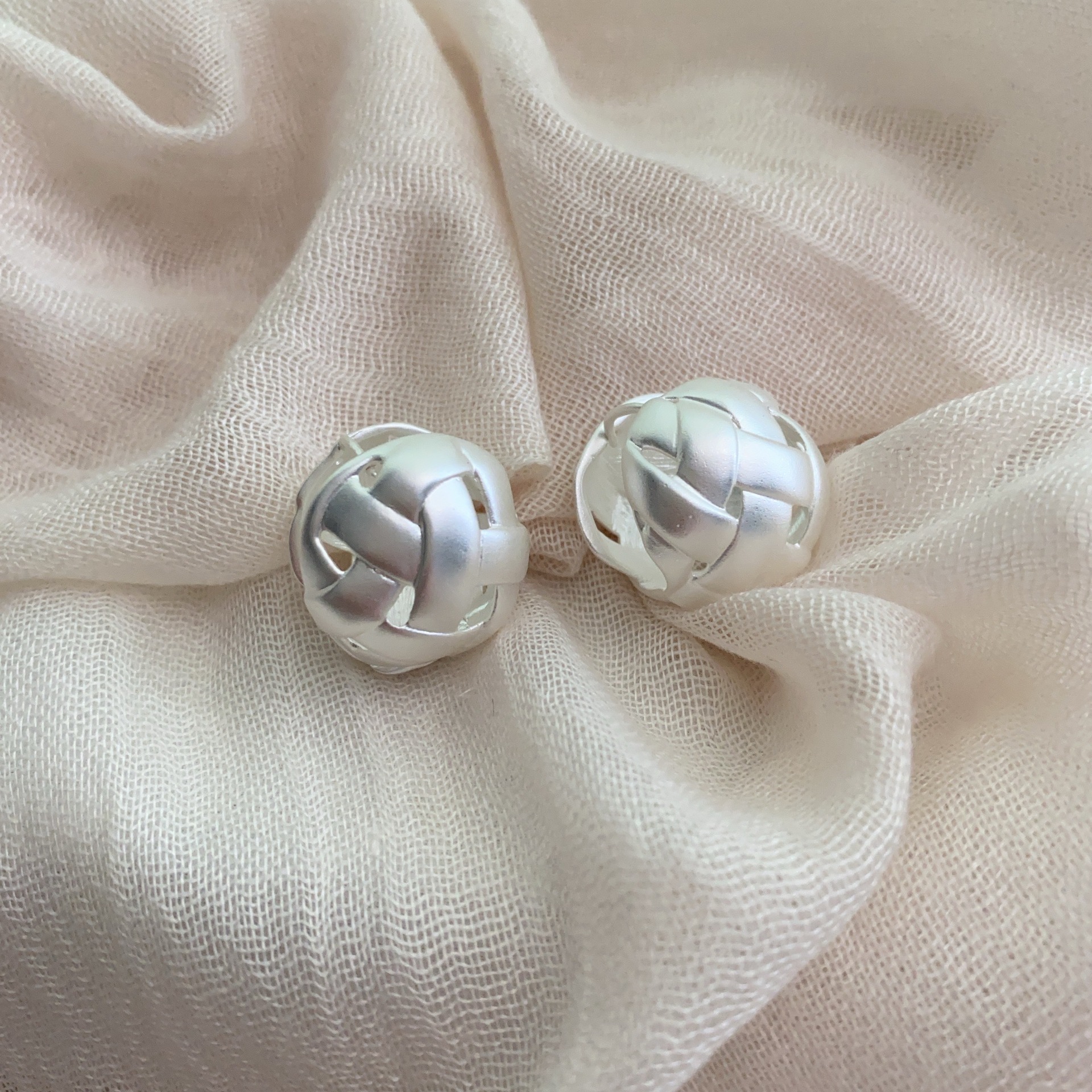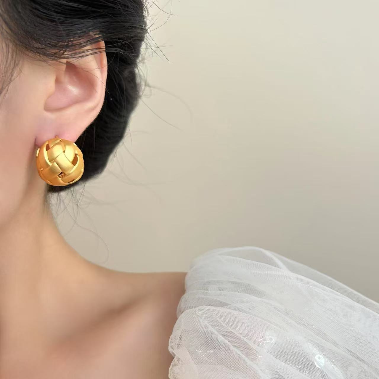 欧美时尚简约冷淡风立体编织耳环精致气质小众高级感球状耳钉耳饰
