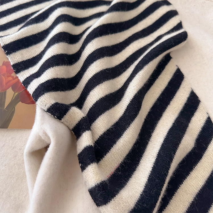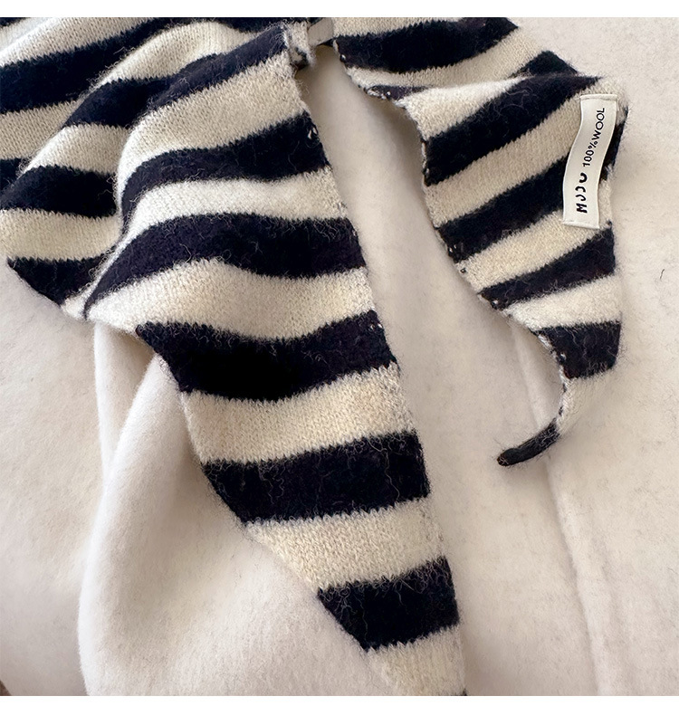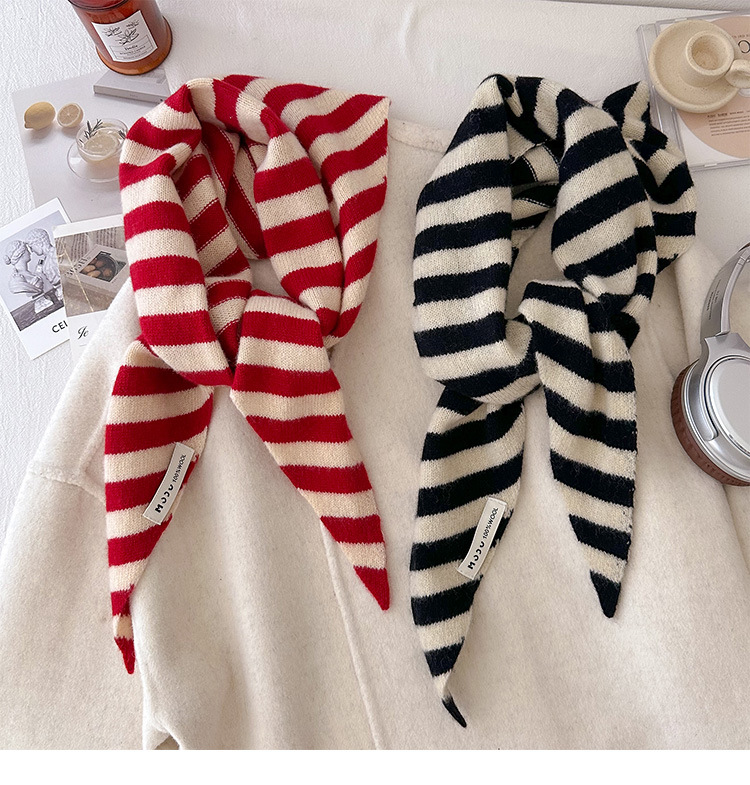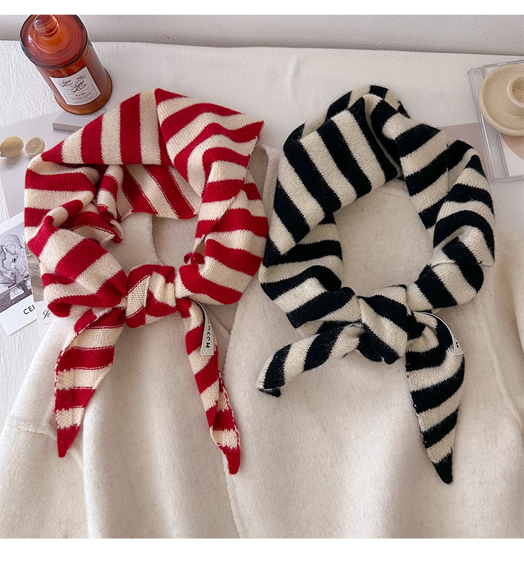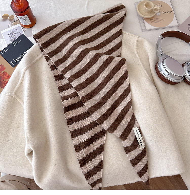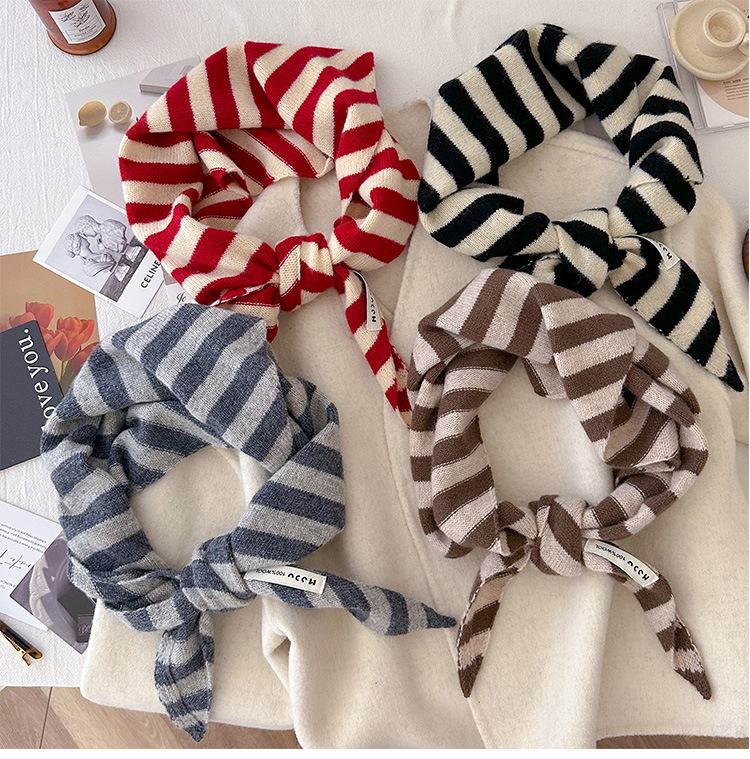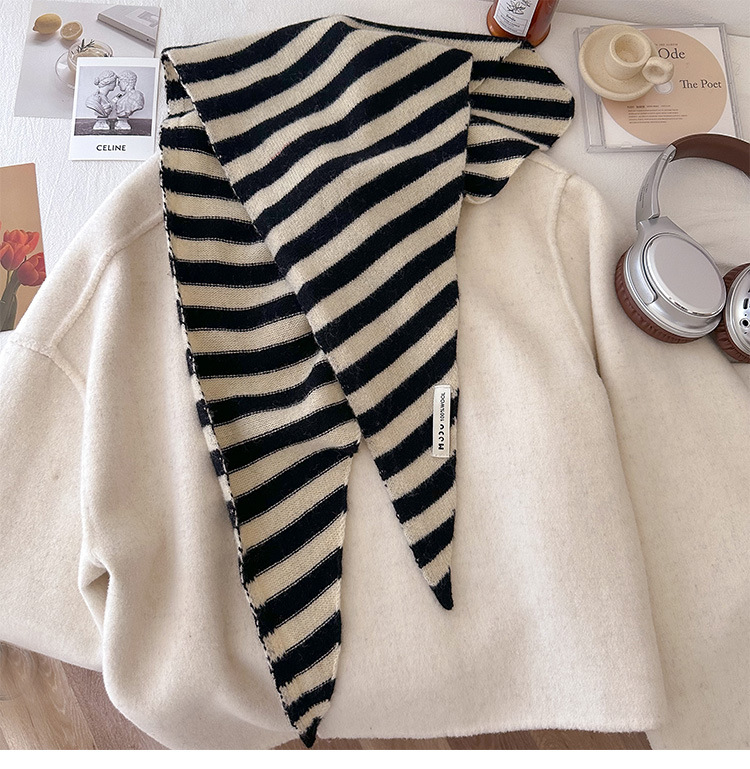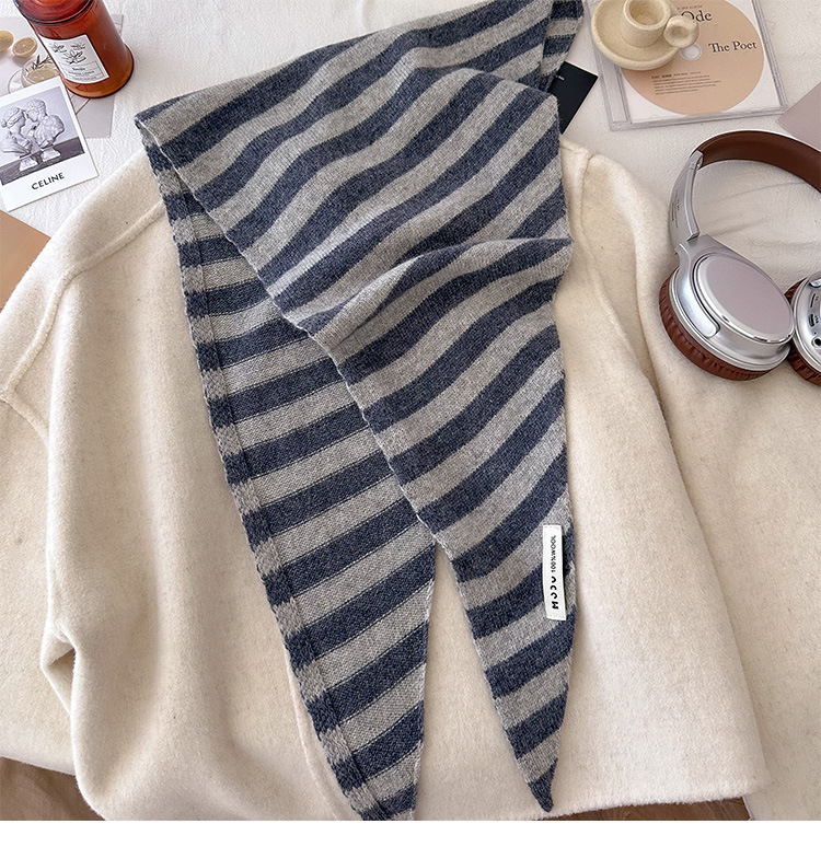 100%澳洲羊毛三角巾条纹披肩头巾针织女韩系多功能小围脖领巾