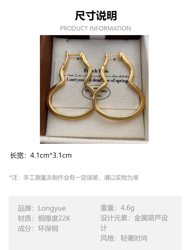简约时尚葫芦耳环耳扣轻着高级感百搭个性冷淡风小众设计精致耳饰