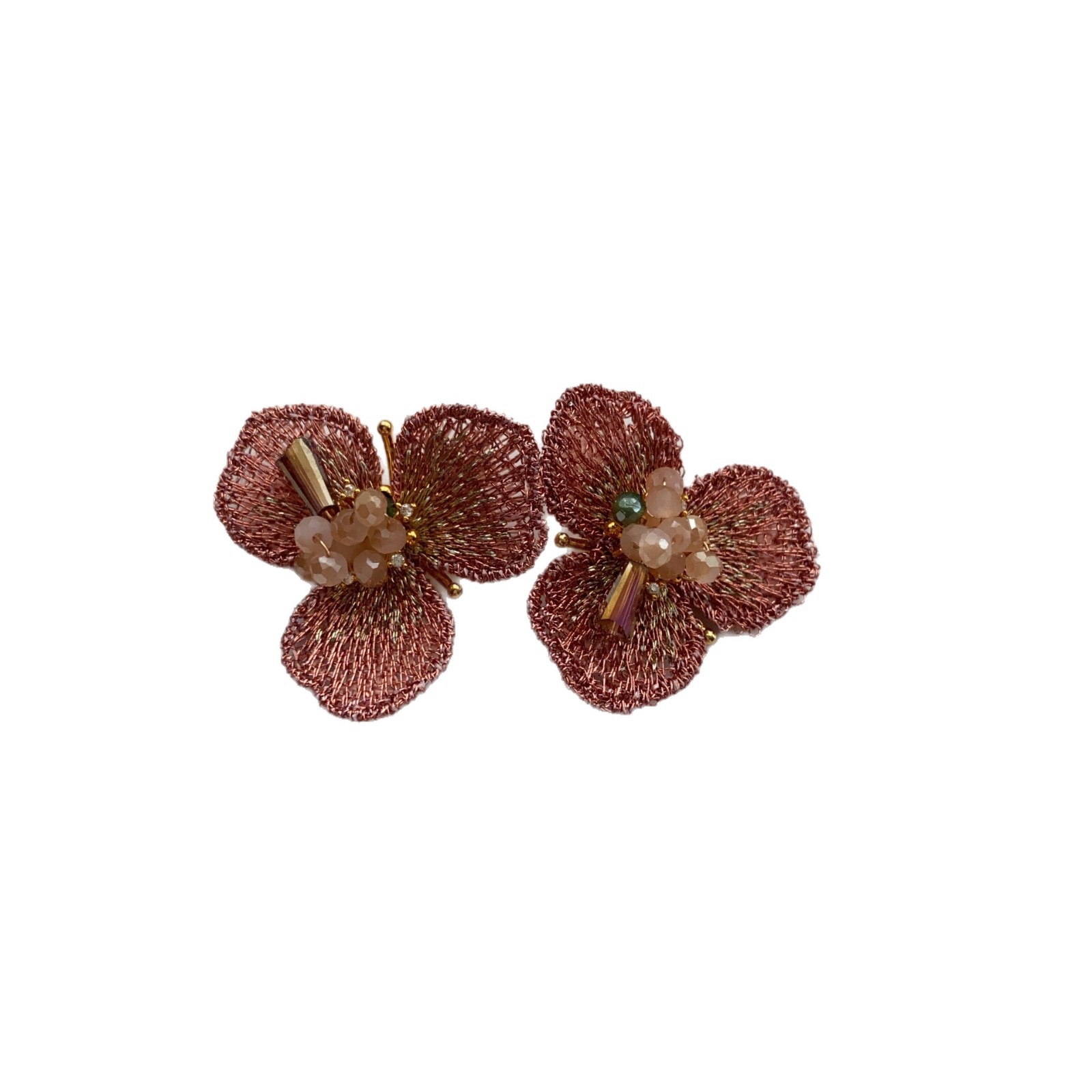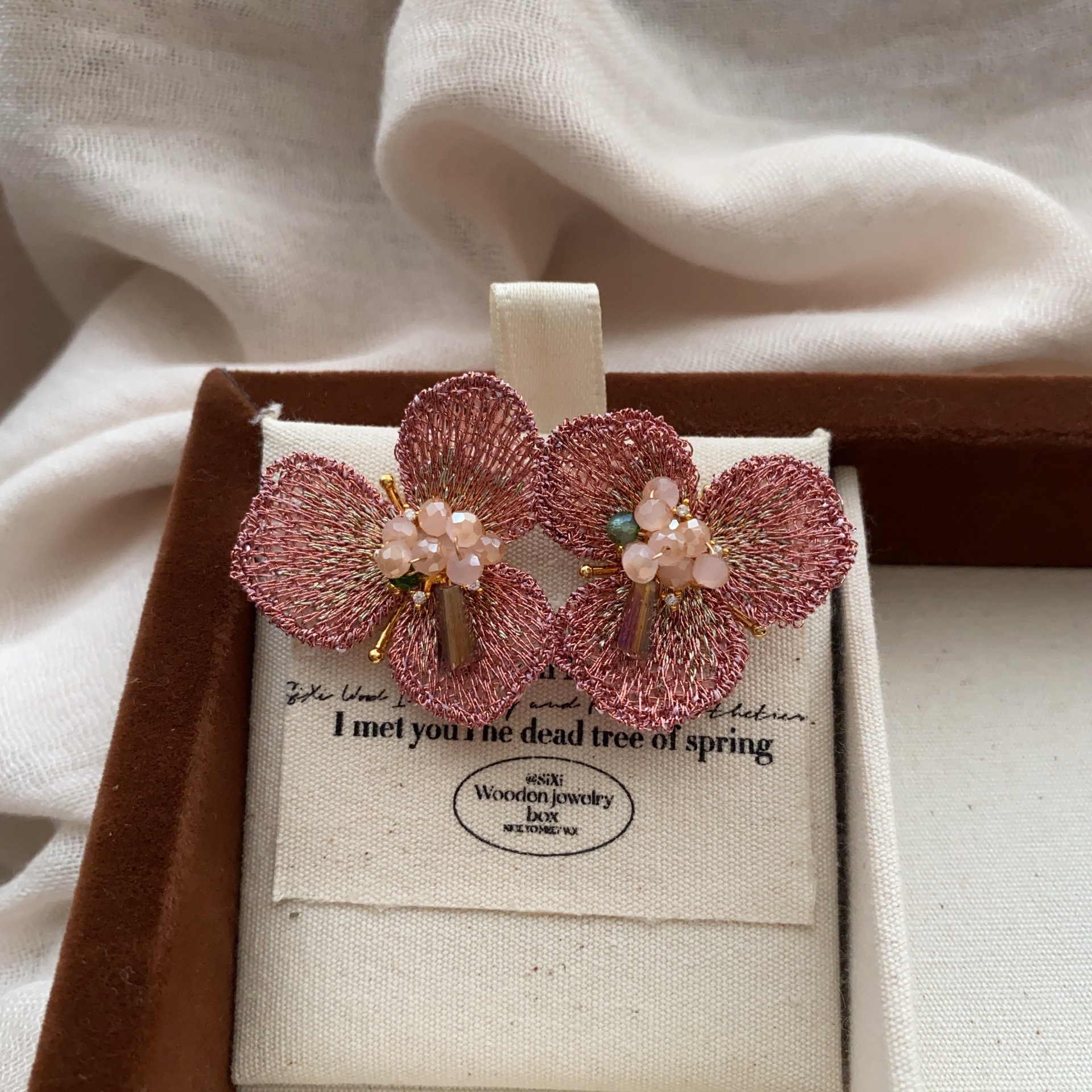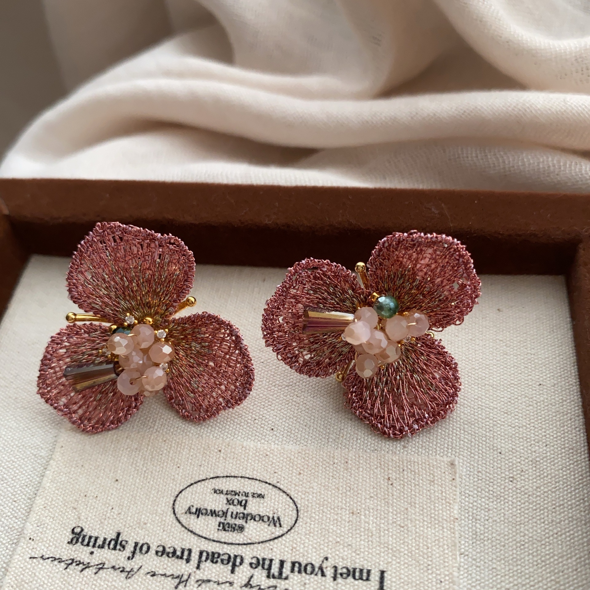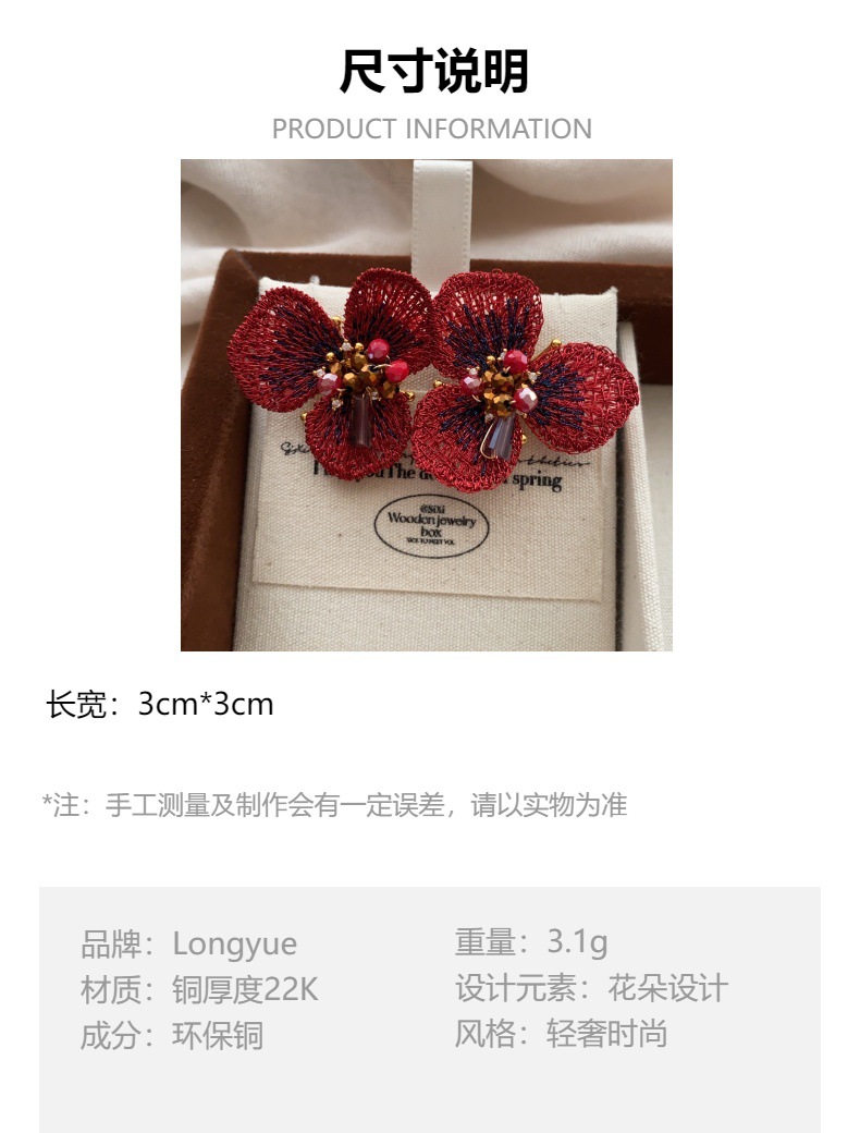 红色渐变花朵耳钉耳环手工钩花精致高级小众时髦新款清透气质耳饰