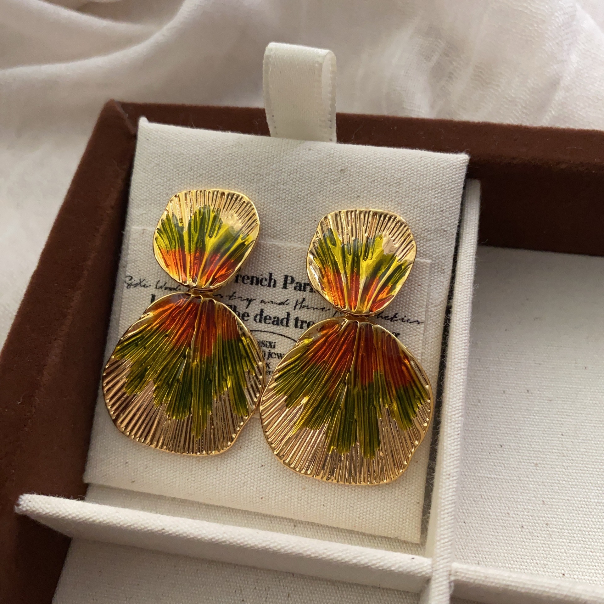 欧美金色几何复古夸张女耳饰小众设计高级金属百搭冷淡风气质耳环