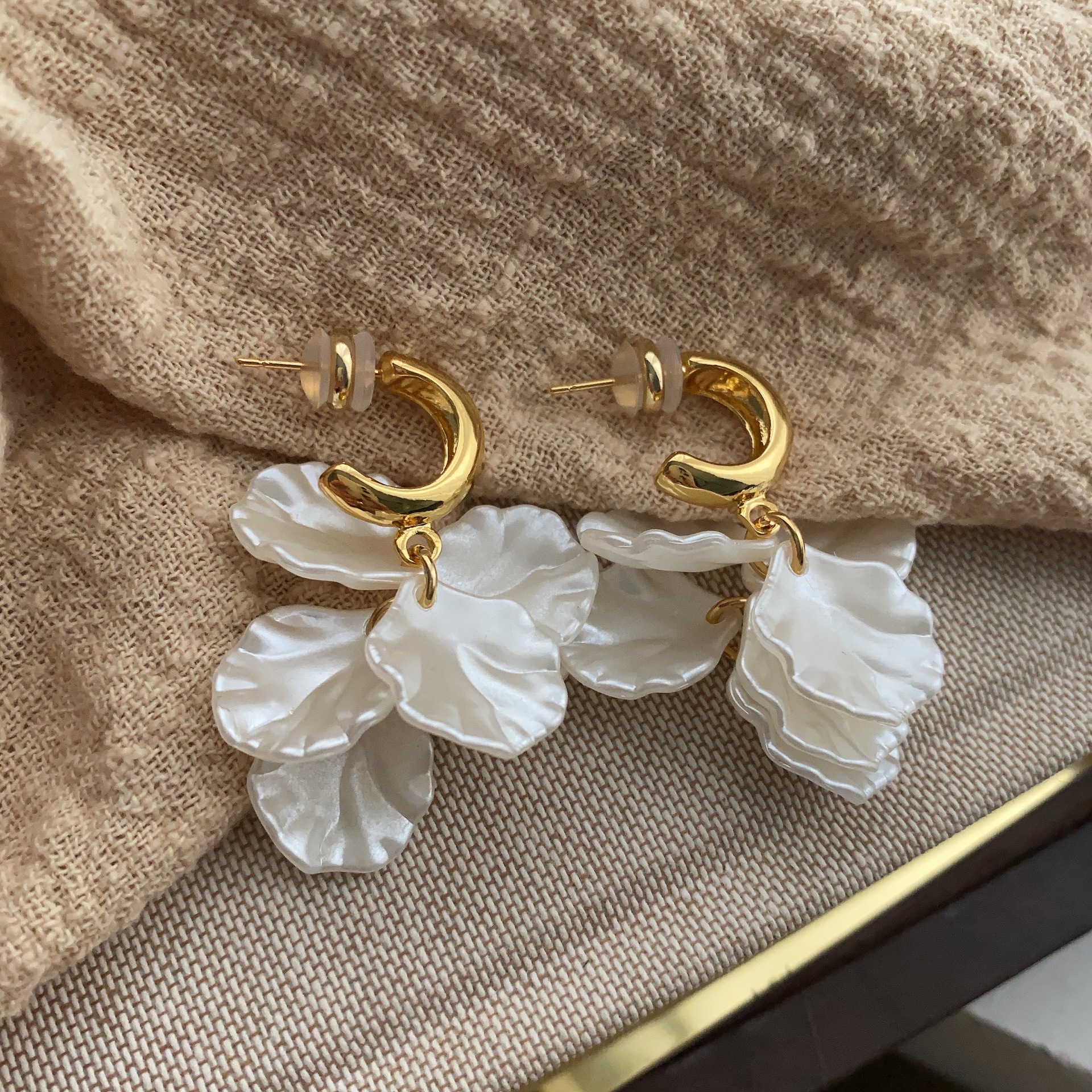 法式风超仙甜美韩系耳精致月光珍珠贝花朵气质流苏耳环小香风小众