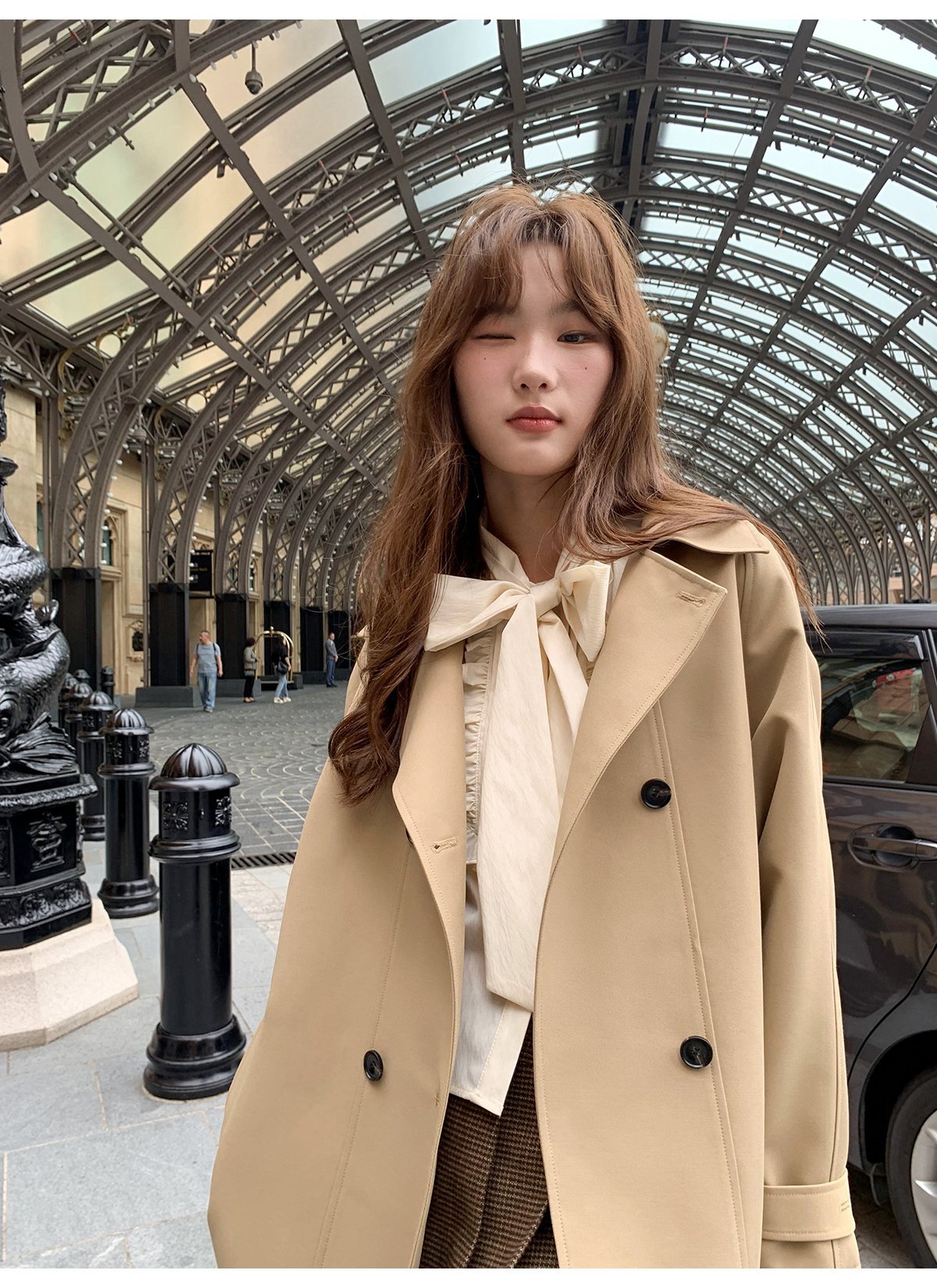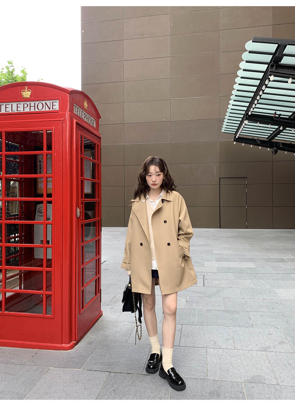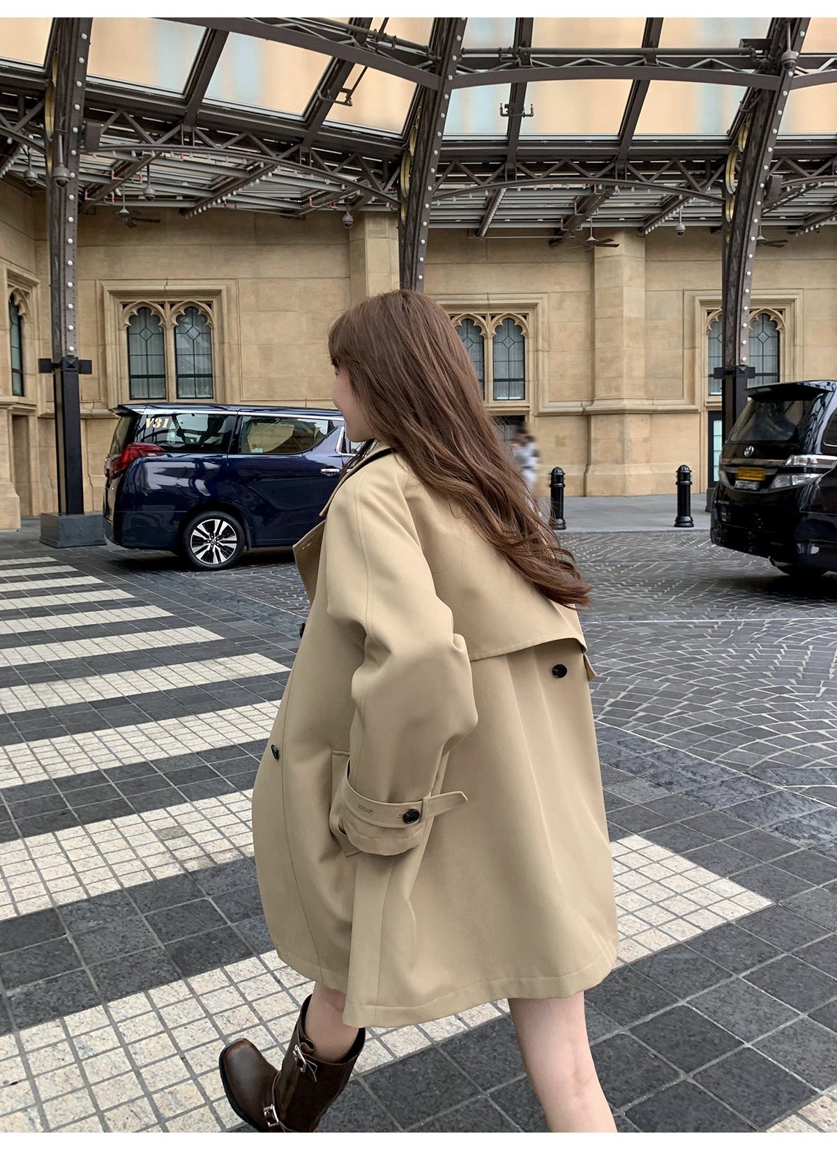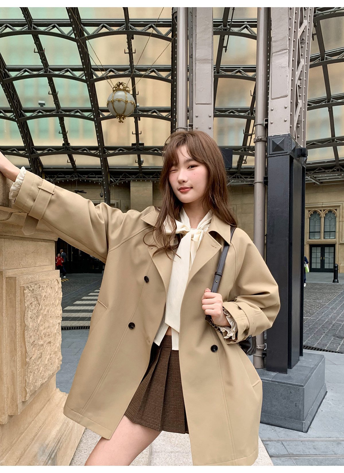 双排扣插肩袖宽松风衣女春季2025新款小个子中长款外套