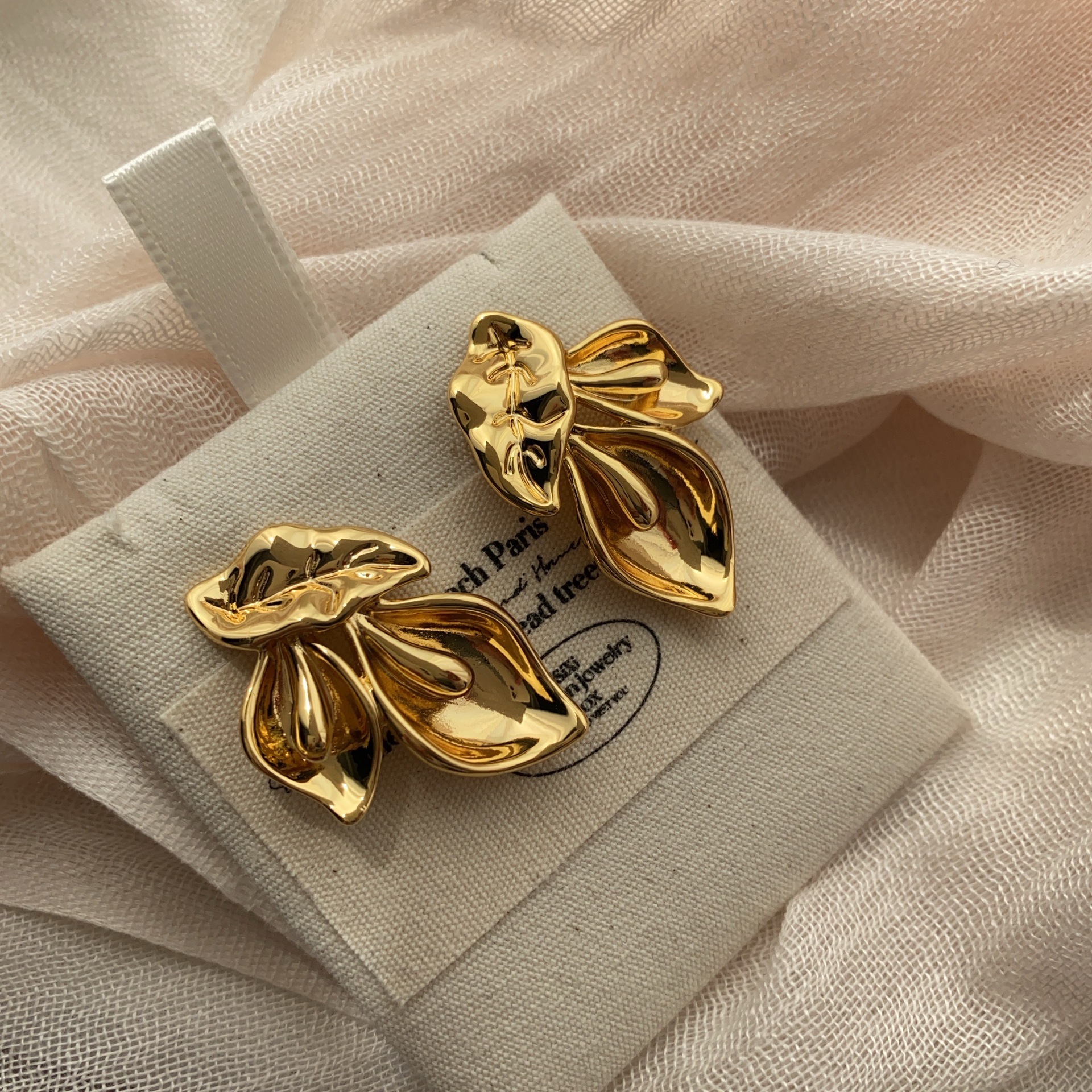 法式树叶花瓣小众欧美法式耳环时尚个性不规则轻奢精致高级感耳钉