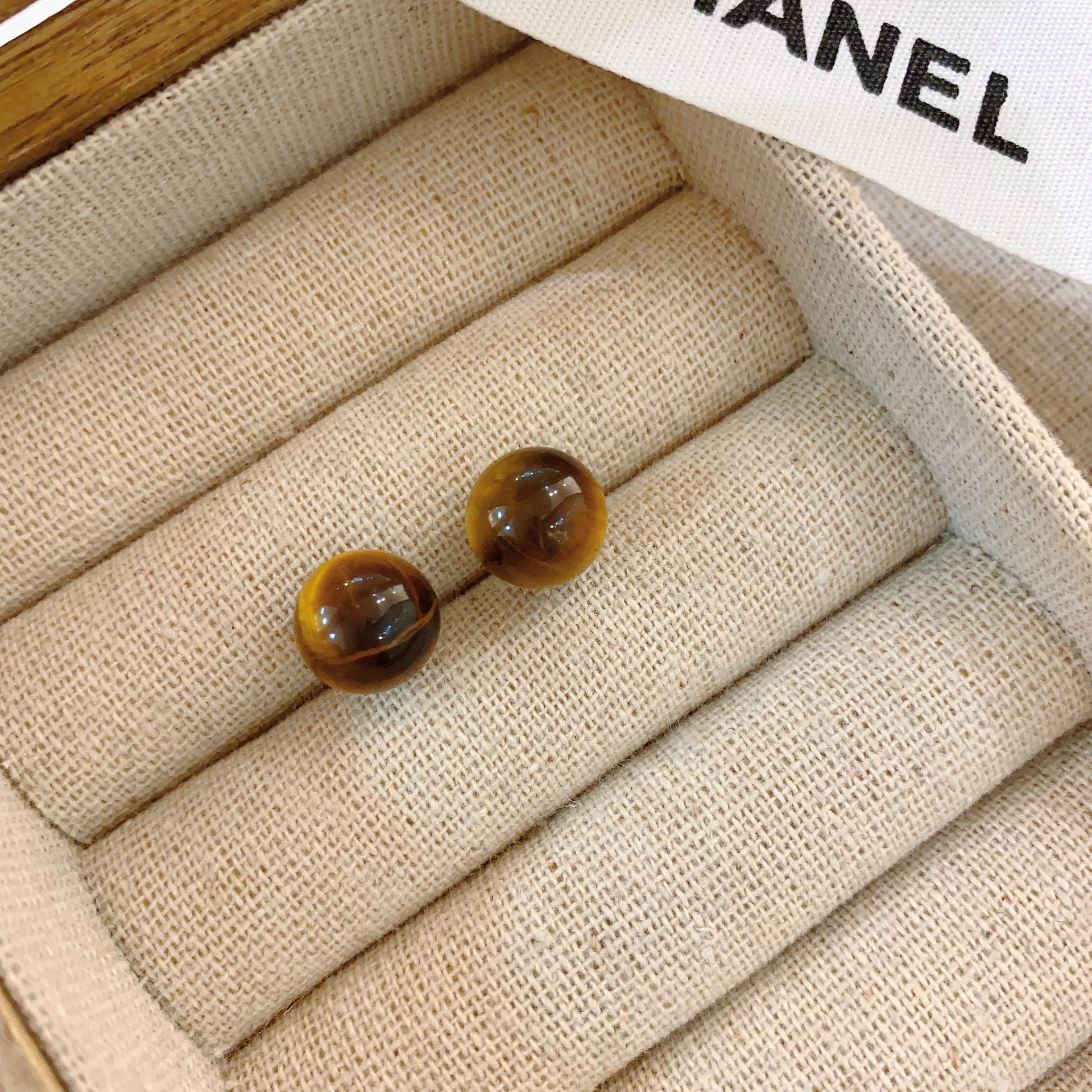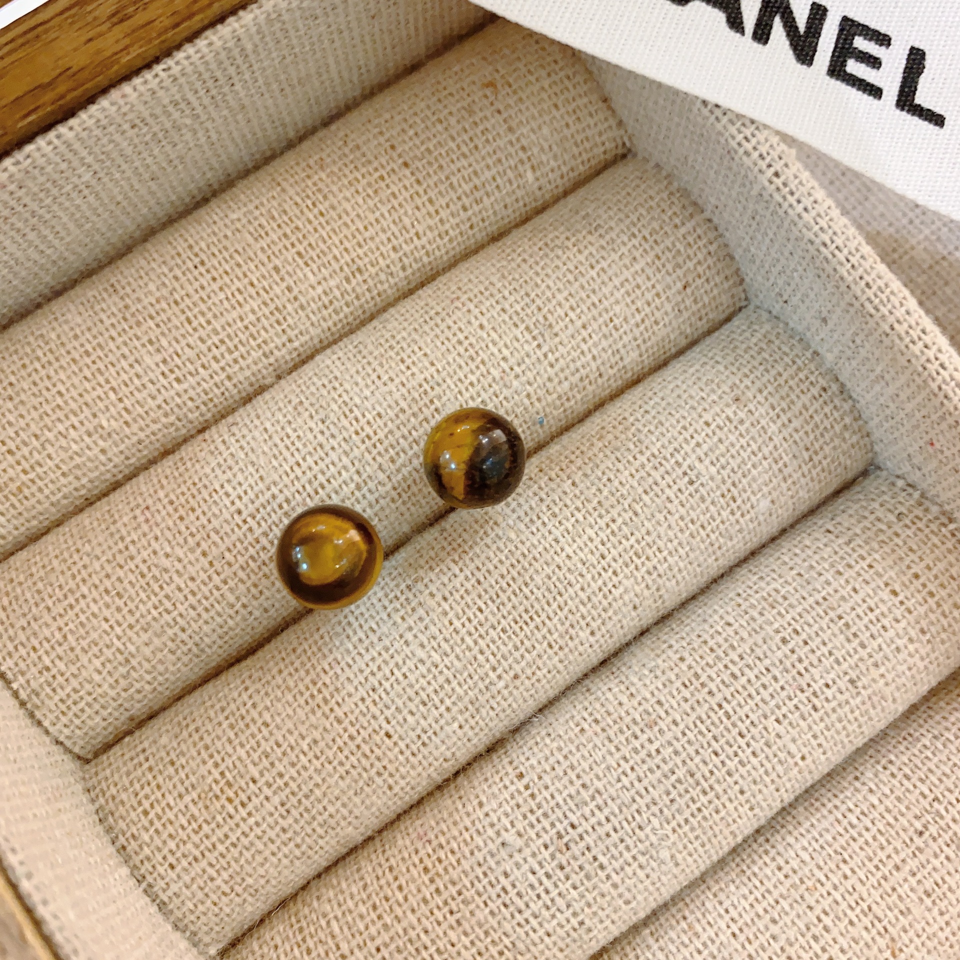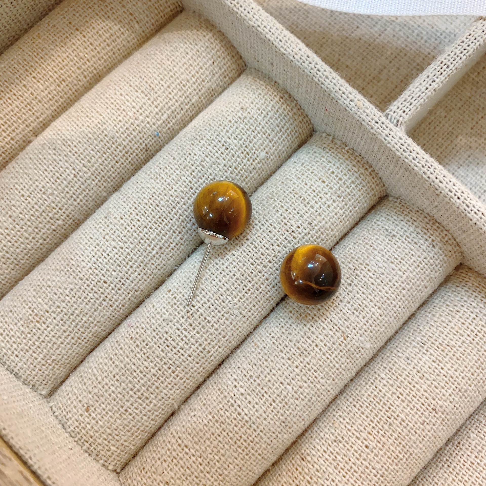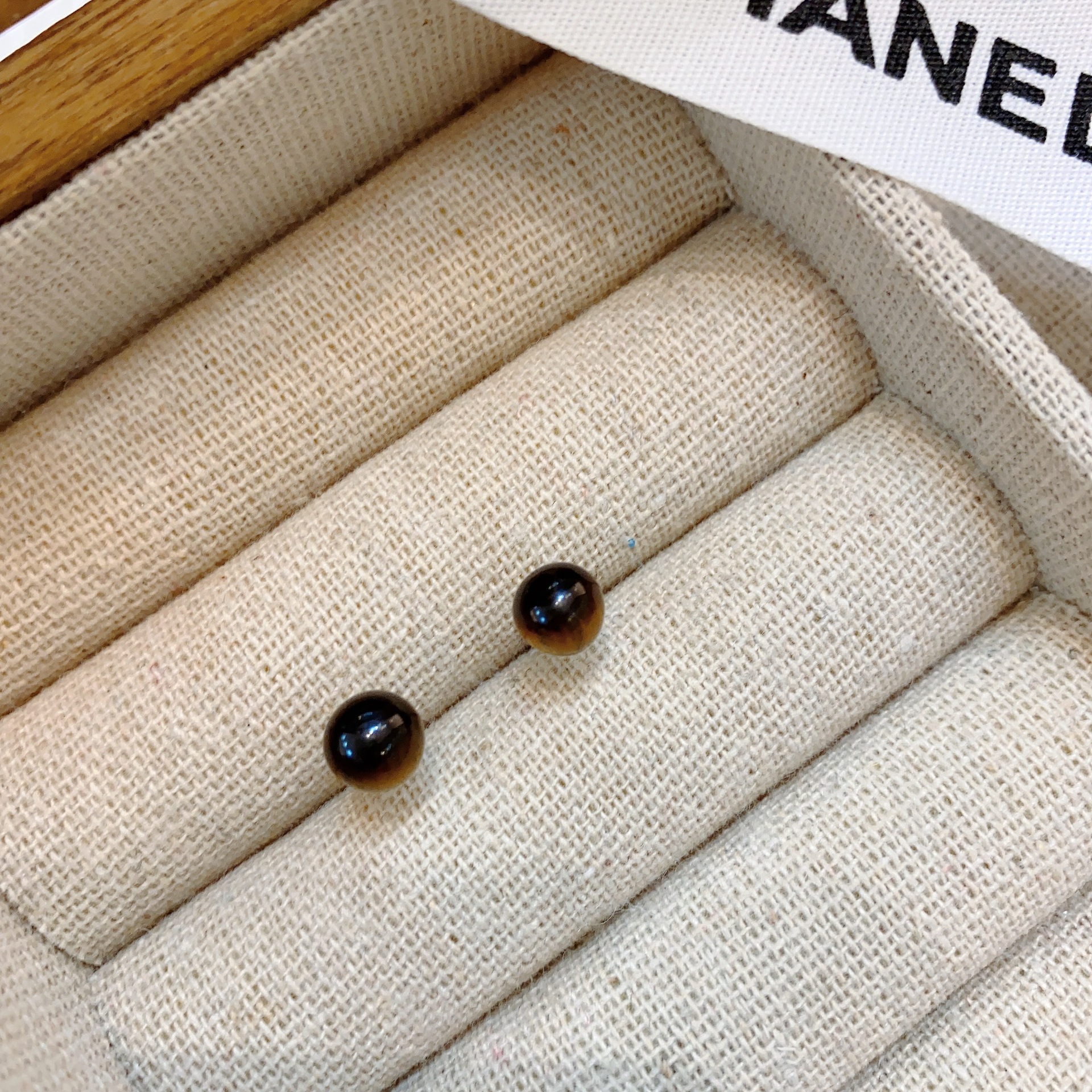 天然虎眼石圆球耳钉女镀银养耳洞耳饰高级感小巧精致睡觉免摘耳环