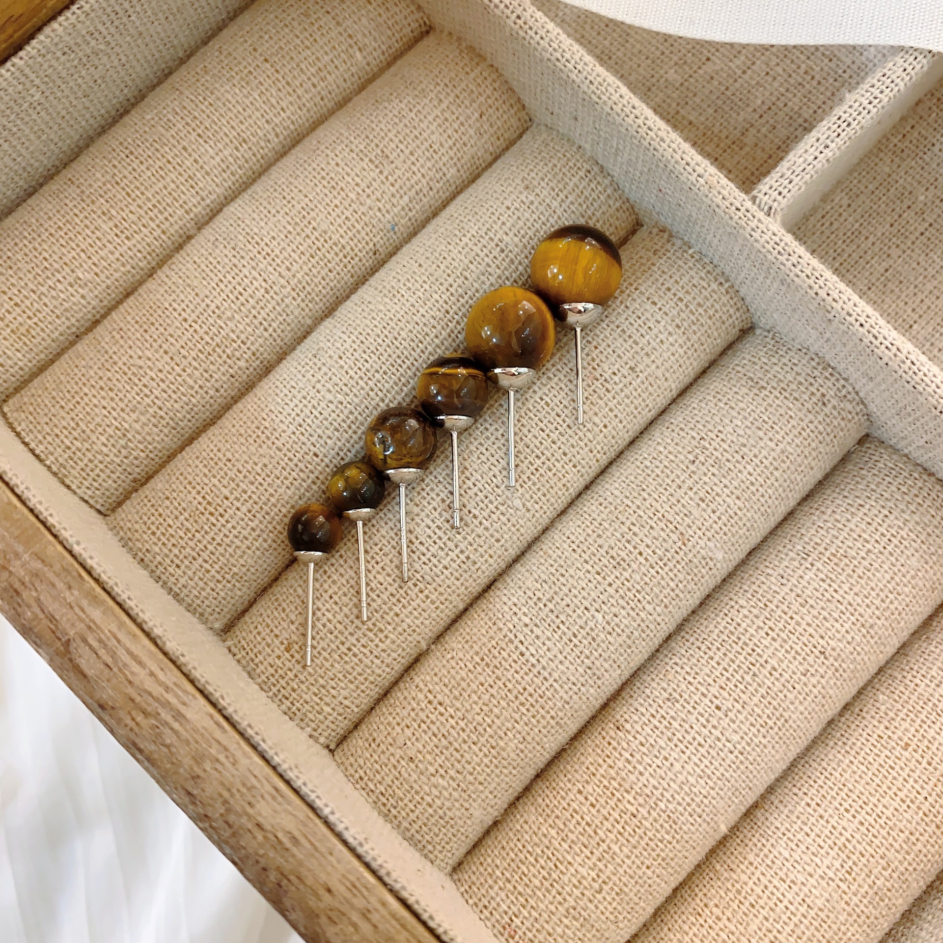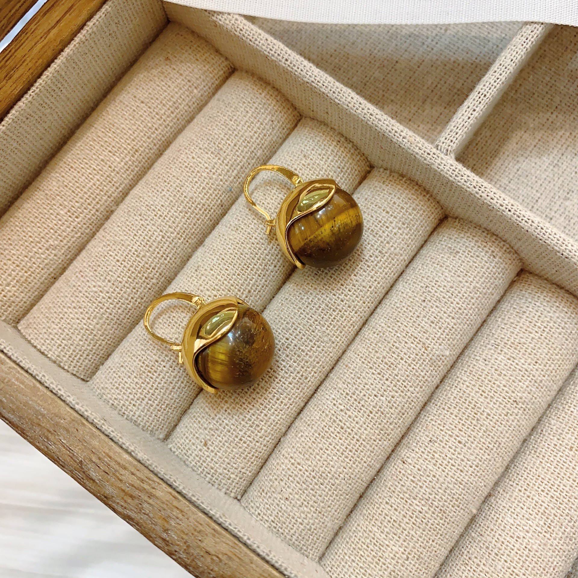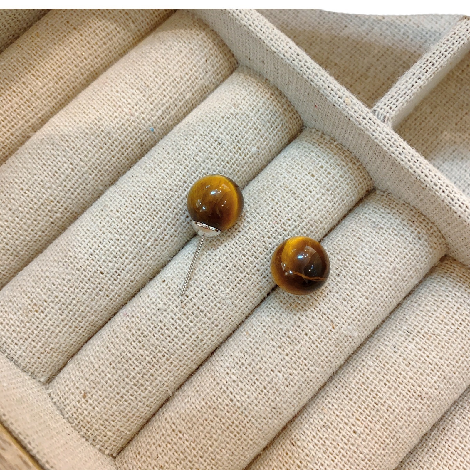 天然虎眼石圆球耳钉女镀银养耳洞耳饰高级感小巧精致睡觉免摘耳环