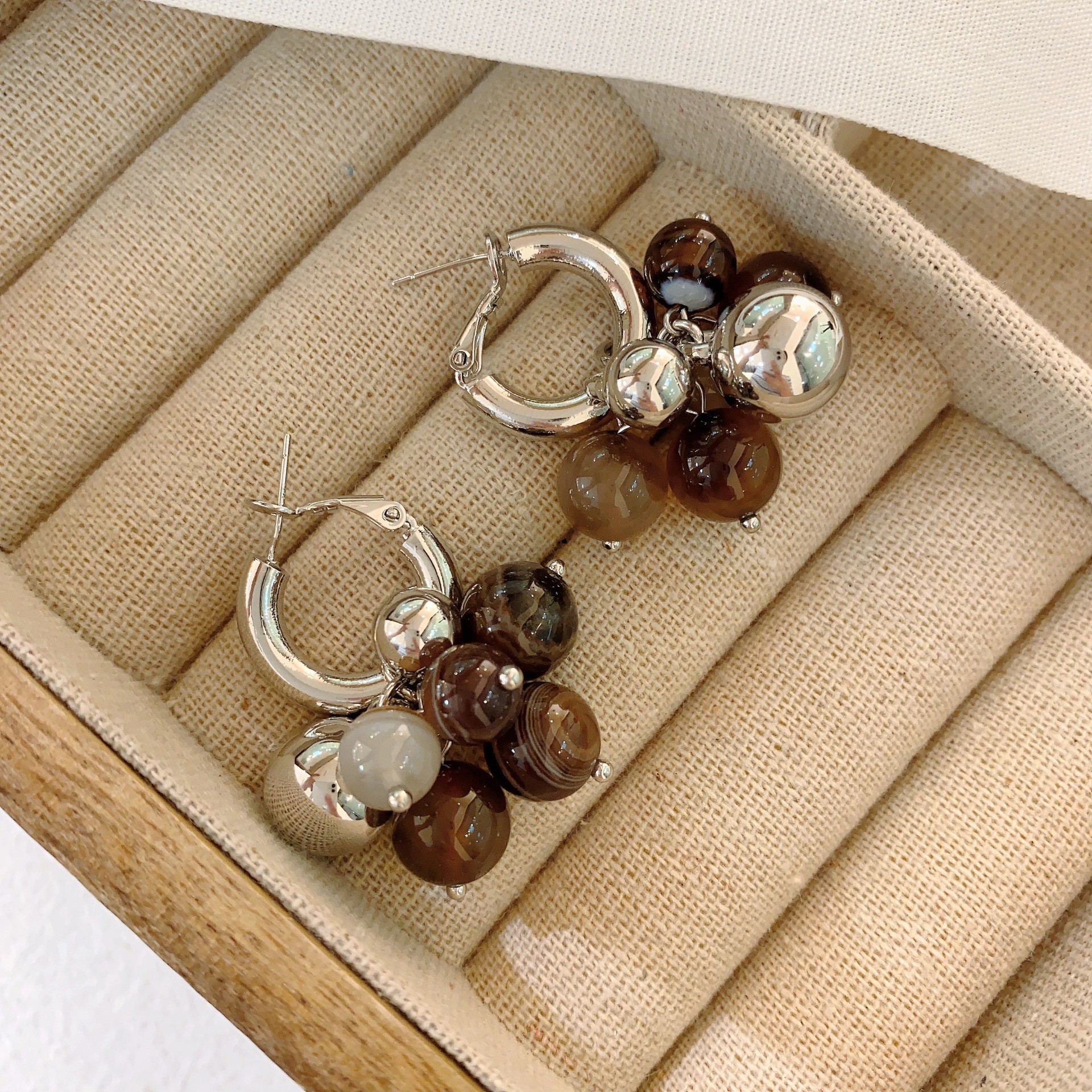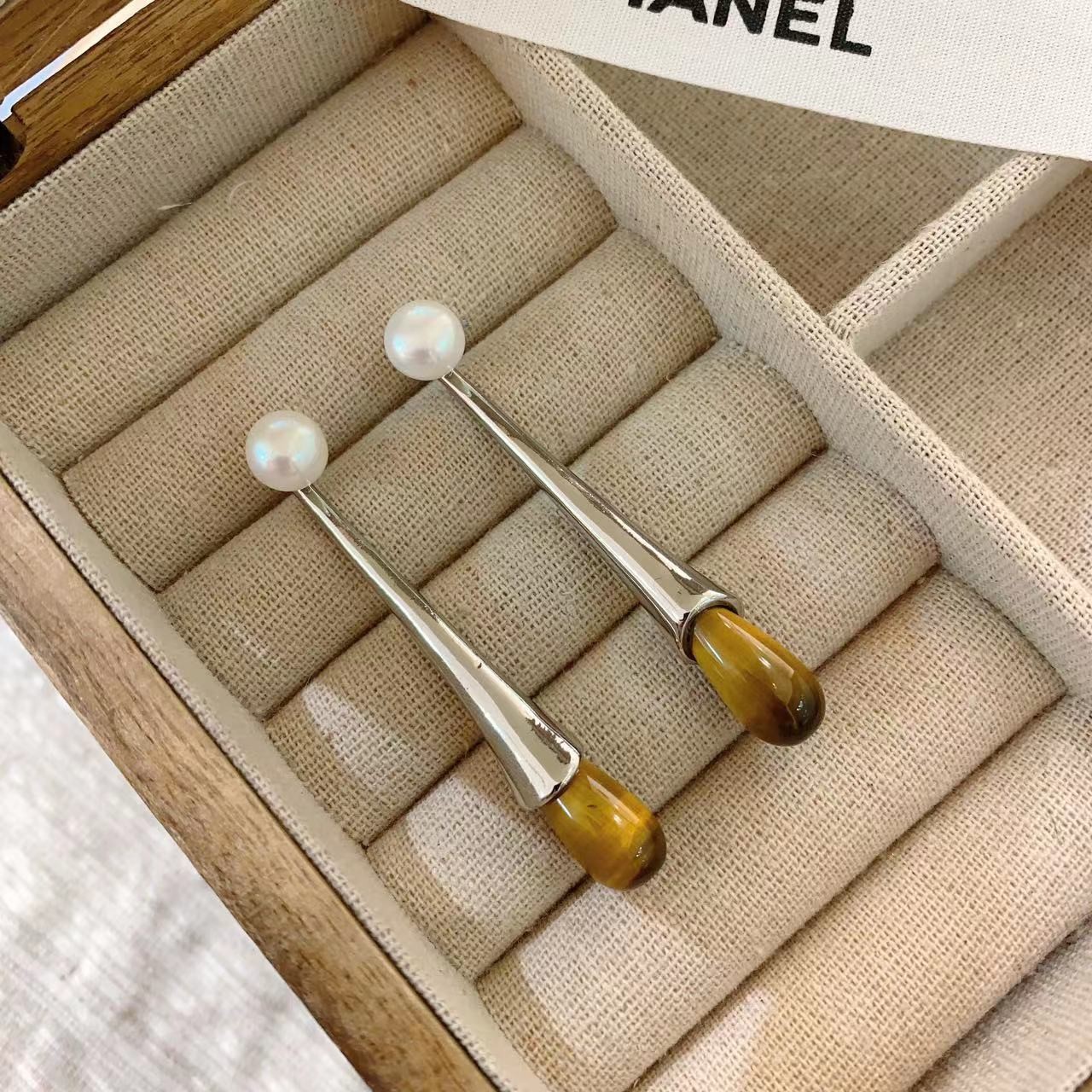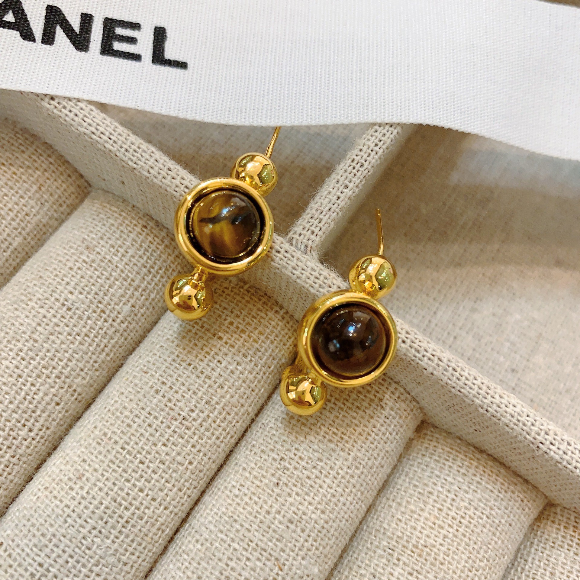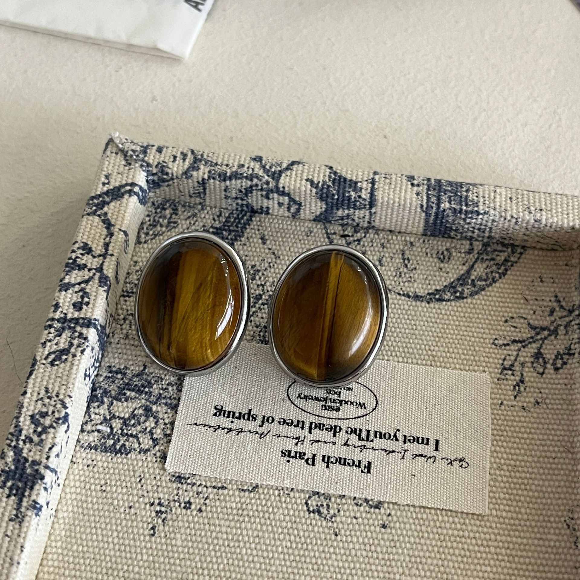 天然虎眼石圆球耳钉女镀银养耳洞耳饰高级感小巧精致睡觉免摘耳环
