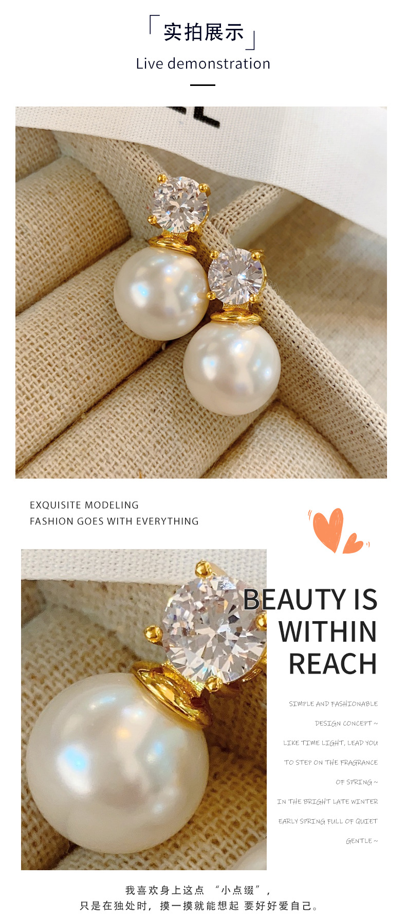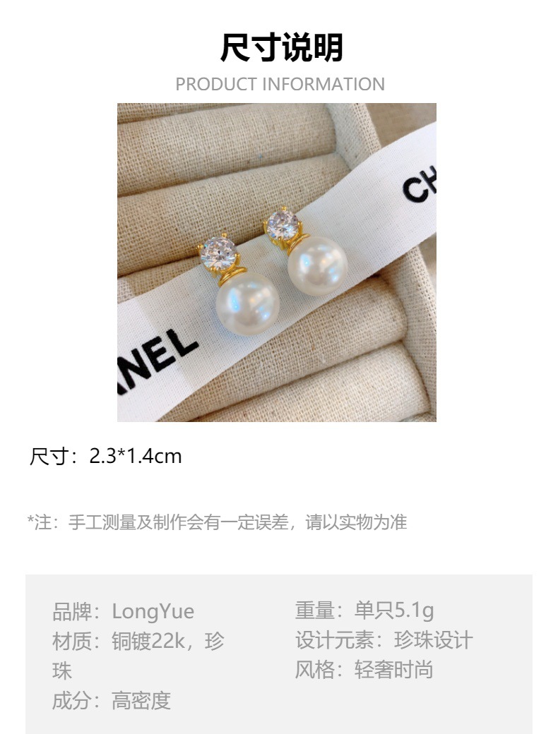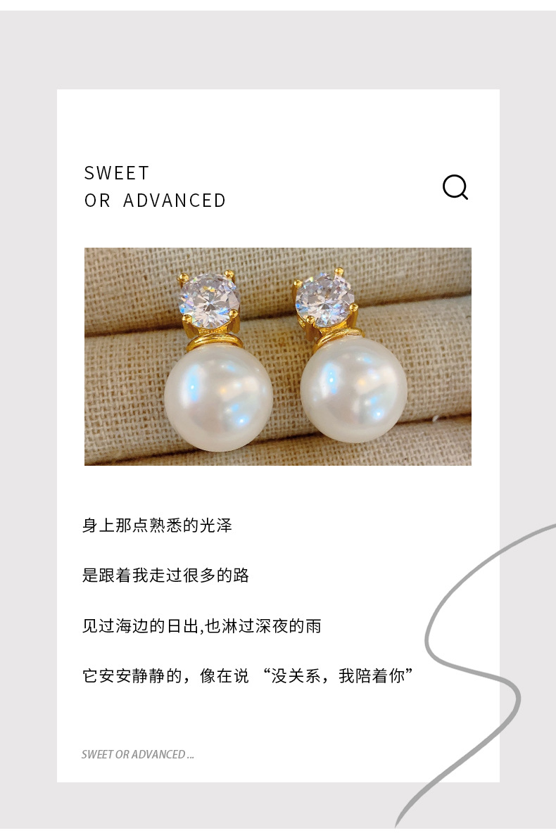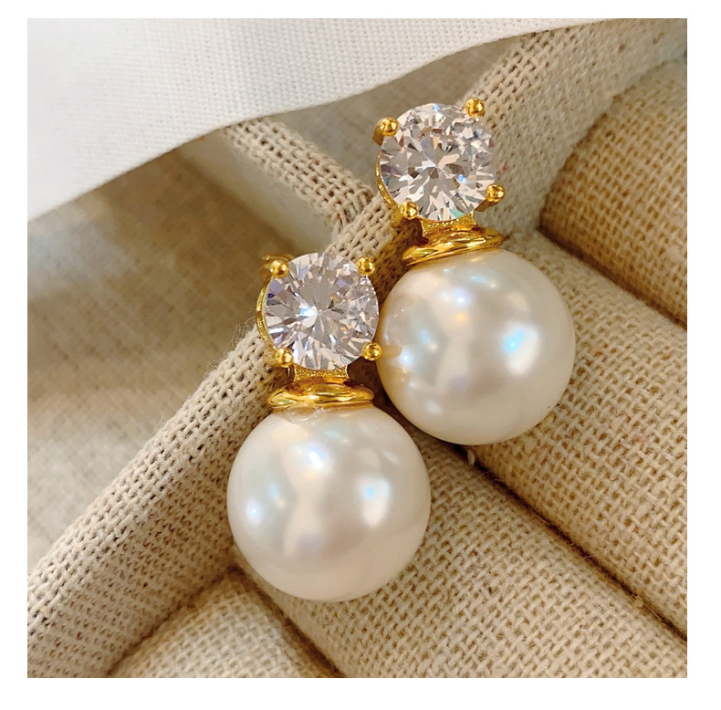 戴妃同款单钻珍珠耳钉气质名媛高级感简约时尚耳环精致耳饰百搭女