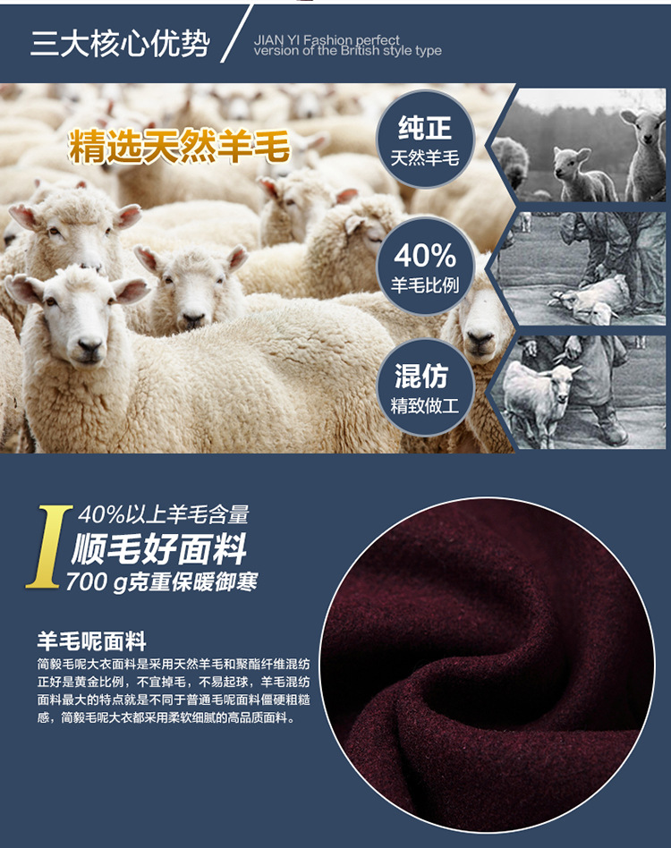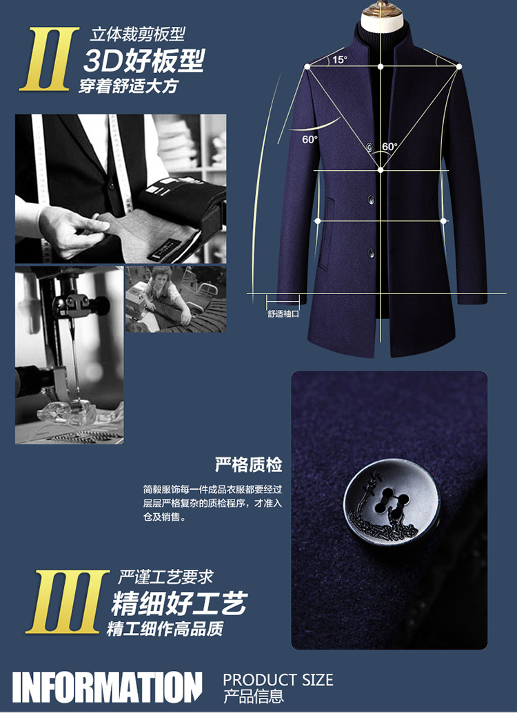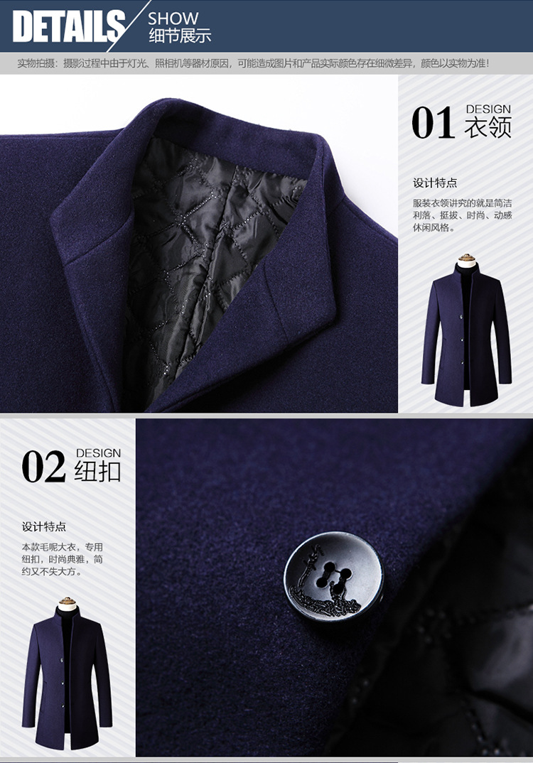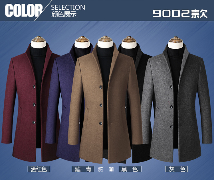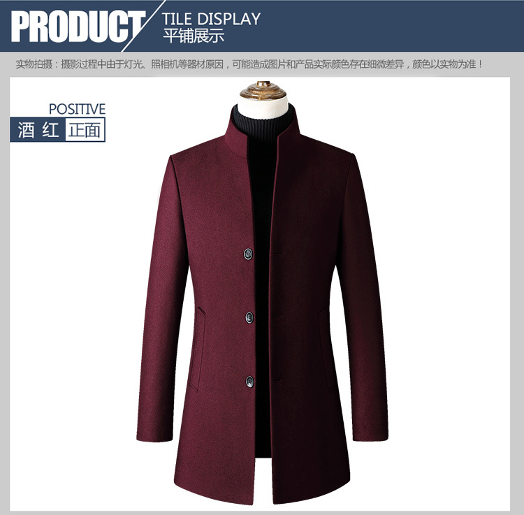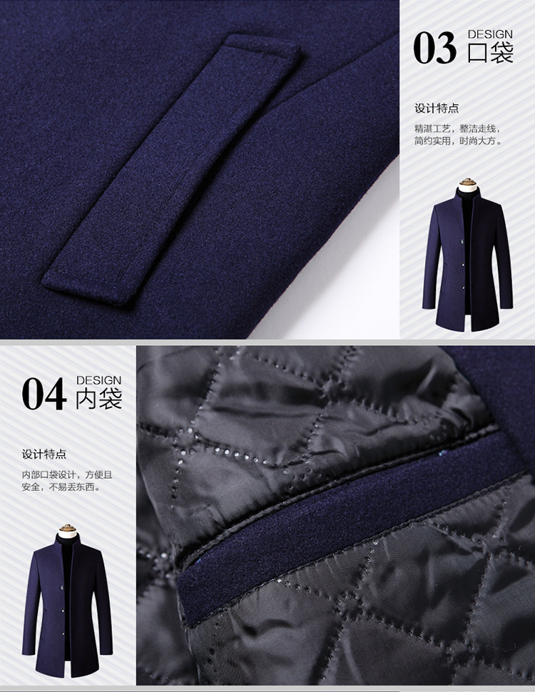 欧码加大跨境版型单排扣立领羊毛呢子男风衣外套男装货源厂家备货