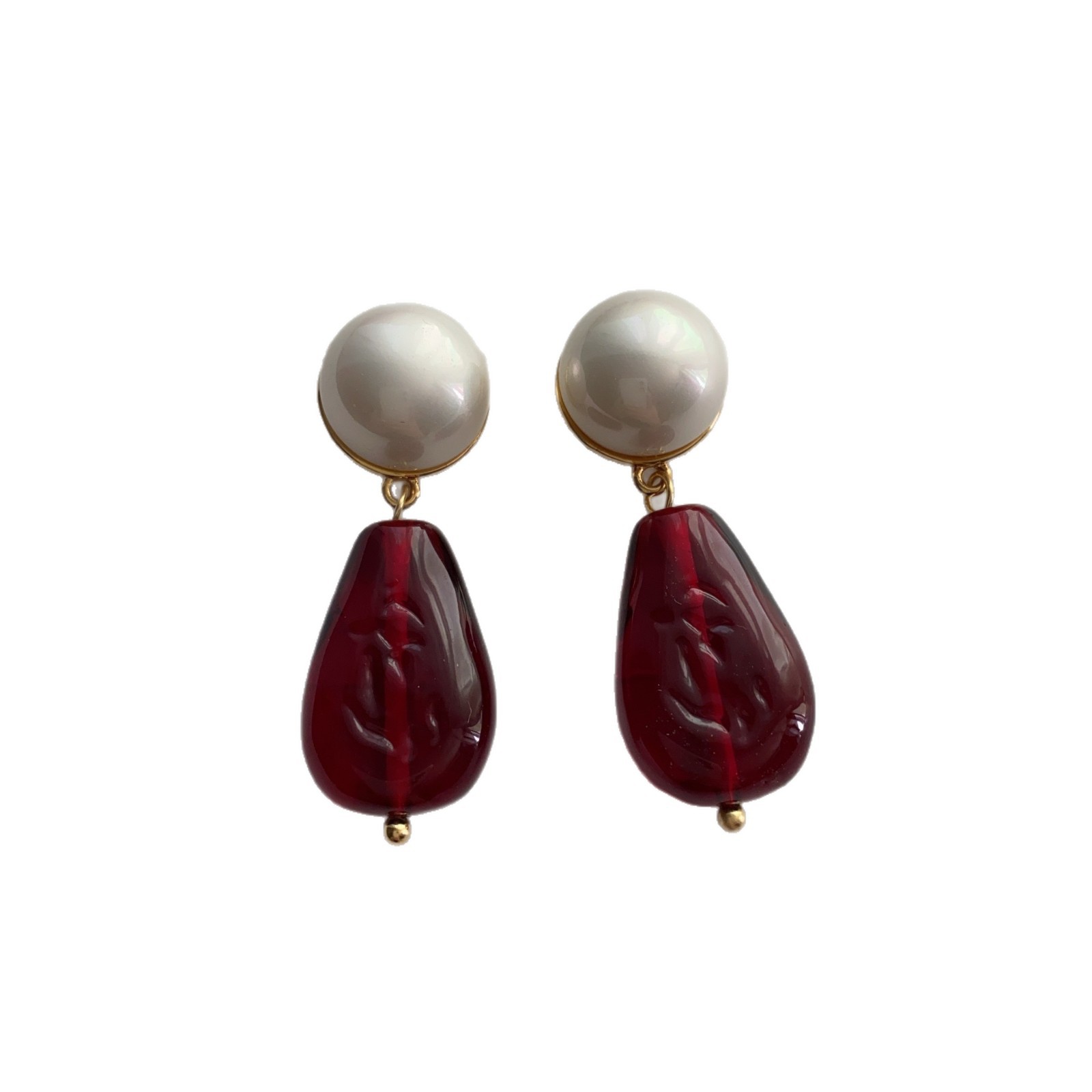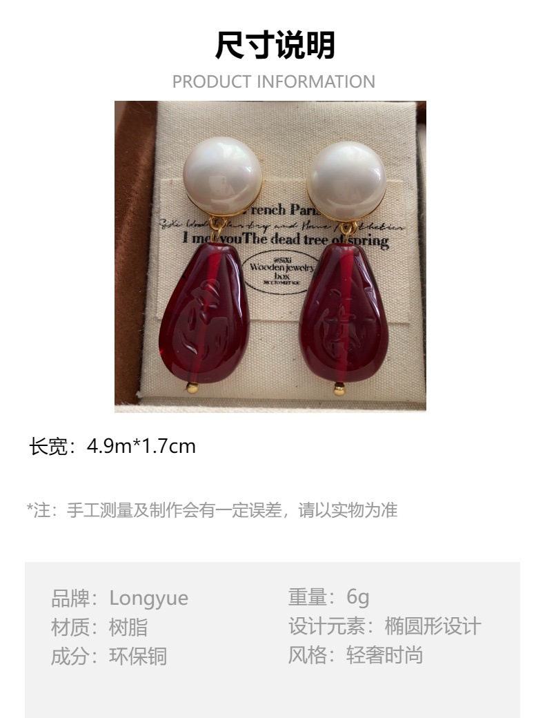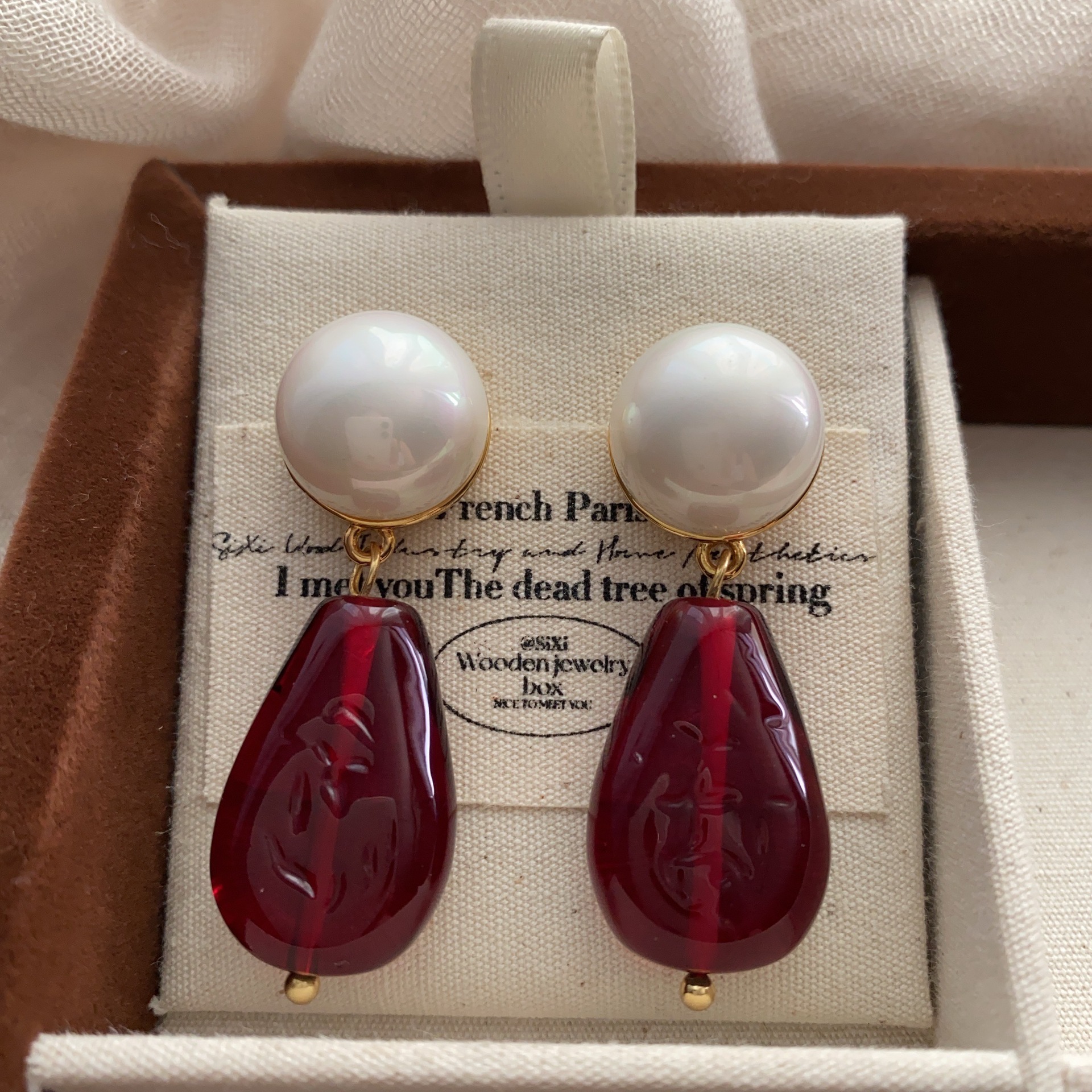 宫廷复古水滴珍珠耳钉耳环小众设计个性百搭气质树脂红色优雅耳坠