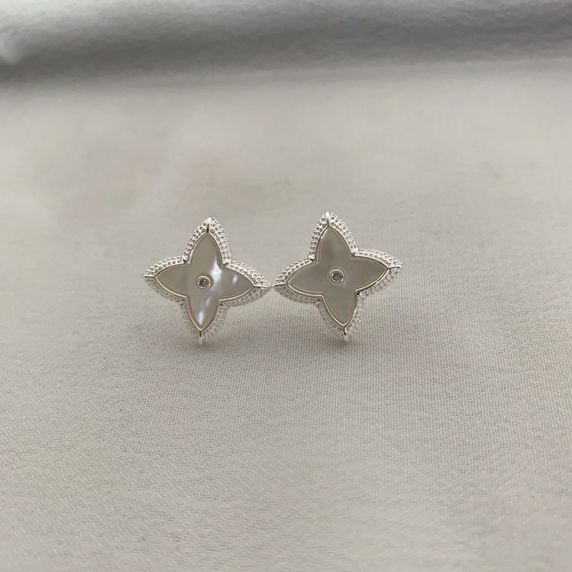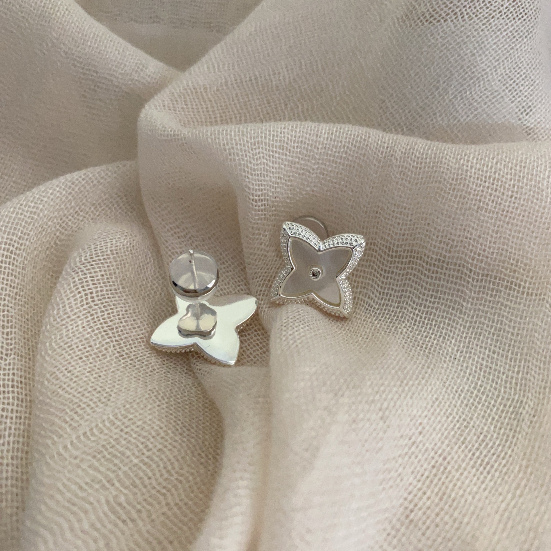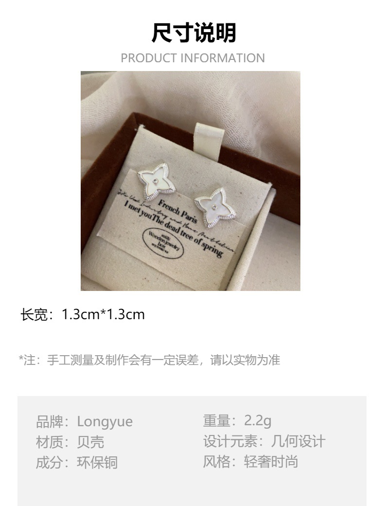 精致微镶锆石贝壳贝母耳钉简约经典四叶草轻奢高级感气质百搭耳饰